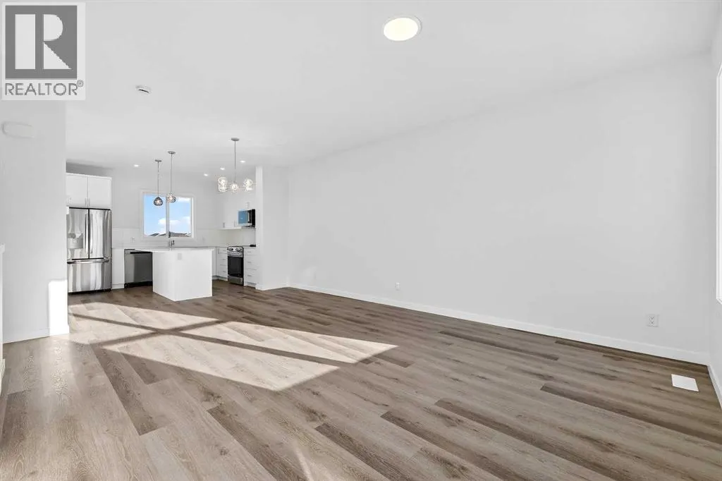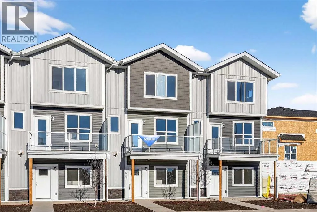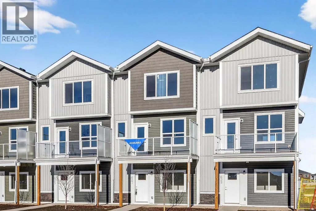 OPEN HOUSE on Saturday, February 14th AND Sunday, February 15th from 12-5pm. Please go to the Show Home located at 613-132 Red Embers Link NE for access. StreetSide proudly presents this exceptionally popular interior-unit townhome, where expansive living areas meet modern comforts and sophisticated finishes. The thoughtfully designed floorplan features three spacious upper-level bedrooms and two and a half well appointed bathrooms, complemented by a versatile lower-level den perfect for a home office or quiet retreat. The heart of the home is an inviting open-concept main floor, anchored by a large gourmet kitchen featuring a functional breakfast bar for casual dining. This bright living space transitions seamlessly to a private balcony, offering a perfect setting for outdoor relaxation.The interior showcases high end craftsmanship, including modern white slab-style cabinetry with a full bank of drawers for maximum storage. The kitchen is further elevated by polished white quartz countertops and a full suite of premium stainless steel appliances. Durable luxury vinyl flooring runs throughout the primary living areas, while the stairs and upper level are finished with plush carpet over an 8lb underlay for superior comfort. This residence is a water meter unit, allowing for precise and efficient utility management. Additional conveniences include an attached double car garage, professionally maintained landscaping, and a lifestyle defined by maintenance free living.Located within Red Embers Point East, this home places you at the heart of the dynamic Redstone neighborhood. Enjoy the ease of a convenient location with quick access to major routes, including Stoney Trail, ensuring you are never far from the city's best. The community is strategically positioned near future commercial developments, promising shops, services, dining, and entertainment options just moments from your doorstep. (id:27476)