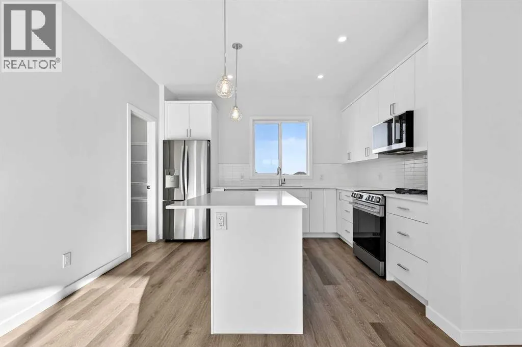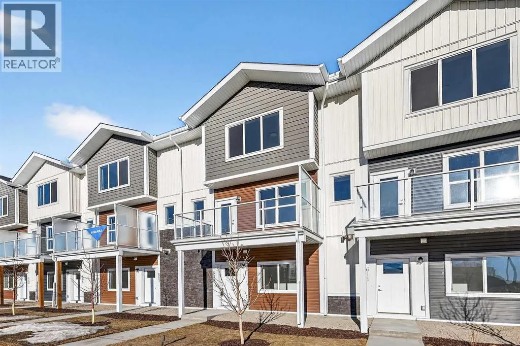 OPEN HOUSE on Saturday, February 14th AND Sunday, February 15th from 12-5pm. Please go to the Show Home located at 613-132 Red Embers Link NE for access. StreetSide proudly presents this exceptionally popular interior-unit townhome, where expansive living areas meet modern comforts and sophisticated finishes. The thoughtfully designed floorplan features three spacious upper-level bedrooms and two and a half well appointed bathrooms, complemented by a versatile lower-level den perfect for a home office or quiet retreat. The heart of the home is an inviting open-concept main floor, anchored by a large gourmet kitchen featuring a functional breakfast bar for casual dining. This bright living space transitions seamlessly to a private balcony, offering a perfect setting for outdoor relaxation. The interior showcases high end craftsmanship, including modern white slab-style cabinetry with a full bank of drawers for maximum storage. The kitchen is further elevated by polished white quartz countertops and a full suite of premium stainless steel appliances. Durable luxury vinyl flooring runs throughout the primary living areas, while the stairs and upper level are finished with plush carpet over an 8lb underlay for superior comfort. Additional conveniences include an attached double car garage, professionally maintained landscaping, and a lifestyle defined by maintenance free living. Located within Red Embers Point East, this home places you at the heart of the dynamic Redstone neighborhood. Enjoy the ease of a convenient location with quick access to major routes, including Stoney Trail, ensuring you are never far from the city's best. The community is strategically positioned near future commercial developments, promising shops, services, dining, and entertainment options just moments from your doorstep. (id:27476)
