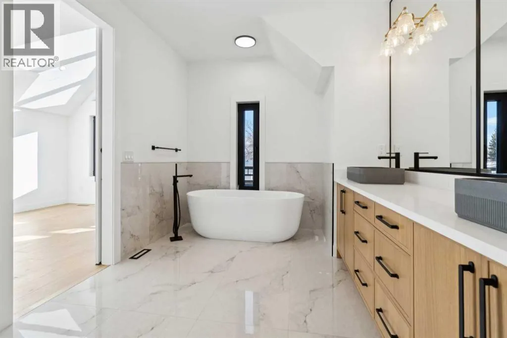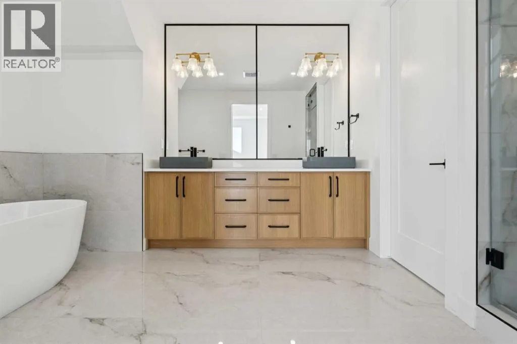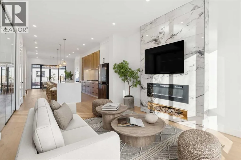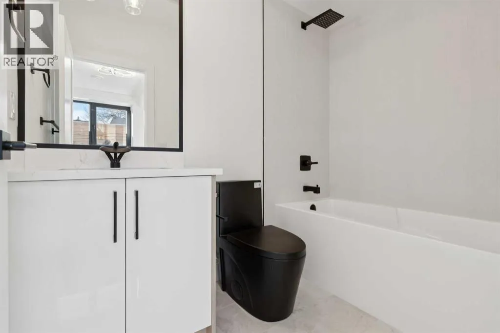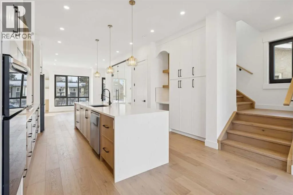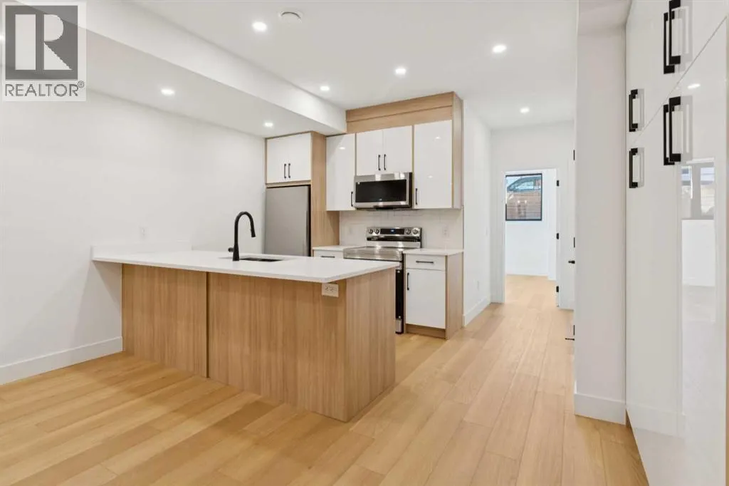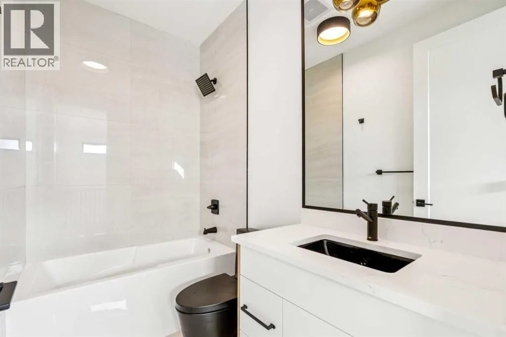 Stunning Semi-Detached Infill with Legal Suite. BRAND NEW, custom-built semi-detached infill in the desirable community of Bonavista downs offers the perfect blend of luxury living and practicality. With over 3180 sqft. of elegant living space including an extended 3-bedroom legal basement suite, this home provides the flexibility of multi-generational living or a fantastic mortgage helper.The main level is designed for both style and function, featuring 10-ft ceilings, a bright open-concept layout, and oversized windows that fill the space with natural light. The kitchen is well appointed, with ceiling-height cabinetry, a massive island with waterfall quartz counters, and premium stainless steel appliances. The living room is bright and welcoming, with modern finishes and built-in cabinetry that offers plenty of functional storage. Dining room with double sliding doors overlooking the spacious backyard. Upstairs, youâll find a spacious primary retreat with soaring 16ft vaulted ceilings, walk-in closet with built-ins, and a spa-inspired ensuite featuring heated floors, freestanding soaker tub, and a fully tiled glass shower with steam. Two additional bedrooms with 10ft tray ceiling, a 4-piece main bath, and an upper laundry room add everyday convenience.The professionally developed legal suite has its own private side entrance and offers over 1121 sqft. of developed living space. Highlights include 3 large bedrooms, 2 full bathrooms, in-suite laundry, a generous living/dining area, and a full kitchen with quartz counters, ceiling-height cabinets, and stainless-steel appliances. Comfort is maximized with in-floor heating (roughed in) and 4â rigid insulation beneath the slab for year-round warmth.Set on a generous 128-ft deep lot, this home offers plenty of outdoor space with a finished concrete patio, and a paved back alley. Located in one of Calgaryâs most established and desirable neighbourhoodsârenowned for its safety, quiet streets, excellent schools, and close proximity to shopping, restaurants, parks, and transit.This is a rare opportunity to own a thoughtfully designed infill in one of Calgaryâs most coveted areasâcomplete with a full legal suite that adds value and flexibility. Book your private showing today and experience everything this incredible home has to offer. (id:27476)
