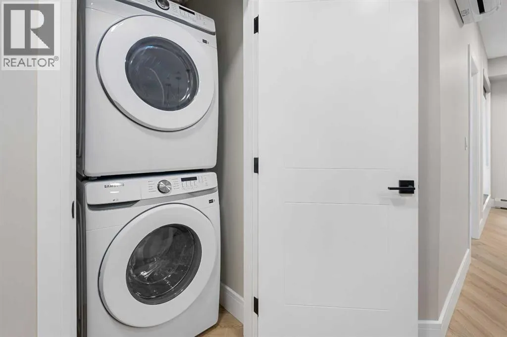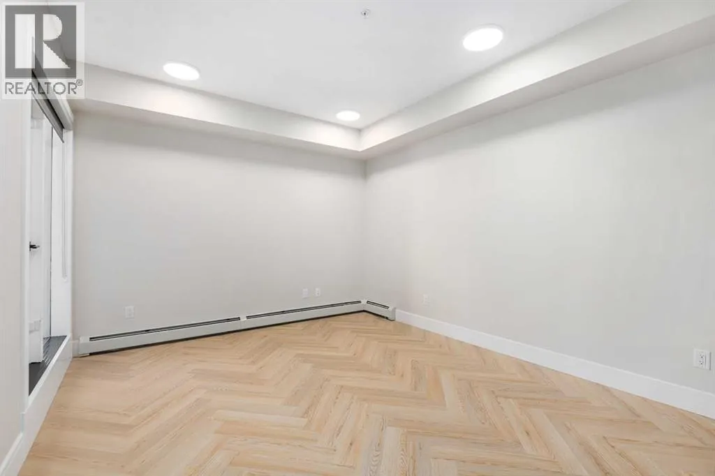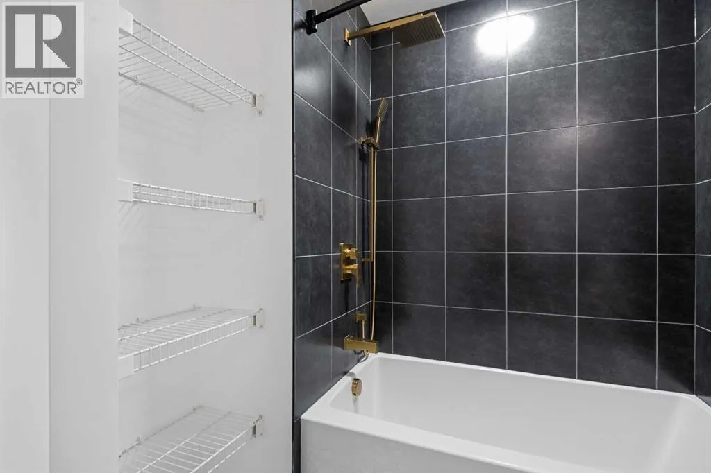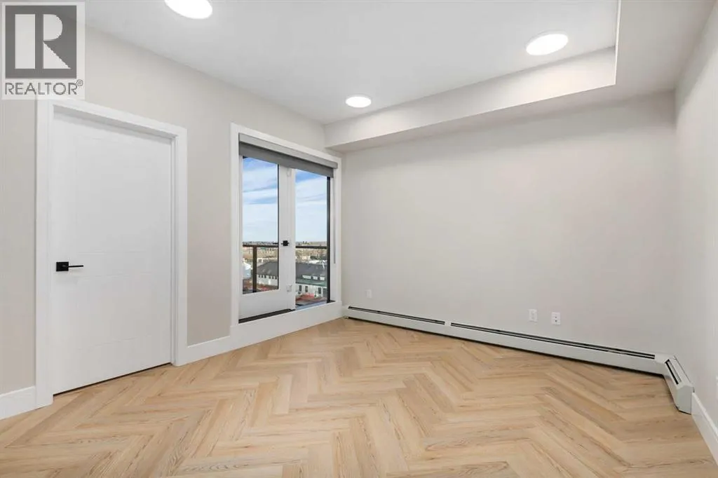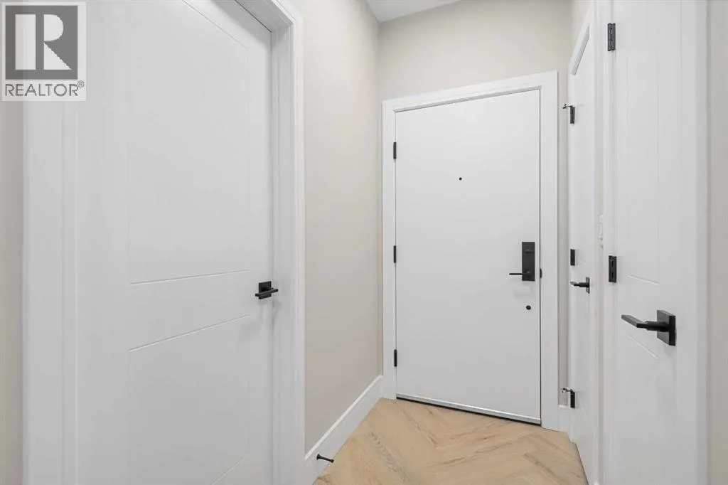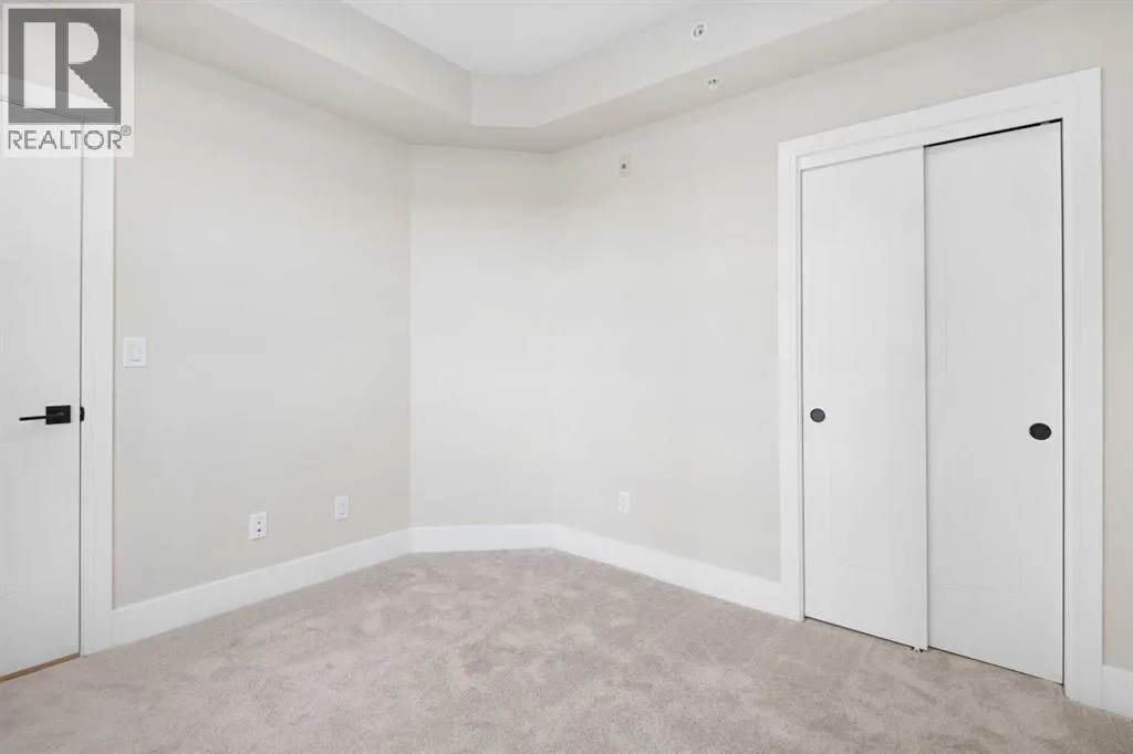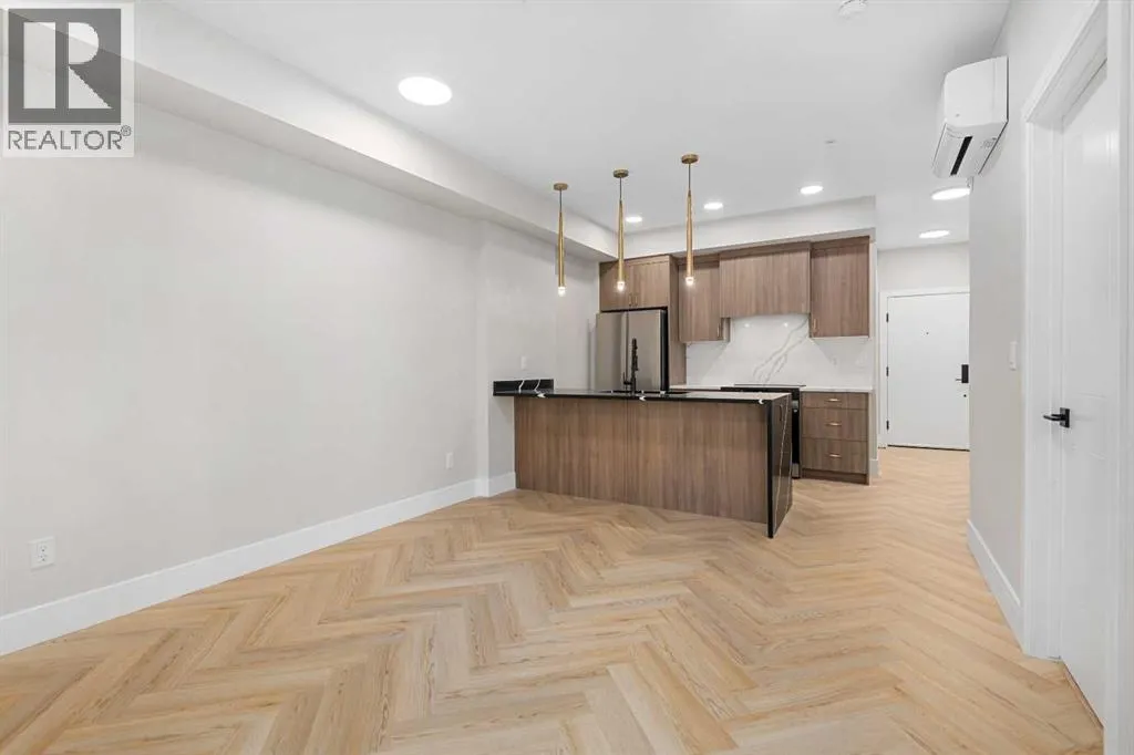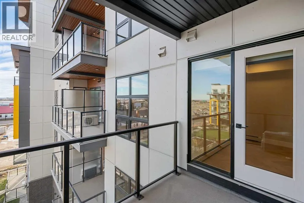 Welcome to the âAzzuroâ floorplan by Rohit Homes Calgary, a thoughtfully designed 1-bedroom + den, 1-bathroom residence that blends timeless style with modern functionality. Located on the 4th floor of the highly sought-after Quesnay at Currie Barracks, this south-facing unit enjoys excellent natural light throughout the day and offers the added convenience of being situated near the elevatorâideal for everyday ease and accessibility.Finished in the elegant Neoclassical design palette, the Azzuro delivers a refined aesthetic with warm tones, clean lines, and elevated detailing. This smart layout features 9â ceilings, quartz countertops with a waterfall edge, a coordinating quartz backsplash, full-height cabinetry, stainless steel appliances, designer lighting, and window coverings. The open-concept kitchen, dining, and living areas flow seamlessly together, creating a welcoming and efficient space for both relaxing and entertaining.The primary bedroom provides a comfortable retreat, while the versatile den is perfect for a home office, study, or additional storageâone of the most sought-after features of this floorplan. The spa-inspired bathroom includes fully tiled walls, polished finishes, and a tub/shower combination for a hotel-like feel. Step out onto your private south-facing balcony to enjoy sunshine and courtyard views.This pet-friendly and AIRBNB-friendly building includes titled heated underground parking and ample visitor parking. Ideally located just minutes from downtown Calgary, Mount Royal University, and the vibrant shops and restaurants of 17th Ave and Marda Loop, this home offers both convenience and lifestyle.The Azzuro is a popular and well-loved floorplan - Donât miss your opportunity to own in one of Calgaryâs most exciting inner-city communities. (id:27476)
