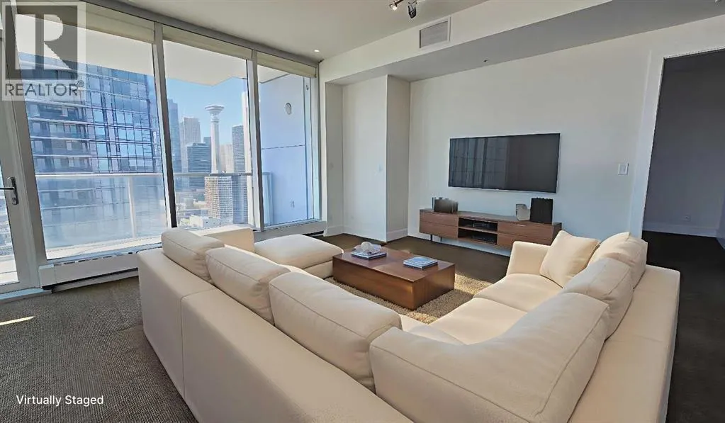 Welcome to luxury living in the iconic Arriva tower located in the arts and entertainment district! This move-in-ready 2 bed, 2 bath, 2 parking stall, corner unit boasts panoramic city views and an abundance of natural light through its floor-to-ceiling windows, and is available for immediate possession. Positioned on a high floor, this modern space is designed for both comfort and style, with an open-concept layout that takes full advantage of its prime corner location. The sleek contemporary kitchen is a chefâs dream, featuring quartz countertops, a gas cooktop, integrated refrigerator, built-in oven, and ample cabinetry that keeps the look clean and sophisticated. Entertain in the spacious dining and living area while soaking in Calgaryâs skyline views from every angle. Both bedrooms are generously sized, offering excellent separation for privacy. The primary suite is a true retreat with a walk-through closet and a large spa-inspired ensuite that provides extra counter space and a deep soaker tub. The second bedroom is ideal for guests, a home office, or a roommate, complete with its own full bathroom just steps away. Convenience is maximized with in-suite laundry, two titled underground parking stalls, and a separate assigned storage locker â a rare find in urban living! The Arriva is renowned for its top-tier amenities, including a beautiful rooftop patio to enjoy summer evenings, a stylish guest suite for out-of-town visitors, a well-appointed party room, and professional concierge service that adds an extra layer of comfort and security. Situated in the heart of the Beltline, youâre just steps away from Stampede Park, the Saddledome, trendy cafes, renowned restaurants, and the vibrant arts and entertainment scene that downtown Calgary has to offer. Whether youâre a professional seeking a lock-and-leave lifestyle or looking for a spacious urban home, this stunning corner unit is ready to welcome you home. Donât miss your chance to own in one of Calgaryâs most sought-after high-rises â book your private tour today! (id:27476)