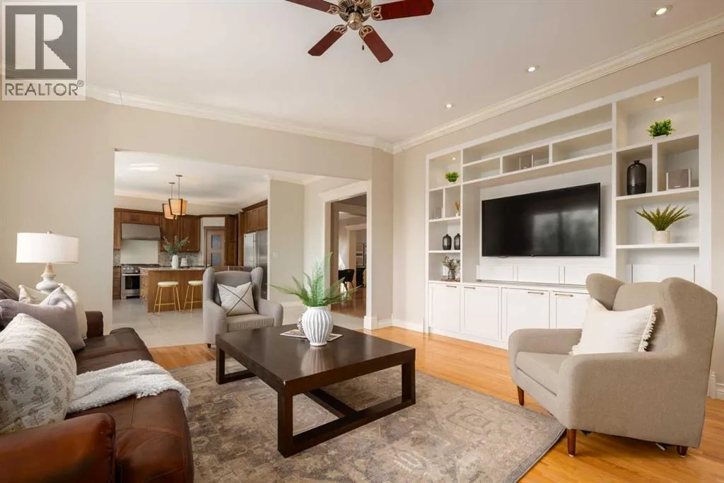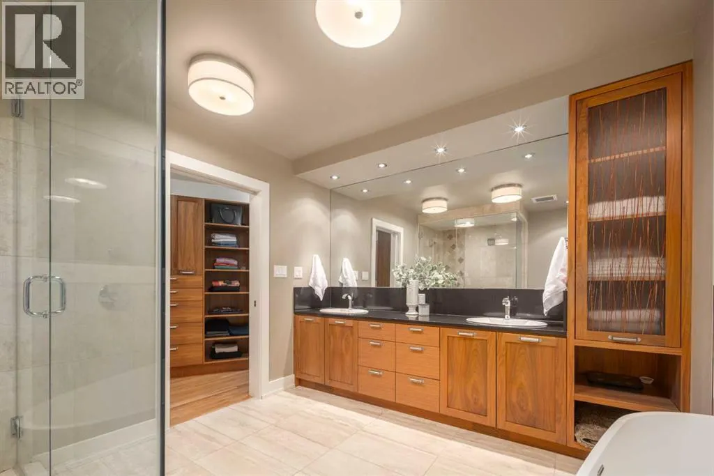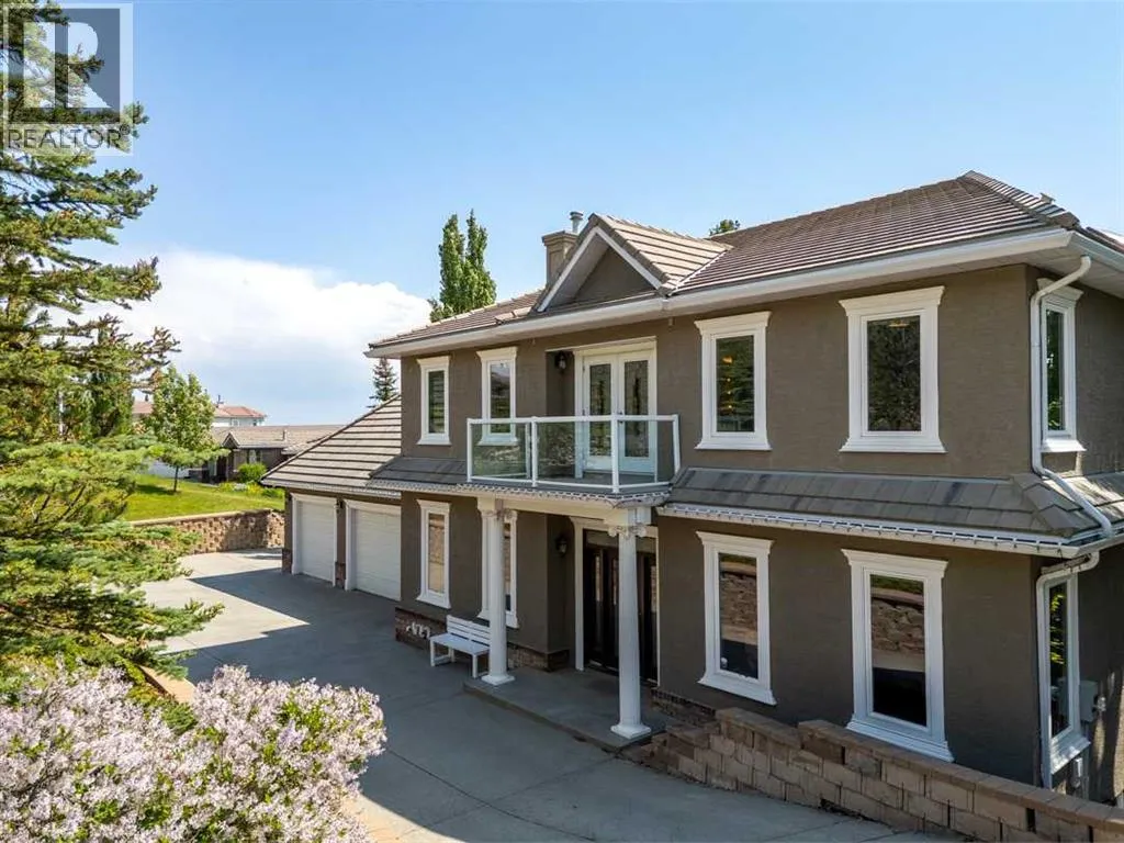 NEW PRICE! Located in the prestigious gated community of The Slopes, this exceptional estate home at 57 Slopes Point SW masterfully blends timeless craftsmanship, sustainable luxury, and an unbeatable location. Built with enduring quality, the home features in-floor radiant heating throughout multiple levels, the attached triple garage, and even the private heated drivewayâensuring ultimate comfort and energy efficiency through every season. A concrete tile roof adds to the homeâs structural integrity and low-maintenance appeal, underscoring the care and foresight behind every detail of this custom build. Set on a South-facing lot with views of The Rocky Mountains, this 5,500+ sq. ft. estate offers 4 spacious bedrooms above grade and 4.5 bathrooms, perfectly suited for families and entertainers alike. The heart of the home is the chef-inspired kitchen, which showcases custom walnut cabinetry, a Sub-Zero full fridge and full freezer, Miele six-burner gas range, Wolf range hood, and a Marvel beverage fridge, all thoughtfully selected for their performance and elegance. Granite countertops, a generous island, and panoramic views complete the space. Throughout the home, youâll find stunning crown molding, detailed millwork, soaring 10â ceilings, and expansive windows that flood the interior with natural light. A dramatic staircase, custom built-ins, and warm gas fireplace with a marble feature wall elevate the main floor living areas. The main level also includes formal living and dining spaces, a dedicated home office, convenient laundry room, and elegant powder room, plus access to a sunlit deck that spans the back of the home. Upstairs, the primary retreat offers luxury and serenity, featuring a private balcony with mountain views, a spa-inspired 6pc ensuite with soaker tub, dual vanities, and custom glass shower, along with a custom walk-in closet fitted with rich walnut cabinetry. Three additional bedrooms and beautifully appointed bathrooms provide ample space for a growing family. The fully finished walkout basement includes a 4pc bathroom with steam shower, a home theatre (convertible to a fifth bedroom), fitness room, and expansive recreation space with gas fireplace. A wet bar complete with dishwasher, beverage fridge, and wine fridge leads to a covered patio and beautifully landscaped backyardâperfect for summer entertaining. Positioned just moments from Aspen Landing Shopping Centre, Calgaryâs top-rated private schools (including Webber Academy, Rundle College, and Calgary Academy), and only 20 minutes to downtown, this location is as convenient as it is exclusive. Surrounded by professional landscaping, mature trees, and carefully curated outdoor living spacesâincluding multiple decks, BBQ areas, and a heated drivewayâthis home represents a rare opportunity to own in one of Calgaryâs most coveted communities. For those who value sustainable design, superior craftsmanship, and a prime location, 57 Slopes Point SW is the ultimate executive retreat. (id:27476)