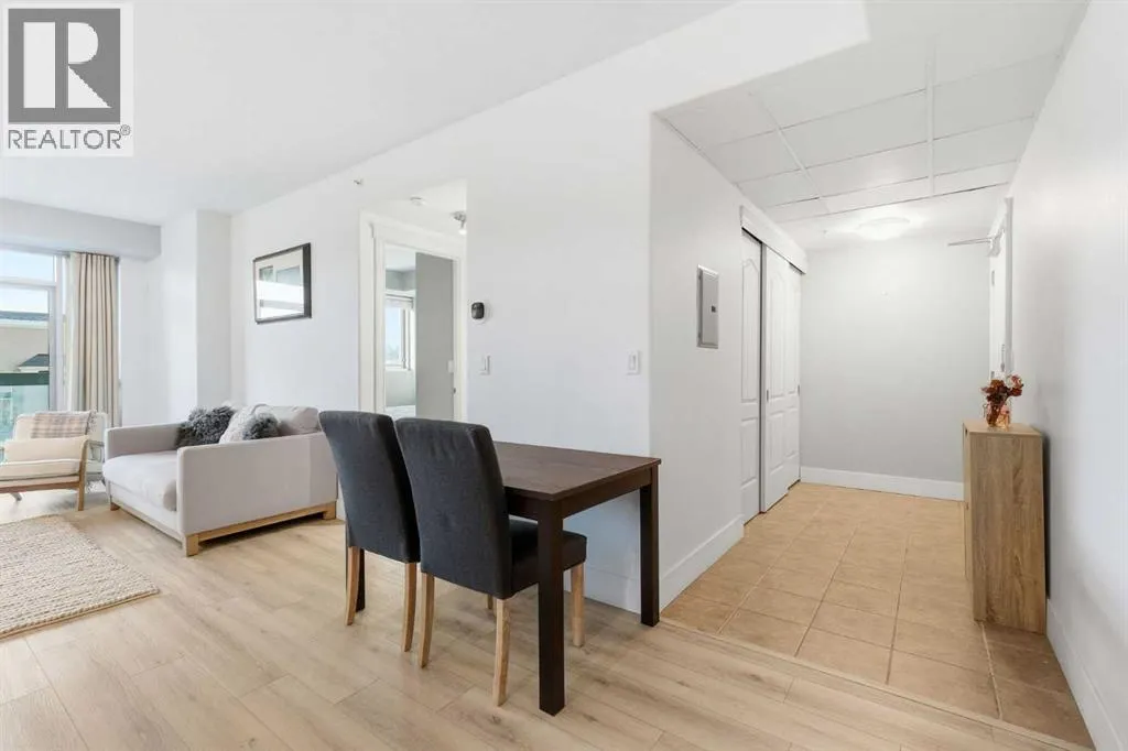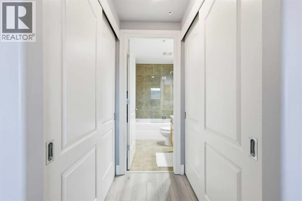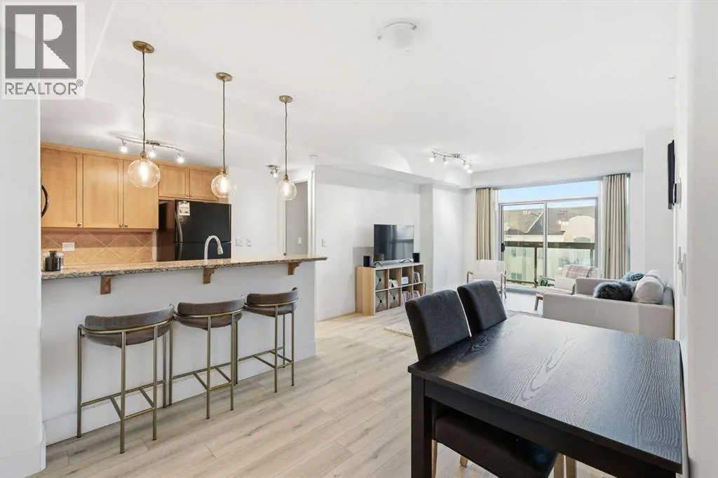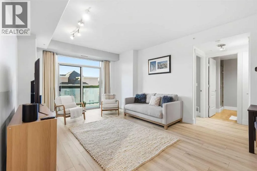 Welcome this bright and spacious 2-bedroom, 2-bathroom condo on the sixth floor of Emerald Stone, offering comfort, convenience, and a prime location. The open-concept layout features 9 ft ceilings, beautiful hardwood flooring, and expansive south-facing windows that flood the space with natural light. The kitchen is both stylish and functional, complete with granite countertops, full-height cabinetry, and a convenient breakfast bar, perfect for casual dining or entertaining. The primary bedroom includes a double walk-through closet and a 4-piece ensuite, while the second bedroom sits adjacent to a 3-piece bath, making it ideal for guests or a home office. Enjoy year-round comfort with central air conditioning and the convenience of in-suite laundry. Step outside onto the sunny balcony, the perfect spot for afternoon drinks or evening BBQs. This unit also includes a titled underground parking stall with an assigned storage locker located directly in front of it. Residents of Emerald Stone enjoy access to additional amenities, including a fully equipped fitness center, recreation and party rooms, visitor parking, indoor bicycle storage, and a weekday concierge service. Located just steps from vibrant 17th Avenue, youâll be surrounded by trendy shops, restaurants, and nightlife, with the downtown core and several inner-city parks only a short walk away. If youâre looking for modern city living in a fantastic location, this condo is the perfect fit. Donât miss your chance to make Emerald Stone your home! Book your showing today! (id:27476)