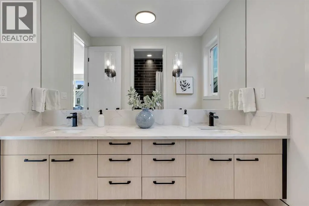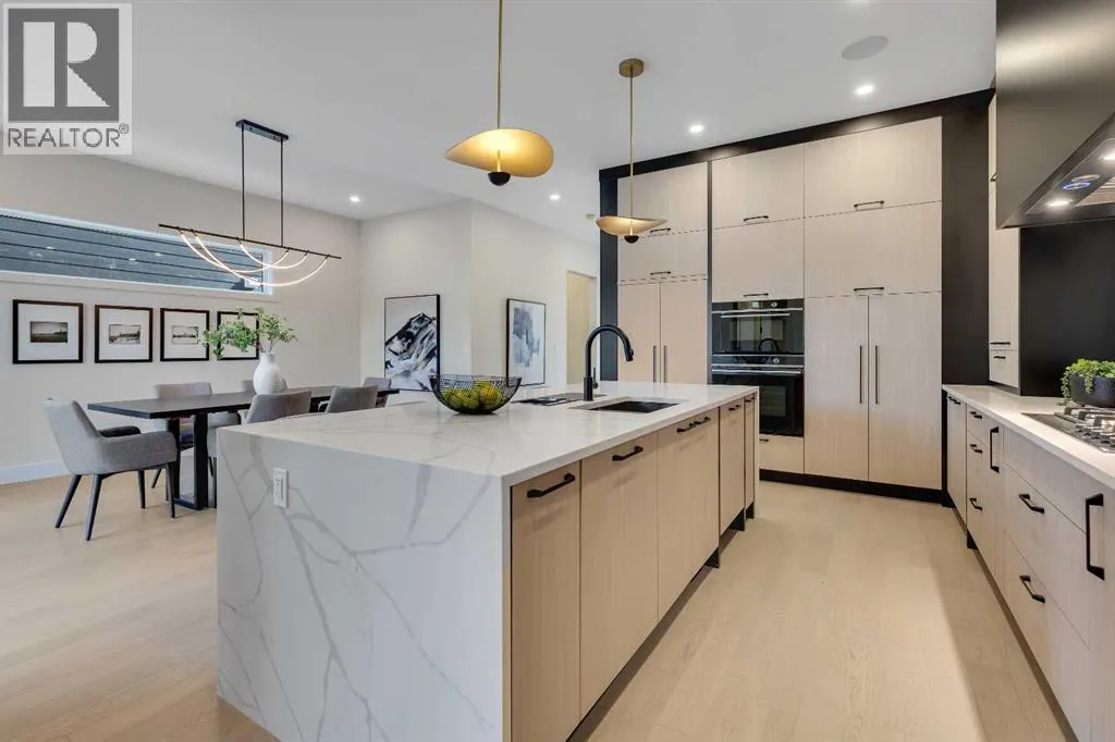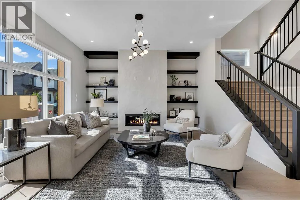 Welcome to NORDIC NOOK III. Inspired by the principles of Scandinavian Architecture , Designed by PHASE ONE DESIGN and built by DOMINIUM RESIDENTIAL. This gem is Nestled in the highly sought-after community of Currie. NORDIC NOOK III Offers not only a beautiful home but also access to a vibrant neighbourhood know for its charm and amenities. Situated 7 minutes to Downtown Calgary, this residence has been meticulously crafted with great passion and professional design, standing as a quintessential monument to fine luxury living.As you approach, you'll be welcomed by an uber contemporary elevation and curb appeal, setting the tone for the elegance that lies within. With 3321 SQ FT ABOVE GRADE and over 4,400 SQ FT of developed living area, this home offers an abundance of space for modern living.The kitchen radiates affluence, featuring a one-of-a-kind design with a WATERFALL island, THROUGH SINK,FISHER & PAYKEL BUILT IN PANEL COVERED FRIDGE & FREEZER, a NATURAL GAS STOVE & POT FILLER, a built-in convection oven and a speed oven/microwave. The contemporary two-tone custom cabinetry is finished with under-cabinet lighting, making it a chefâs dream. The SPACIOUS LIVING ROOM is tastefully finished with built-ins, a cozy fireplace, and a STRIKING LIGHTING FIXTURE that complements the space like jewelry. Enjoy views of the beautiful streetscape from this inviting living area. The stairway is equipped with STAIRWAY LIGHTING ensuring additional safety at night. The DOUBLE CAR GARAGE features a CHARGING POINT for your electric vehicle and is fully finished with paint and EPOXY FLOORING, providing a polished and functional space for your vehicles.This home is roughed in for advanced technologies such as Alexa voice commands, and includes wiring for CAMERAS, FOUR -TWO SPEAKER ZONES, INDOOR-CEILING SPEAKERS with woofers, OUTDOOR SPEAKERS FOR THE DECK area, and myQ garage door openers that allow remote access from your phone, along with a Wi-Fi irrigation system. FUL LY LANDSCAPED and fenced with PREMIUM VINYL FENCE.The elegant ensuite embraces you with the touch of WARM HEATED FLOORS, featuring a large double vanity with custom mirrors, and a distinguished freestanding tub . The upper floor boasts a laundry room, a storage closet, a bathroom, and two generous-sized bedrooms. The breathtaking lower level is the perfect spot for entertaining or relaxation, featuring CUSTOM BUILT-INS, A GRAND WET BAR, and an abundance of natural light. It also includes a large flex room and an additional bedroom. OTHER UPGRADES INCLUDE LEVEL 5 CEILINGS FINISH, A/C, HARDWOOD ON STAIRSSituated in Currie, one of Calgaryâs finest inner-city communities, youâll enjoy access to parks, dog parks, walking/bike trails, and access to over 12 schools accommodating children from pre-school to senior high school. This exceptional home combines elegant design and modern conveniences, making it a must-see for any discerning buyer. Donât miss your chance to make this luxury residence your own! (id:27476)