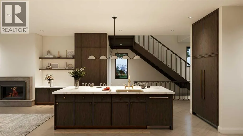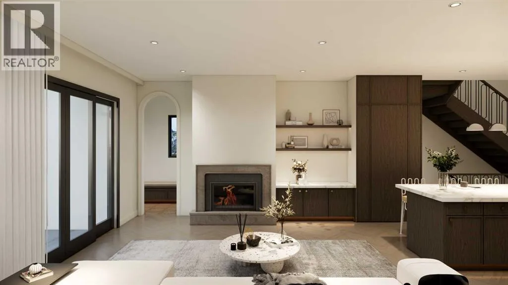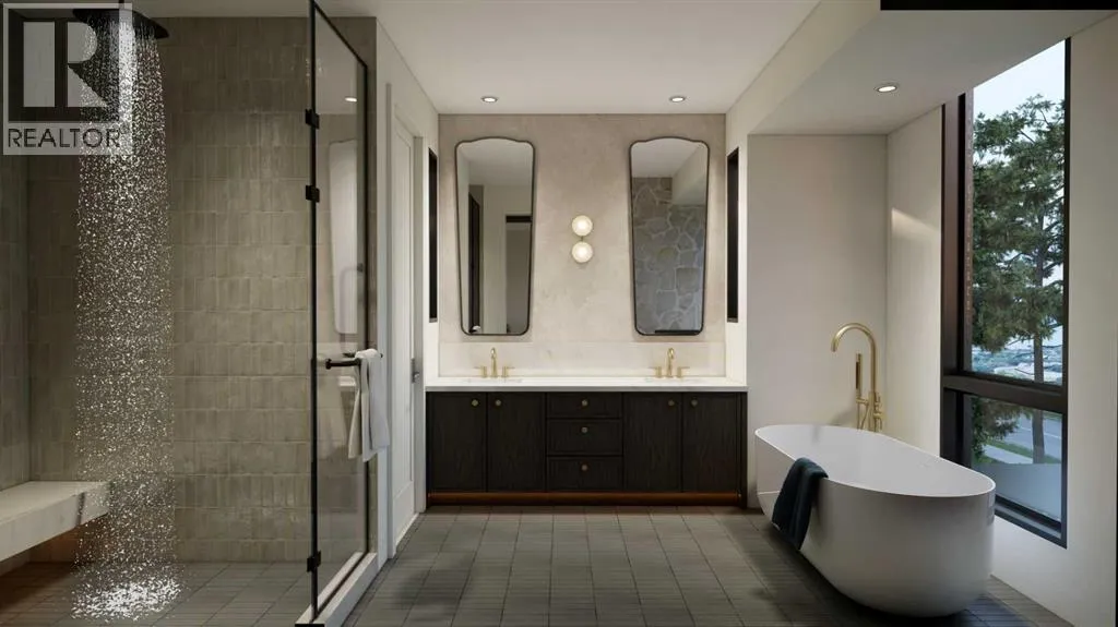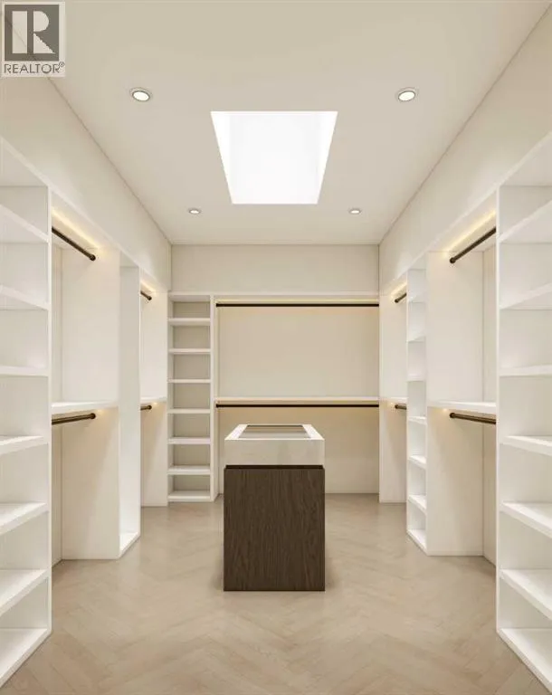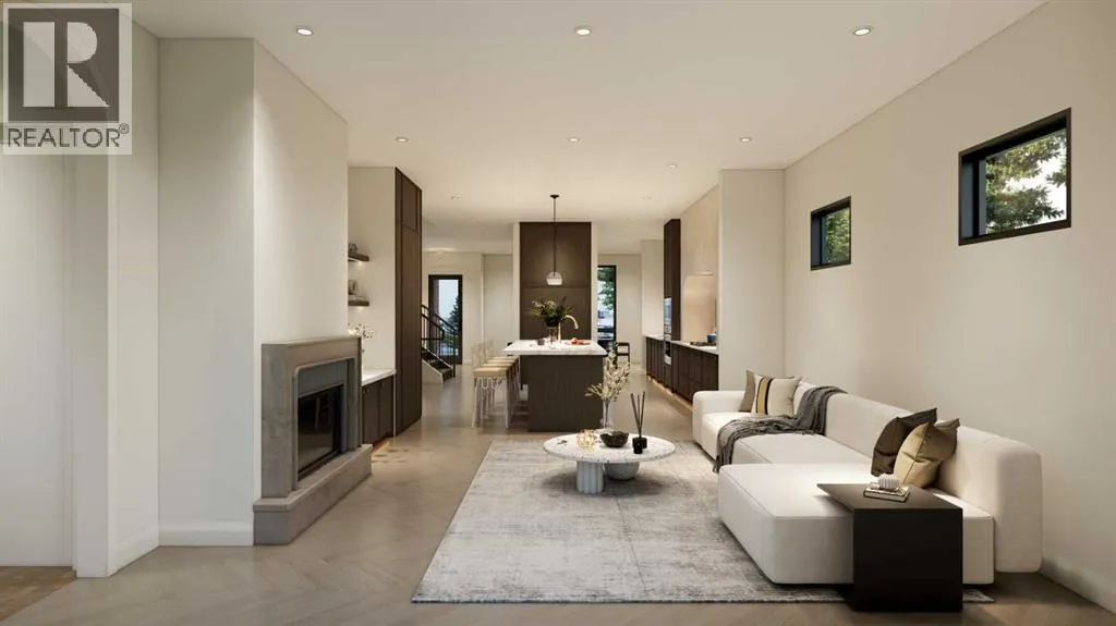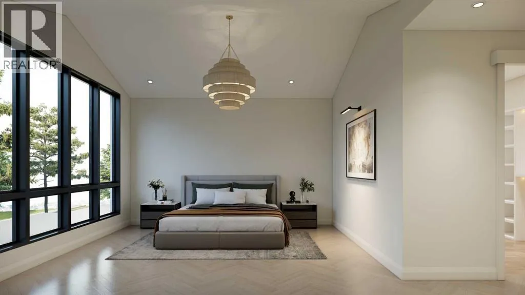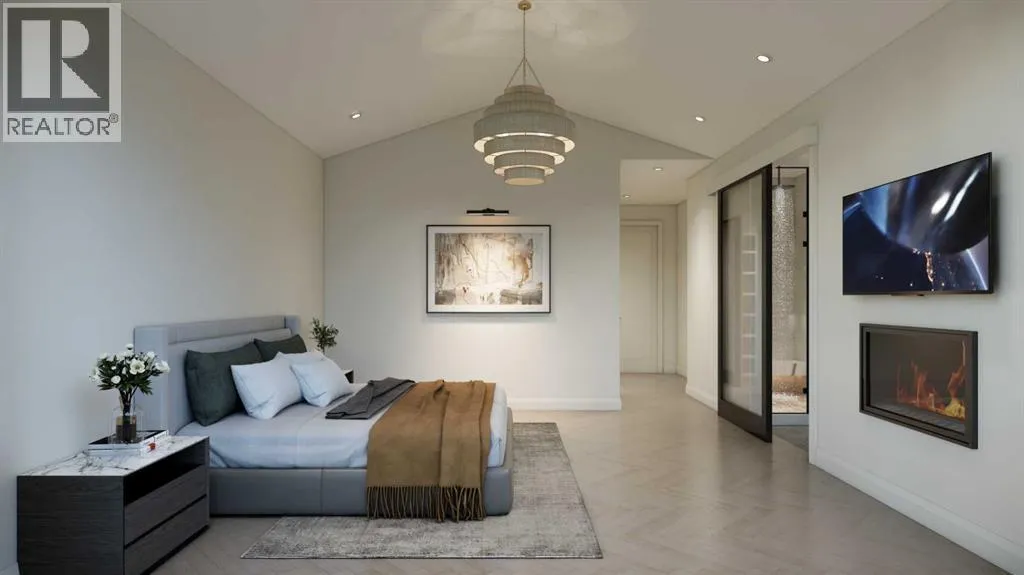 An artisanal masterpiece awaits, steps to Confederation Park, where every detail has been meticulously curated by a builder renowned for impeccable taste. Approaching the home, a large covered front patio welcomes you, setting the tone for a residence that is truly a cut above. Inside, the open~concept main floor is designed for both grand entertaining and everyday living. The front formal dining area features an adjacent wine display and a hidden butlerâs pantry, both encased in elegant white oak feature walls, while a tucked away hidden home office seamlessly blends sophistication with functionality. The expansive kitchen with panel ready JennAir appliances blends effortlessly into the living room at the back. Anchored by a striking stone cast gas fireplace hearth and complemented by a discreet powder room and spacious mudroom, this main floor leaves nothing to be desired. Ascending to the upper floor, the master suite impresses with an 18~foot vaulted ceiling and 12~foot double sided stone gas fireplace, offset by a freestanding tub. The ensuite exudes a moody, indulgent vibe with accent lighting, a large steam shower with body jets, and a raindrop shower head. The walk~in closet is the size of a secondary bedroom, filled with natural light from a skylight, lit accent cabinetry and a glass countertop valet stand. Two additional bedrooms, each with tray ceilings, starlights, and backlit crown moulding, also feature their own walk~in closets and ensuites. With a conveniently located (and magazine worthy) laundry room completing this space. The lower level continues the theme of refined living, offering a large living area with projector and screen, a wet bar with island, and an additional versatile home office space with glass wall detailing. A private large fourth bedroom for a family member or guests, includes a massive walk~in closet ideal for additional home storage. Even the mechanical room is a statement piece, finished with diamond checker plate walls an d epoxy floors. Throughout the home, thoughtful features abound. The oversized garage is also heated and fully finished with epoxy flooring, and the upper bathrooms are connected to an instant hot water system, All closets are finished in a thermally fused laminate material, complemented again by fully installed air conditioning system, and speaker system throughout. This is a home that marries unparalleled craftsmanship, intelligent design, and luxurious finishes at every turn. From the moment you arrive to the final detail in the basement, this home is a true reflection of bespoke elegance. Est completion May 2026. (id:27476)
