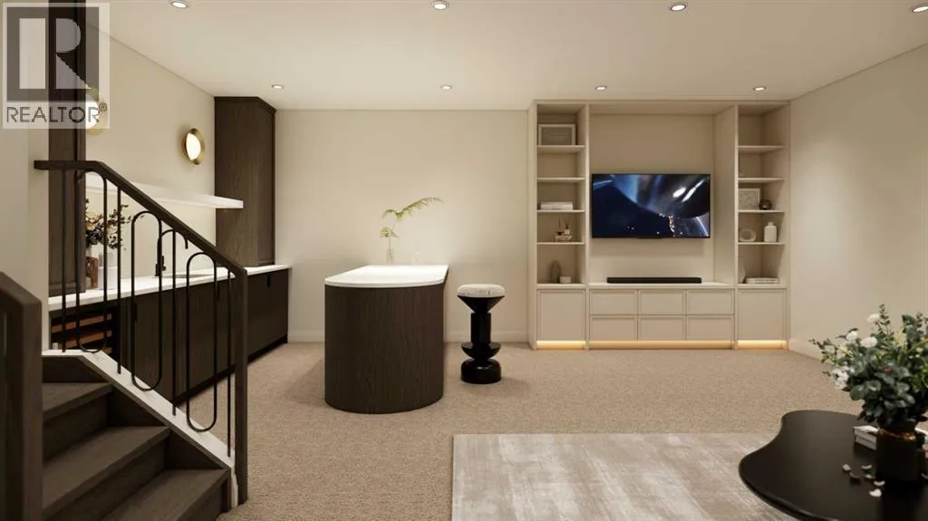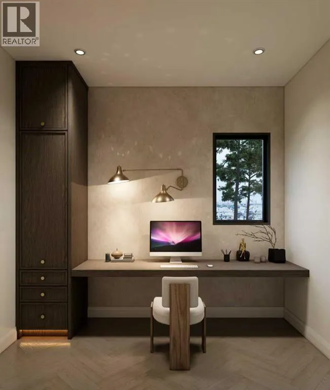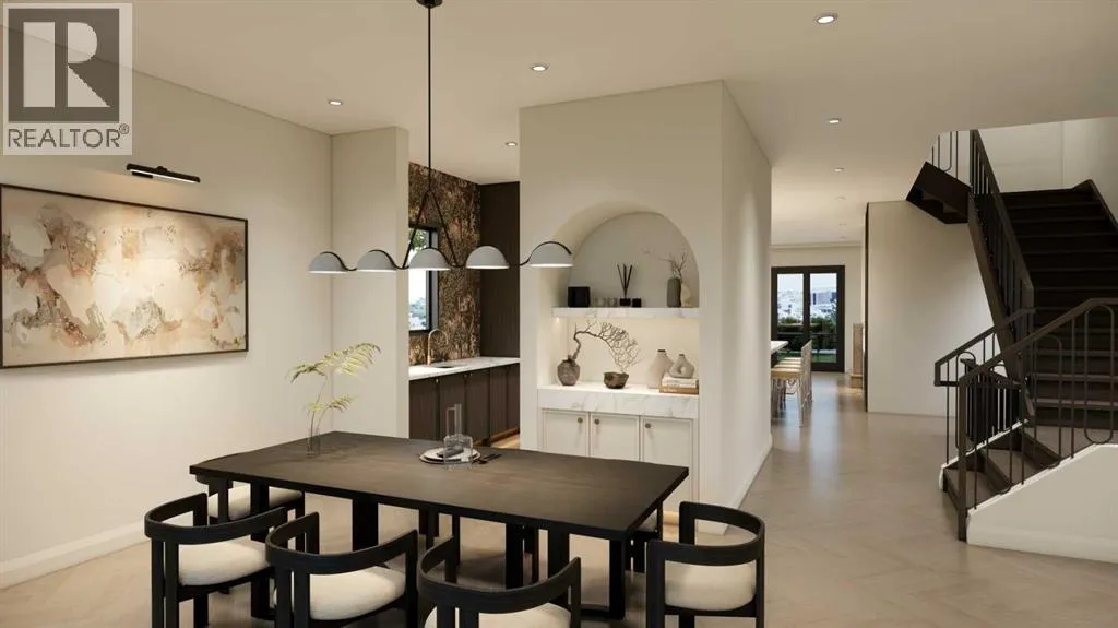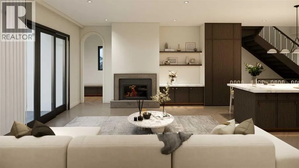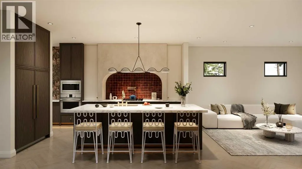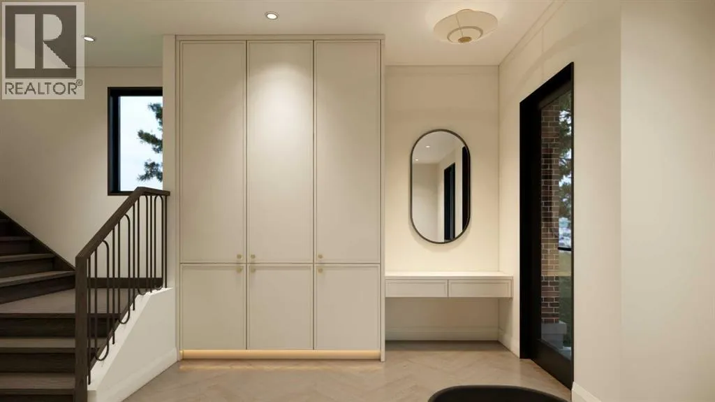 An artisanal masterpiece awaits, steps to Confederation Park, where every detail has been meticulously curated by a builder renowned for impeccable taste. Approaching the home, a large covered front patio welcomes you, setting the tone for a residence that is truly a cut above. Inside, the open~concept main floor is designed for both grand entertaining and everyday living. The front formal dining area features an adjacent wine display and a hidden butlerâs pantry, both encased in elegant white oak feature walls, while a tucked away hidden home office seamlessly blends sophistication with functionality. The expansive kitchen with panel ready JennAir appliances blends effortlessly into the living room at the back. Anchored by a striking stone cast gas fireplace hearth and complemented by a discreet powder room and spacious mudroom, this main floor leaves nothing to be desired. Ascending to the upper floor, the master suite impresses with an 18~foot vaulted ceiling and 12~foot double sided stone gas fireplace, offset by a freestanding tub. The ensuite exudes a moody, indulgent vibe with accent lighting, a large steam shower with body jets, and a raindrop shower head. The walk~in closet is the size of a secondary bedroom, filled with natural light from a skylight, lit accent cabinetry and a glass countertop valet stand. Two additional bedrooms, each with tray ceilings, starlights, and backlit crown moulding, also feature their own walk~in closets and ensuites. With a conveniently located (and magazine worthy) laundry room completing this space. The lower level continues the theme of refined living, offering a large living area with projector and screen, a wet bar with island, and an additional versatile home office space with glass wall detailing. A private large fourth bedroom for a family member or guests, includes a massive walk~in closet ideal for additional home storage. Even the mechanical room is a statement piece, finished with diamond checker plate walls an d epoxy floors. Throughout the home, thoughtful features abound. The oversized garage is also heated and fully finished with epoxy flooring, and the upper bathrooms are connected to an instant hot water system, All closets are finished in a thermally fused laminate material, complemented again by fully installed air conditioning system, and speaker system throughout. This is a home that marries unparalleled craftsmanship, intelligent design, and luxurious finishes at every turn. From the moment you arrive to the final detail in the basement, this home is a true reflection of bespoke elegance. Est completion May 2026. (id:27476)