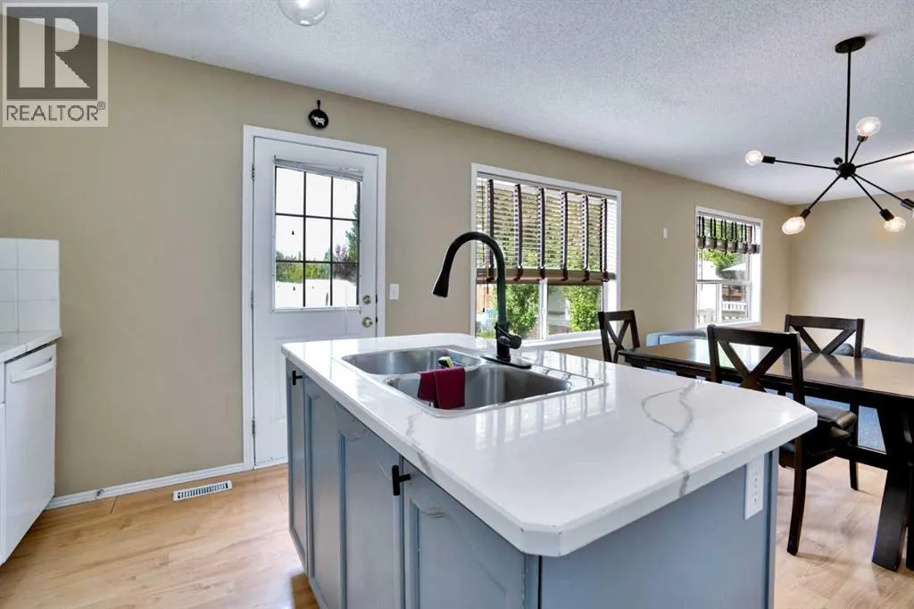 OPEN HOUSE JANUARY 18th on SUN 2-4PM This beautiful executive home has 5 Bedrooms and fully developed basement located in the lake community of Chaparral walking distance to the lake entrance and 2 Schools, Shopping and Stoney as well as the new Tsu-Tina COSTCO this house has been recently updated The whole house was freshly painted and renovated great open floor plan kitchen with 4 appliances office large family room with gas fireplace and a formal dinning room laundry room and a double attached garage upstairs has 4 bedrooms the master has a walk in closet and master bathroom has a sky light with a jetted tub. Big yard with a large deck and a large RV parking space or lots of room for another garage or parking 3 extra vehicles with a Large freshly painted deck also has Gaz hook ups for BBQ The Basement is fully finished has a small bar or kitchen with no stove large rec room and a 3 piece bathroom and an extra bedroom. The house is currently vacant great for an investor the previous tenant has been fantastic the tenant has been in the property for 9 yrs and was paying $3000.00/month the current rental value could be $3500 the property has been well taken care of and shows well the basement could be suited or a mother in law suite potential for a live in nanny or house keeper (id:27476)