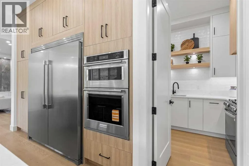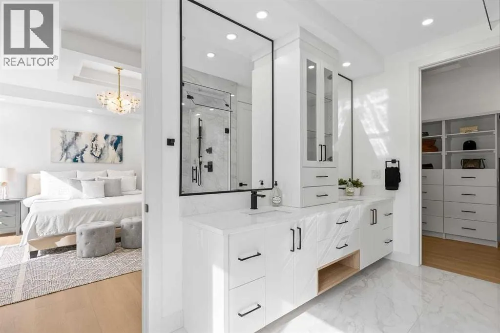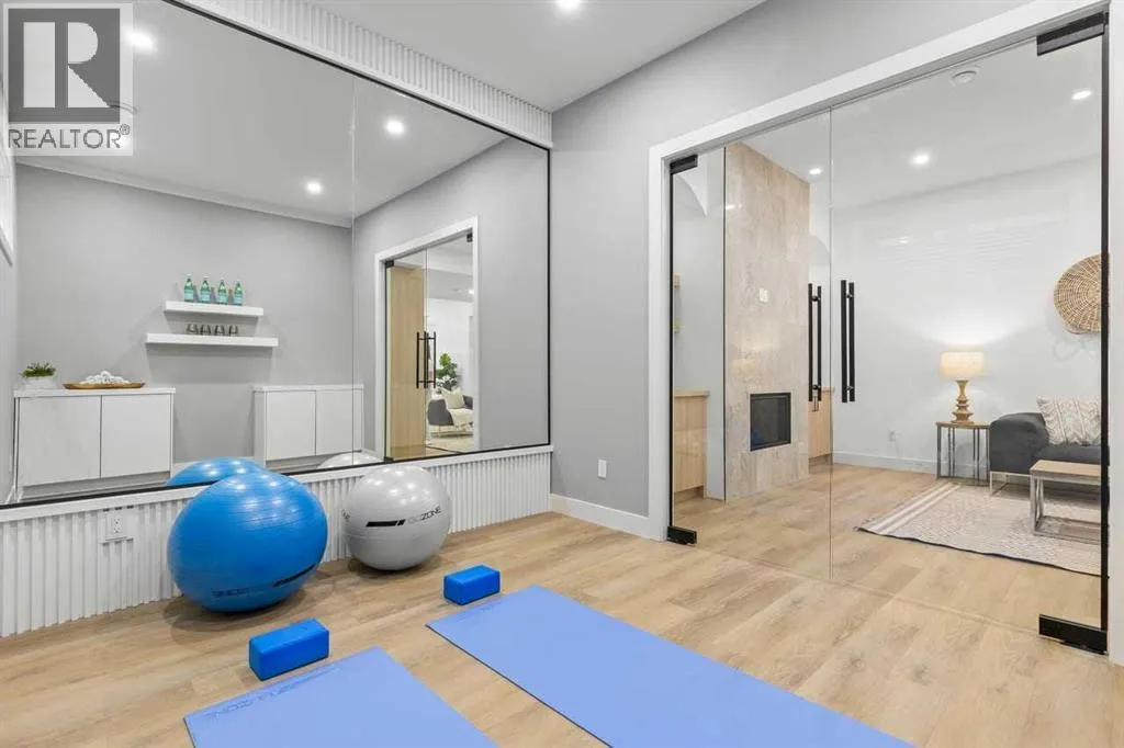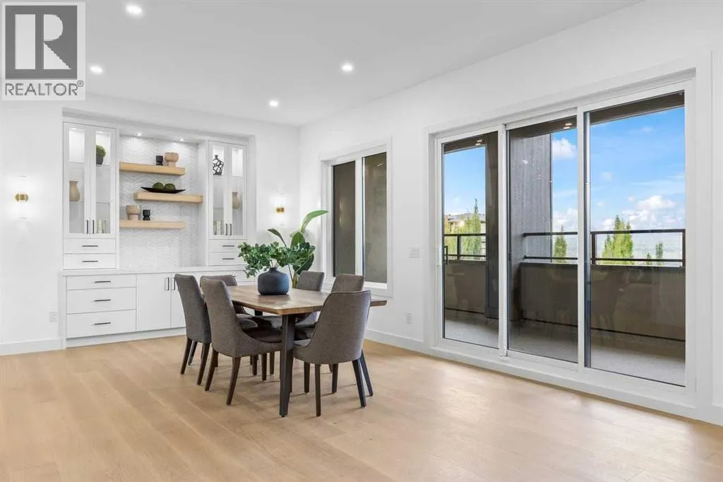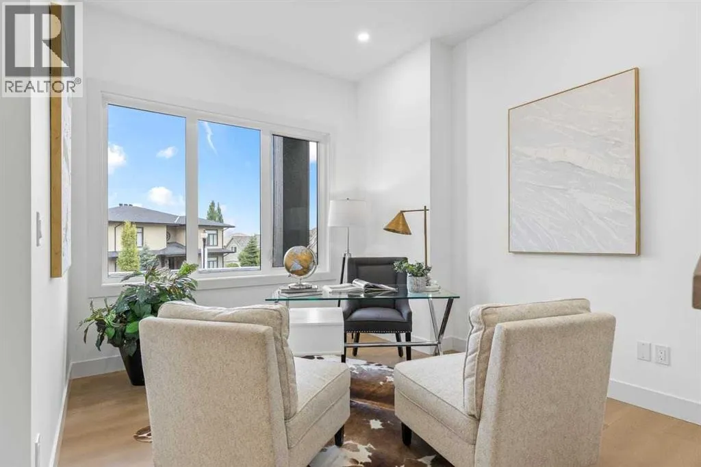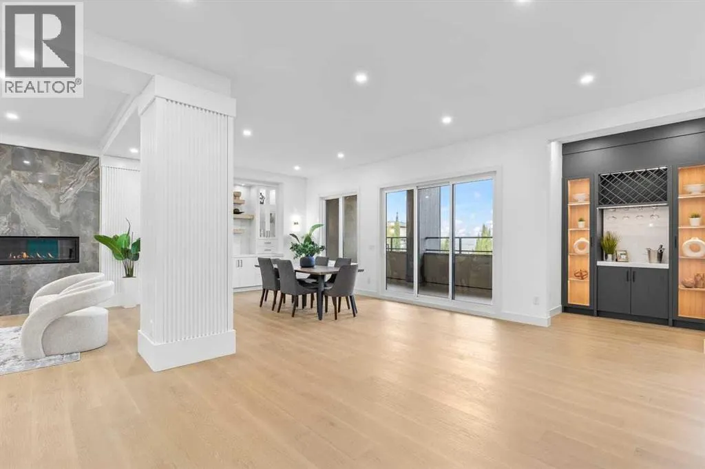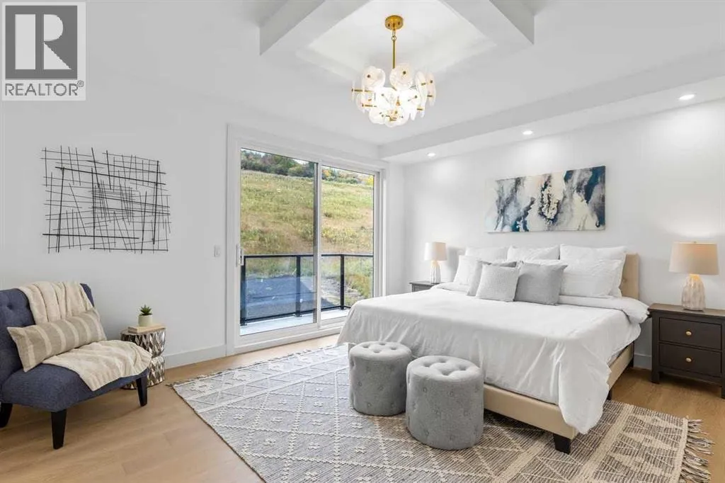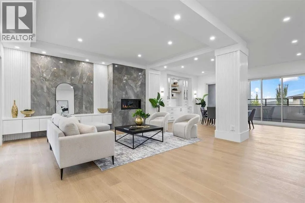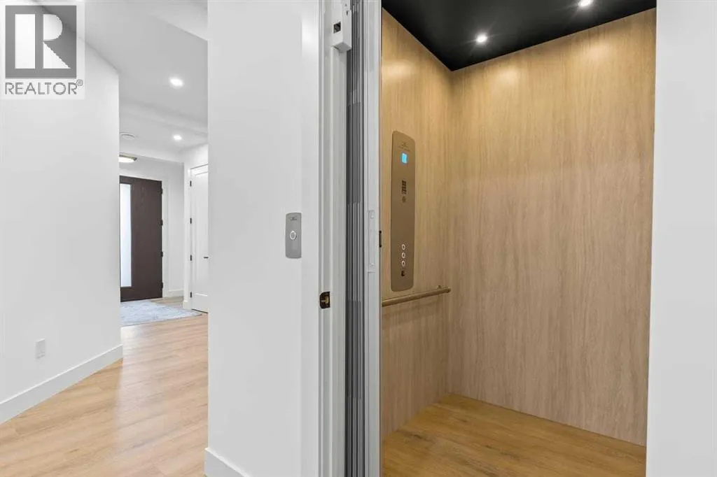 open house feb 14 1-4pm Set within the prestigious community of Patterson Heights â The Point - this exceptional luxury residence offers over 5,000 sq. ft. of elevated living designed for comfort and functionality. From the moment you arrive, the home makes a statement with a grand entryway highlighted by a floor-to-ceiling custom closet. Just off the entrance, a well-appointed mudroom features a walk-in closet and a striking full-height wall unit, providing direct access to the oversized double garage. The garage is fully outfitted with EV charging outlets, a gas heater rough-in, and hot and cold water taps. Completing this level is a full bathroom with quartz countertops and a floor-to-ceiling glass shower. The main living space is defined by 10-foot ceilings and wide vinyl plank flooring, creating a clean, modern flow throughout. The living room offers warmth and style with a custom wall unit and ambient LED lighting, while the dedicated bar area, complete with a bar fridge, is ideal for hosting. A private, light-filled gym with recessed lighting, floating shelving, and generous space for equipment. A striking open-riser staircase and a private elevator connect all 3 levels and lead to the stunning 2nd floor. Here, youâll find a bright home office overlooking a large window, a sleek powder room, and a refined dining area anchored by a built-in LED-lit wall feature. Glass sliding doors open to a large East facing balcony, while the family room impresses with a coffered ceiling, art-block feature wall, and gas fireplace. Additional sliding doors lead to a fully landscaped backyard complemented by a composite rear deck with a gas line, backing onto peaceful green space, where nature and wildlife create a serene setting. The chef-inspired kitchen anchors the home with a quartz waterfall island, hidden cabinetry, two-tone modern cabinets, and high-end stainless steel appliances. A fully equipped spice kitchen allows for effortless entertaining, while a modern breakfas t nook with a statement light fixture completes the space. The upper level is a private sanctuary, beginning with a grand primary suite set behind French doors. Enjoy a private balcony overlooking green space, a juice bar, in-floor heated ensuite, and a spa-style bathroom featuring a freestanding tub and a glass-enclosed steam shower with rainfall head and granite seating. Two additional bedrooms share a Jack & Jill bathroom with quartz countertops, while a fourth bedroom offers its own full bath and walk-in closet. A thoughtfully finished laundry room enhances everyday convenience. A bonus room with downtown views and an additional wall unit completes the upper level, which continues the homeâs open feel with 9-foot ceilings throughout. Additional highlights: basement under-slab heating rough-in, a 75-gallon hot water tank, two high-efficiency furnaces, two central A/C units, and extensive built-in cabinetry. Don't miss the opportunity to own this exceptional luxury home. Book your private showing today! (id:27476)