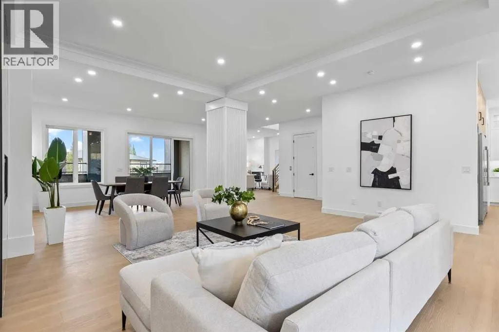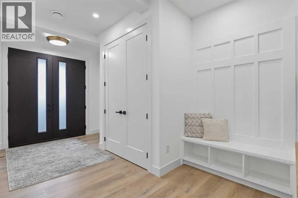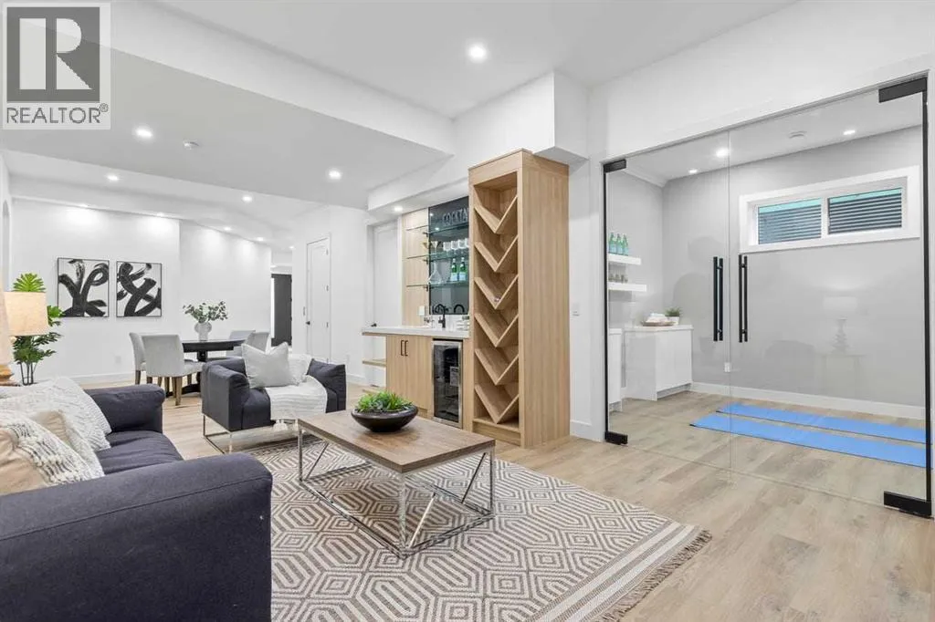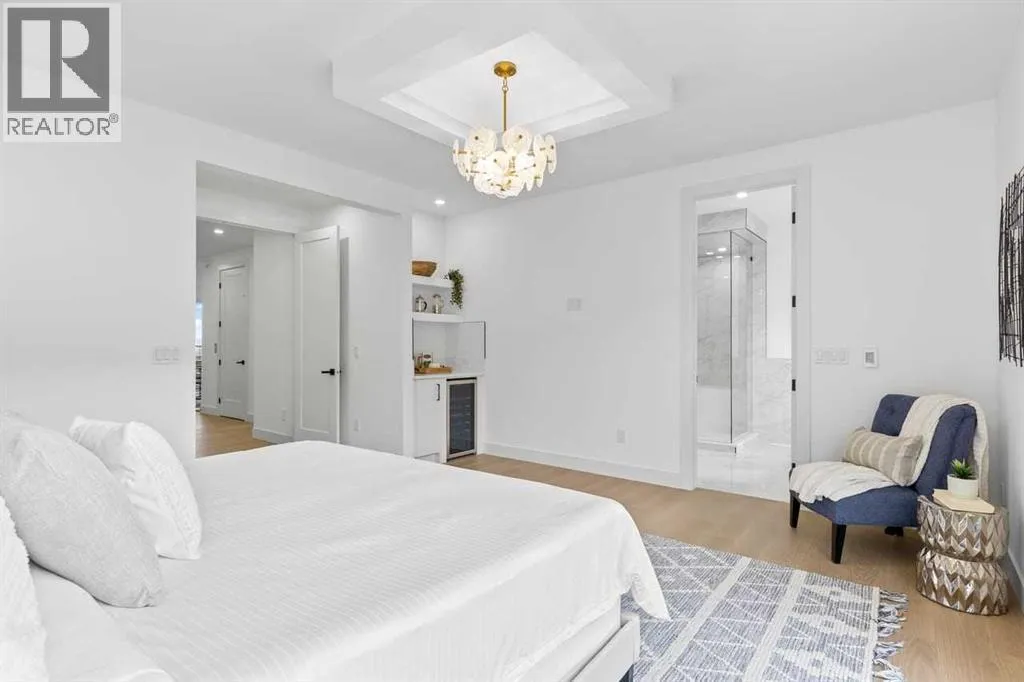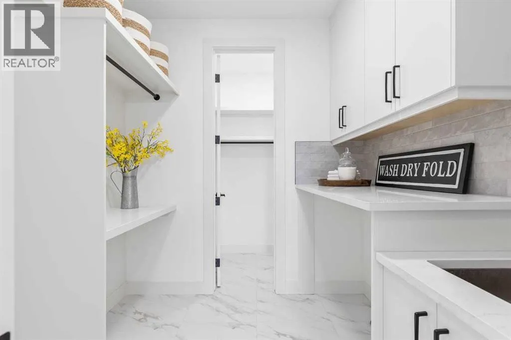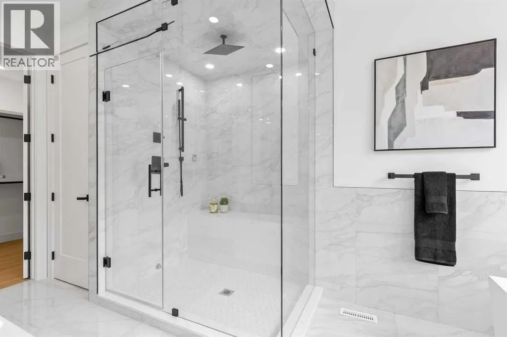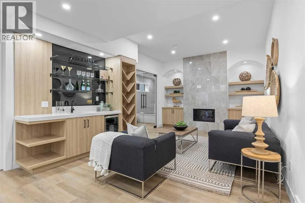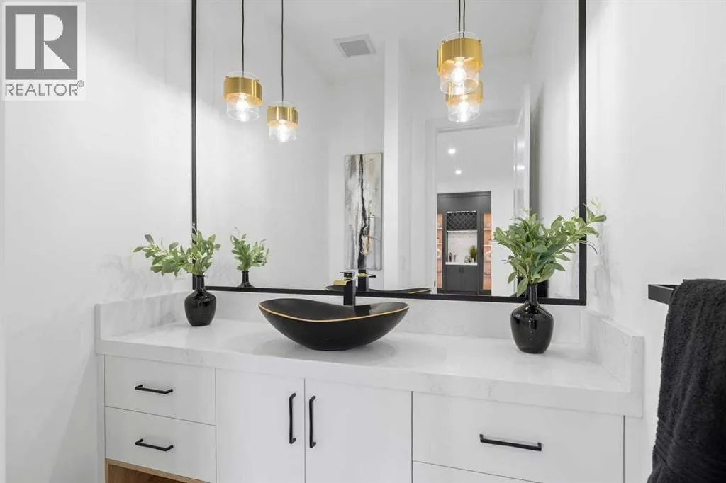 open house feb 14 1-4pm Set within the prestigious community of Patterson Heights â The Point - this exceptional luxury residence offers over 5,000 sq. ft. of elevated living designed for comfort and functionality. From the moment you arrive, the home makes a statement with a grand entryway highlighted by a floor-to-ceiling custom closet. Just off the entrance, a well-appointed mudroom features a walk-in closet and a striking full-height wall unit, providing direct access to the oversized double garage. The garage is fully outfitted with EV charging outlets, a gas heater rough-in, and hot and cold water taps. Completing this level is a full bathroom with quartz countertops and a floor-to-ceiling glass shower. The main living space is defined by 10-foot ceilings and wide vinyl plank flooring, creating a clean, modern flow throughout. The living room offers warmth and style with a custom wall unit and ambient LED lighting, while the dedicated bar area, complete with a bar fridge, is ideal for hosting. A private, light-filled gym with recessed lighting, floating shelving, and generous space for equipment. A striking open-riser staircase and a private elevator connect all 3 levels and lead to the stunning 2nd floor. Here, youâll find a bright home office overlooking a large window, a sleek powder room, and a refined dining area anchored by a built-in LED-lit wall feature. Glass sliding doors open to a large East facing balcony, while the family room impresses with a coffered ceiling, art-block feature wall, and gas fireplace. Additional sliding doors lead to a fully landscaped backyard complemented by a composite rear deck with a gas line, backing onto peaceful green space, where nature and wildlife create a serene setting. The chef-inspired kitchen anchors the home with a quartz waterfall island, hidden cabinetry, two-tone modern cabinets, and high-end stainless steel appliances. A fully equipped spice kitchen allows for effortless entertaining, while a modern breakfas t nook with a statement light fixture completes the space. The upper level is a private sanctuary, beginning with a grand primary suite set behind French doors. Enjoy a private balcony overlooking green space, a juice bar, in-floor heated ensuite, and a spa-style bathroom featuring a freestanding tub and a glass-enclosed steam shower with rainfall head and granite seating. Two additional bedrooms share a Jack & Jill bathroom with quartz countertops, while a fourth bedroom offers its own full bath and walk-in closet. A thoughtfully finished laundry room enhances everyday convenience. A bonus room with downtown views and an additional wall unit completes the upper level, which continues the homeâs open feel with 9-foot ceilings throughout. Additional highlights: basement under-slab heating rough-in, a 75-gallon hot water tank, two high-efficiency furnaces, two central A/C units, and extensive built-in cabinetry. Don't miss the opportunity to own this exceptional luxury home. Book your private showing today! (id:27476)