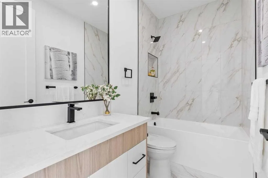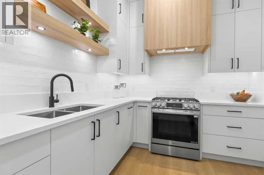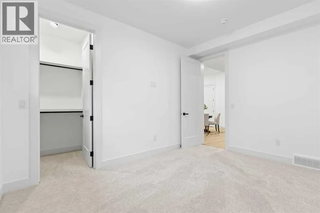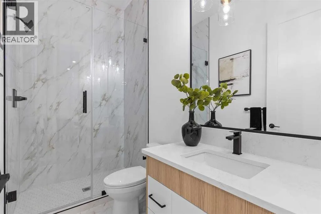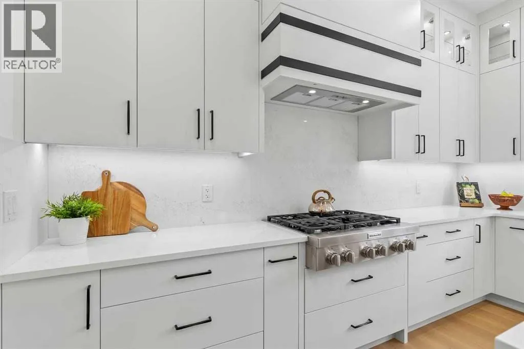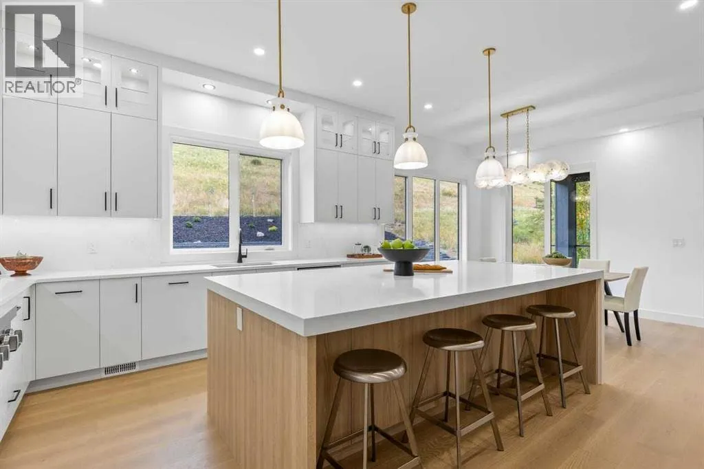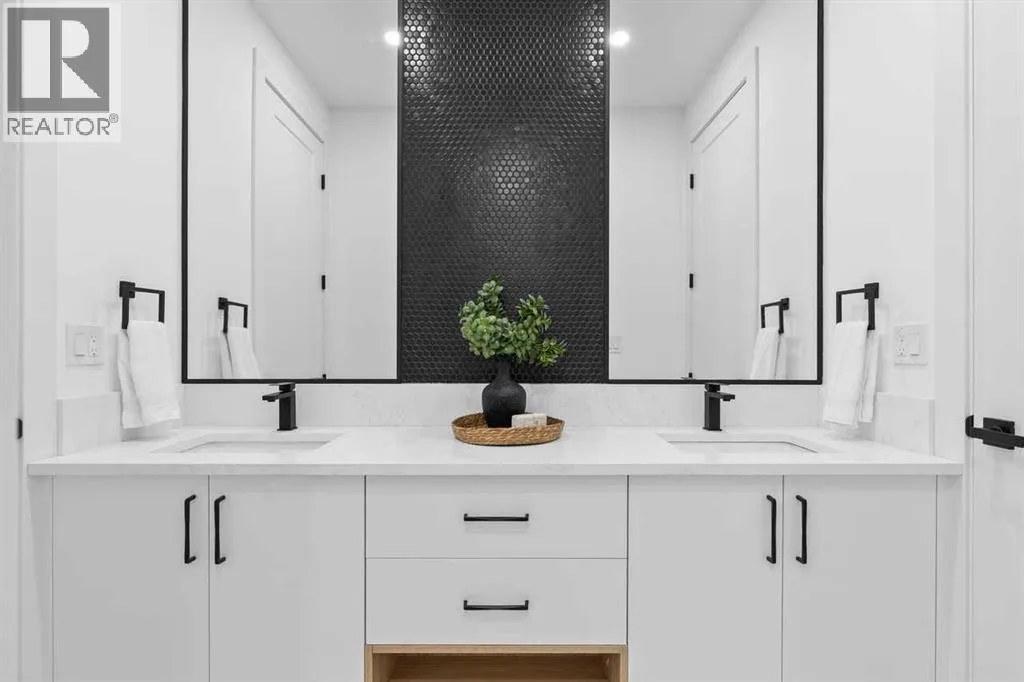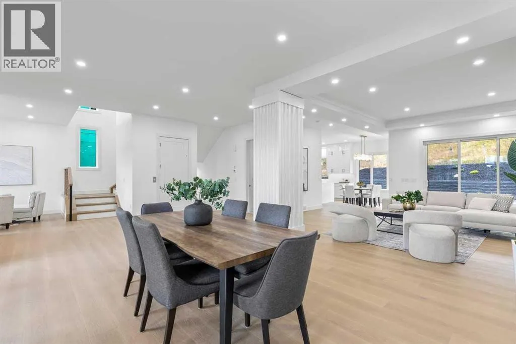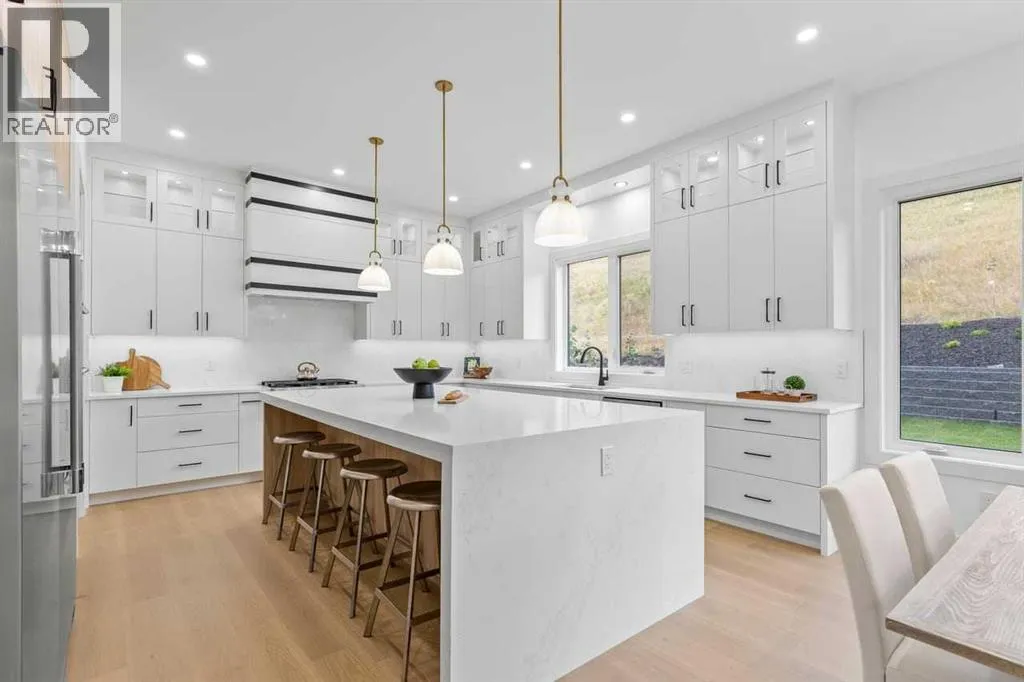 open house feb 14 1-4pm Set within the prestigious community of Patterson Heights â The Point - this exceptional luxury residence offers over 5,000 sq. ft. of elevated living designed for comfort and functionality. From the moment you arrive, the home makes a statement with a grand entryway highlighted by a floor-to-ceiling custom closet. Just off the entrance, a well-appointed mudroom features a walk-in closet and a striking full-height wall unit, providing direct access to the oversized double garage. The garage is fully outfitted with EV charging outlets, a gas heater rough-in, and hot and cold water taps. Completing this level is a full bathroom with quartz countertops and a floor-to-ceiling glass shower. The main living space is defined by 10-foot ceilings and wide vinyl plank flooring, creating a clean, modern flow throughout. The living room offers warmth and style with a custom wall unit and ambient LED lighting, while the dedicated bar area, complete with a bar fridge, is ideal for hosting. A private, light-filled gym with recessed lighting, floating shelving, and generous space for equipment. A striking open-riser staircase and a private elevator connect all 3 levels and lead to the stunning 2nd floor. Here, youâll find a bright home office overlooking a large window, a sleek powder room, and a refined dining area anchored by a built-in LED-lit wall feature. Glass sliding doors open to a large East facing balcony, while the family room impresses with a coffered ceiling, art-block feature wall, and gas fireplace. Additional sliding doors lead to a fully landscaped backyard complemented by a composite rear deck with a gas line, backing onto peaceful green space, where nature and wildlife create a serene setting. The chef-inspired kitchen anchors the home with a quartz waterfall island, hidden cabinetry, two-tone modern cabinets, and high-end stainless steel appliances. A fully equipped spice kitchen allows for effortless entertaining, while a modern breakfas t nook with a statement light fixture completes the space. The upper level is a private sanctuary, beginning with a grand primary suite set behind French doors. Enjoy a private balcony overlooking green space, a juice bar, in-floor heated ensuite, and a spa-style bathroom featuring a freestanding tub and a glass-enclosed steam shower with rainfall head and granite seating. Two additional bedrooms share a Jack & Jill bathroom with quartz countertops, while a fourth bedroom offers its own full bath and walk-in closet. A thoughtfully finished laundry room enhances everyday convenience. A bonus room with downtown views and an additional wall unit completes the upper level, which continues the homeâs open feel with 9-foot ceilings throughout. Additional highlights: basement under-slab heating rough-in, a 75-gallon hot water tank, two high-efficiency furnaces, two central A/C units, and extensive built-in cabinetry. Don't miss the opportunity to own this exceptional luxury home. Book your private showing today! (id:27476)