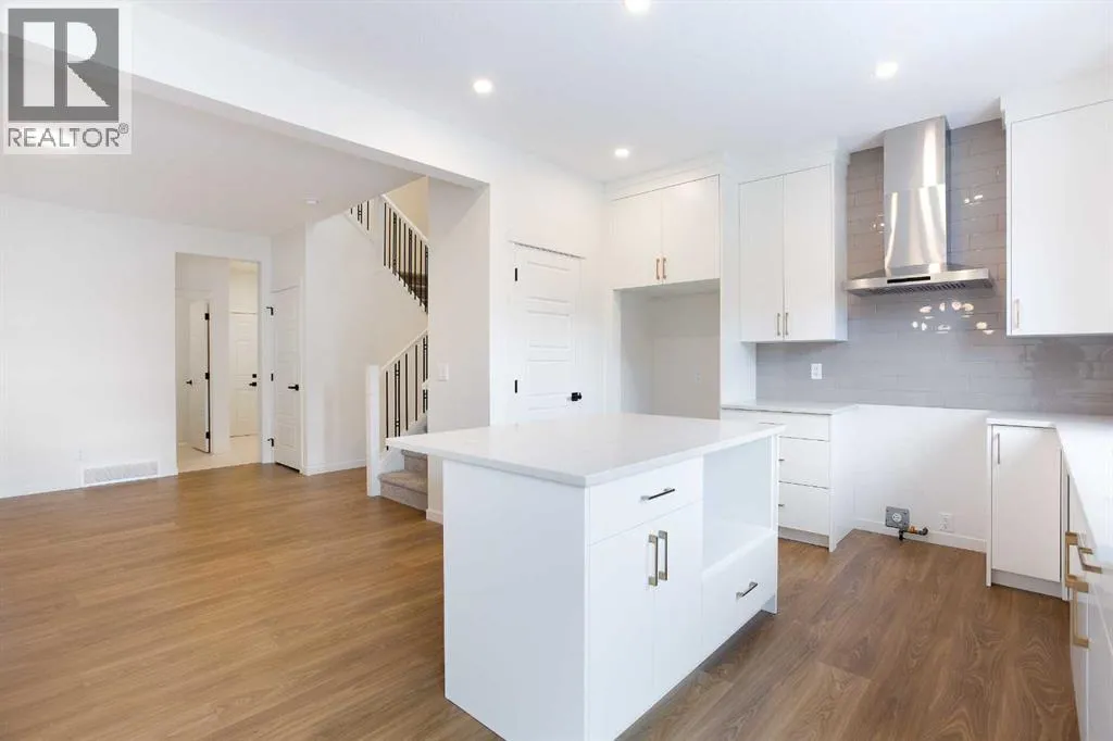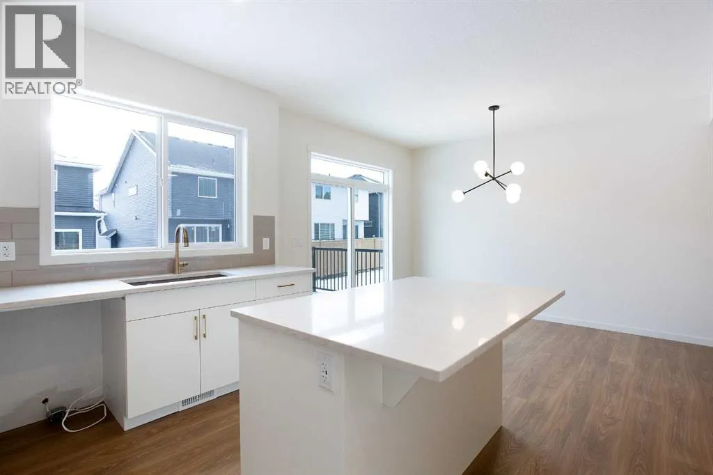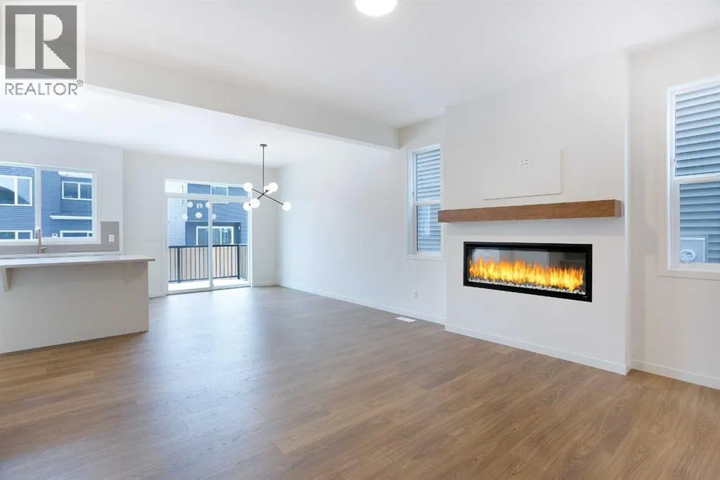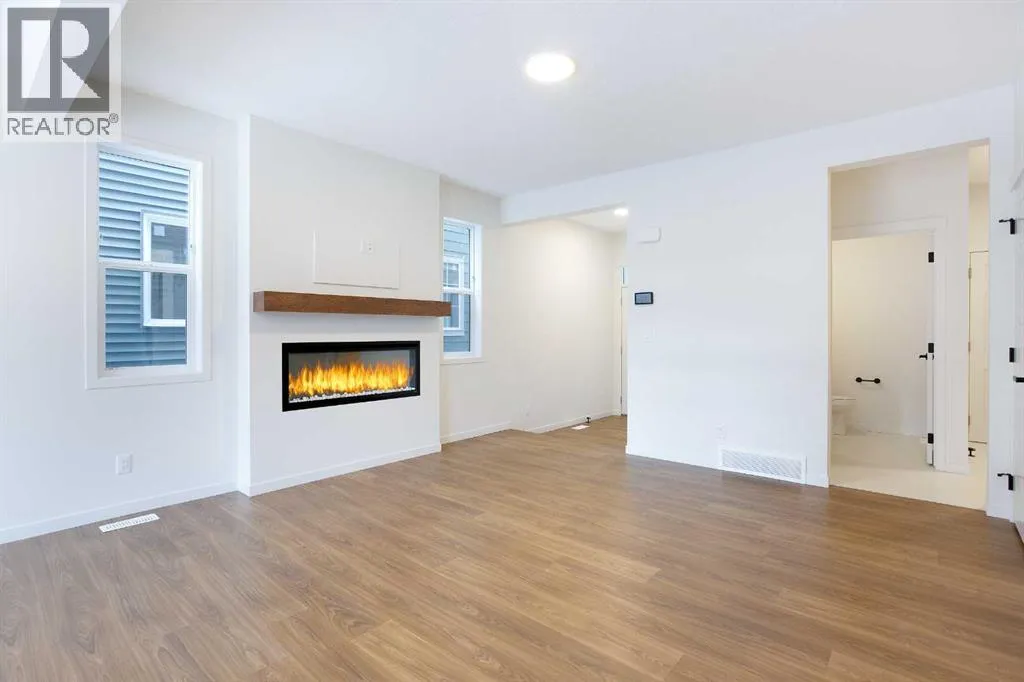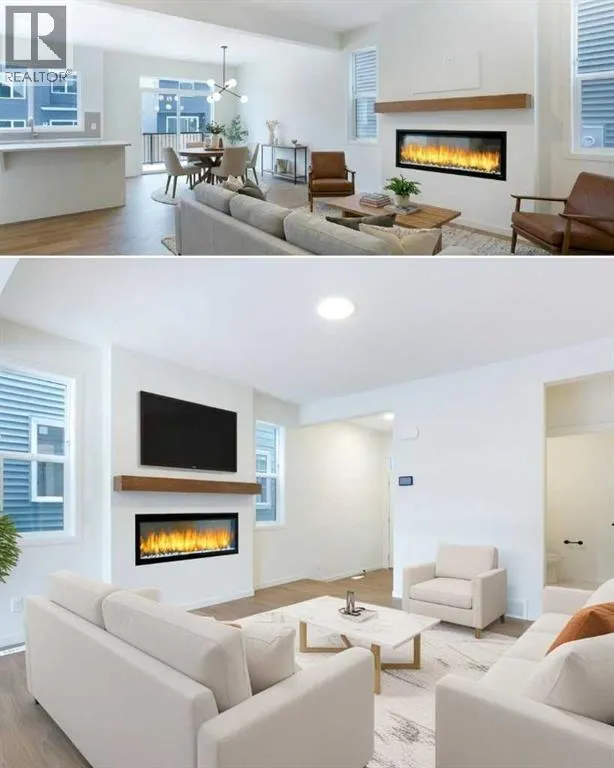 Welcome to this beautifully designed Morrison Homes Shetland I model, a modern and thoughtfully laid-out two-storey semi-attached home is located in the highly sought-after community of Sirocco at Pine Creek. Offering over 1,800 sq. ft. of developed living space above grade, this home perfectly combines contemporary style, functional design, and exceptional attention to detail, complete with a front-attached double garage and a smartly planned layout that effortlessly accommodates modern family life while providing ample space for entertaining, daily routines, and long-term living.The main floor showcases a bright, open-concept design anchored by light woodâfinish luxury vinyl plank flooring, creating a warm and inviting atmosphere that flows seamlessly from room to room. The kitchen is a true centerpiece, featuring quartz countertops throughout, modern cabinetry, and a full suite of stainless steel appliances, offering both style and practicality for the modern home chef. The generous layout provides plenty of prep space, while the open dining and living areas are anchored by a feature TV wall with an electric fireplace, establishing a striking focal point that blends comfort, function, and modern elegance.A well-designed mudroom with built-in cabinetry and tiled flooring provides a convenient and organized transition from the garage, keeping daily essentials neatly stored and accessible. A stylish powder room on the main floor adds convenience for both family life and entertaining guests.Upstairs, the home continues to impress with three spacious bedrooms, including a private primary suite that offers a walk-in closet and a beautifully appointed ensuite bathroom with tiled flooring and a sleek stand-up glass shower, providing a spa-inspired retreat within the comfort of your home. A centrally located bonus room provides additional versatile living space in the heart of the upper floor, perfect for a family media area, study, or playroom. Two additional bedro oms share a full bathroom, also finished with tiled floors for a cohesive and high-end feel throughout. The top-floor laundry enhances convenience, while soft carpeting throughout the upper level adds warmth and comfort to all bedrooms and living spaces.The unfinished basement is ready for future development, presenting a versatile blank canvas to create additional living space, recreation rooms, extra bedrooms, or a home office, allowing buyers to customize the home to perfectly suit their familyâs evolving lifestyle and needs.Situated in a vibrant southwest community with access to parks, walking and cycling pathways, schools, and future amenities, this home blends thoughtful design, high-quality finishes, and long-term flexibility. This home offers discerning buyers a contemporary, functional, and stylish home that combines immediate comfort with exceptional potential for expansion and personalization, making it an outstanding choice for families seeking quality. (id:27476)