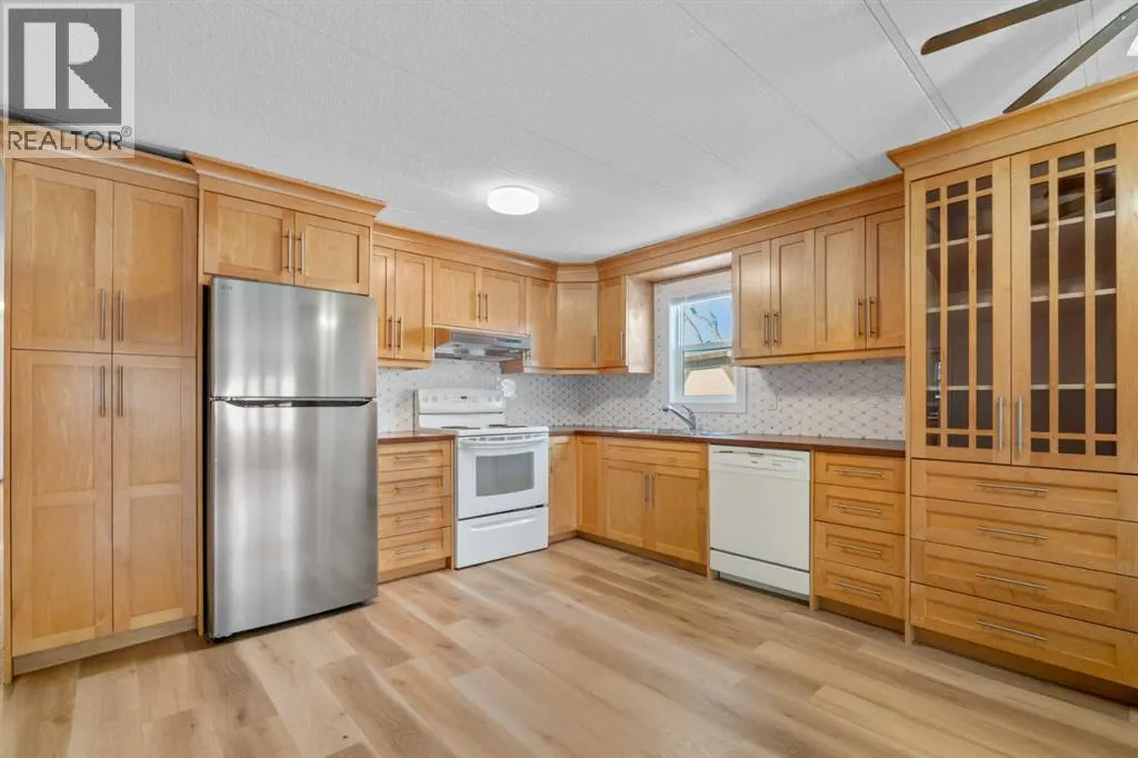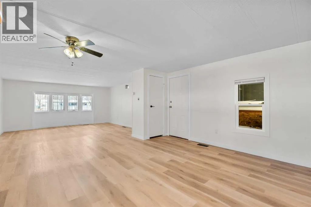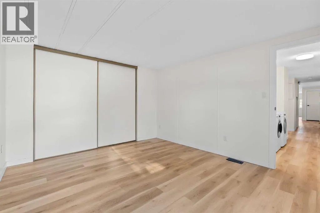 Donât wait to view this property - you wonât be disappointed! Renovated 3 bed, 1 bath mobile home in the plus-18 section, conveniently located Sunpark Mountview Mobile Home Park. FULLY RENOVATED WITH ALL OF THE BIG-TICKET ITEMS DONE! This home is on a cul-de-sac with quick access to 17 Ave SE, sits across from a GREEN SPACE and has a large, private backyard. You will see it has a great layout with a large, living room, huge kitchen, and dining area with tons of NEWER KITCHEN CUPBOARDS, including two pantries, and new stainless-steel fridge. You will find NEW VINYL PLANK FLOORING throughout. The home is painted in a modern color palette designed to suit any decor, a spacious hallway leading to the large 4-pce bath with newer tub, toilet and vanity. NEW BASEBOARDS AND CASING THROUGHOUT. The large living brings in natural light through the front windows. The primary bedroom is spacious with a large closet. The second and third bedrooms are a good size, and one can be used as an office or flex room. This home sits on a large lot with parking for two cars side by side in the laneway. Lot rent of $1100 per month includes water, sewer, garbage pickup and snow removal. Unbeatable location: Enjoy quick access to 17 Ave SE, Stoney Trail, Deerfoot Trail, and downtown Calgary. Transit is just a block away, while East Hills Shopping Centre, International Avenue, restaurants, and all amenities are minutes from your door. and all levels of transit, shopping, restaurants and amenities are close by. Plus, Elliston Park is right across the street. Lease approval is required. Pets are allowed with approval. This move-in ready home offers exceptional value for the price. Donât miss your opportunityâschedule your viewing today and picture yourself settling into this beautifully updated, conveniently located home! Check out the iGuide tour for a virtual walk-through (id:27476)