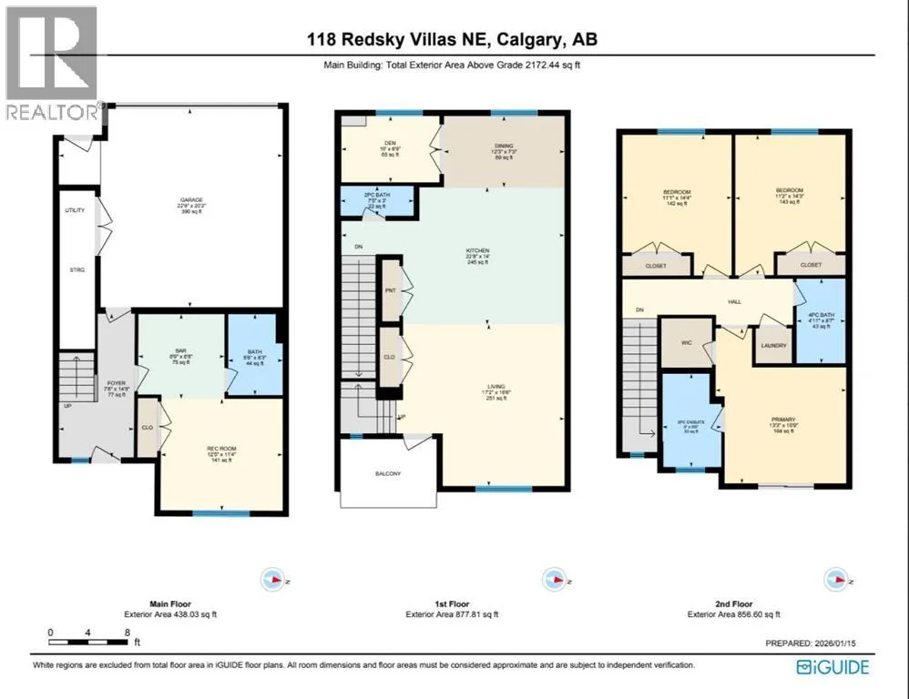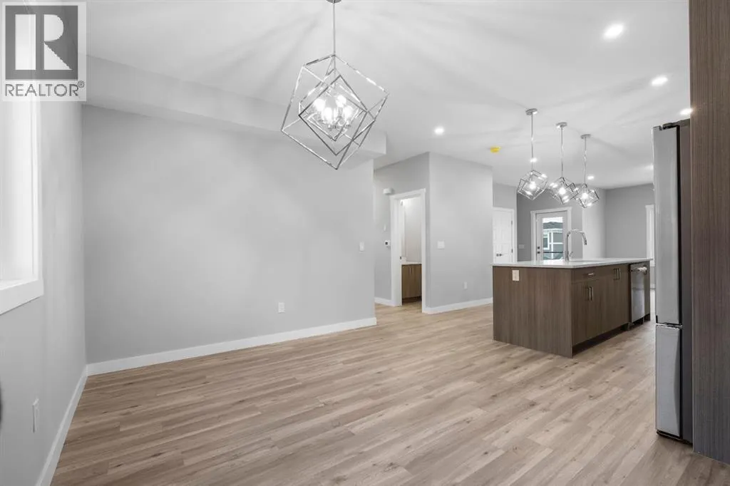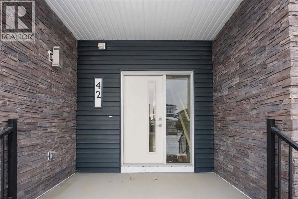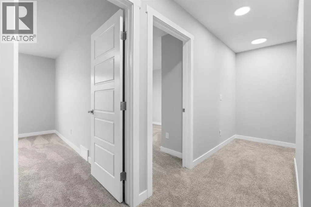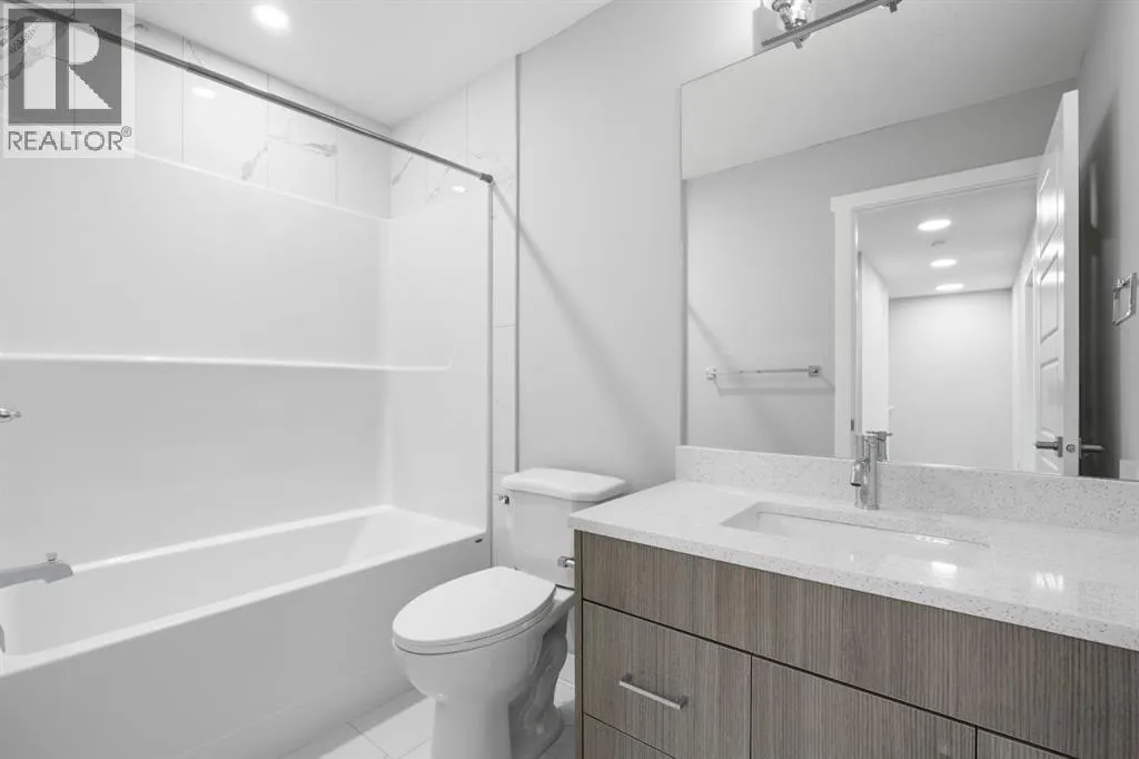 Welcome to this elegant brand-new 3-storey townhome with double attached garage, offering 4 bedrooms and 3.5 bathrooms in the desirable community of Redstone. Designed with upscale modern finishes, this home features quartz countertops, full-height glossy cabinetry, stainless steel appliances, soft-close drawers and cabinets, stacked front-load washer & dryer, and energy-efficient high-performance windows. A rare main-floor studio bedroom with wet bar and 4-pc ensuite provides an ideal private space for elderly family members, guests, or independent living. The open-concept second level showcases a chef-inspired kitchen with large island, pantry, dedicated dining area, home office/den with frosted French doors, and an expansive living room opening to an east-facing balcony, lighting, and privacy screen. Upper level includes a spacious primary suite with walk-in closet and ensuite, two additional bedrooms, full bath, and upper-floor laundry. Low condo fees, central greenspace courtyard, visitor parking, and quick access to Stoney Trail complete this exceptional offering. **Photos are of similar unit in the complex, all from the same floor plan, exterior & interior colors and layout may differ. Photos with furniture are virtually staged. Floor plans are attached in the supplements for this unit. (id:27476)