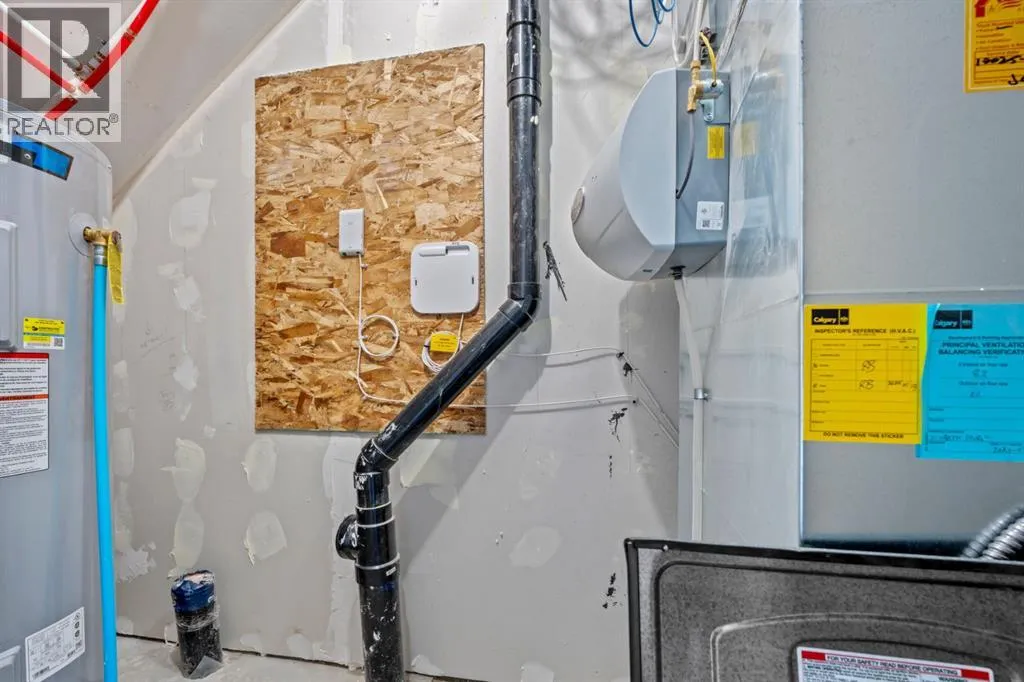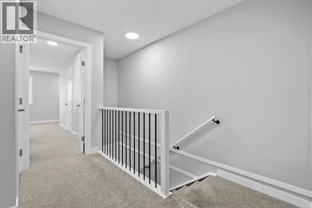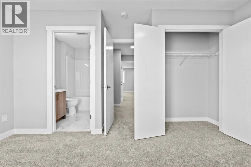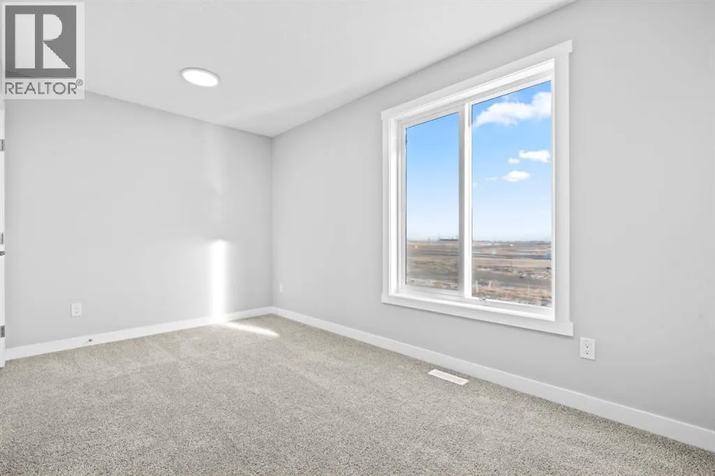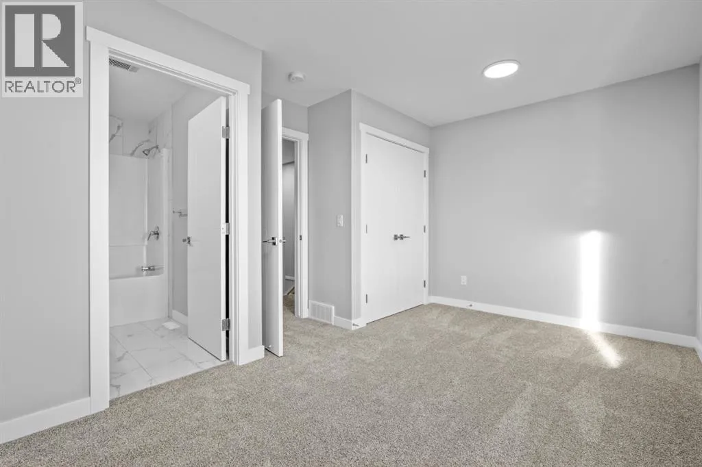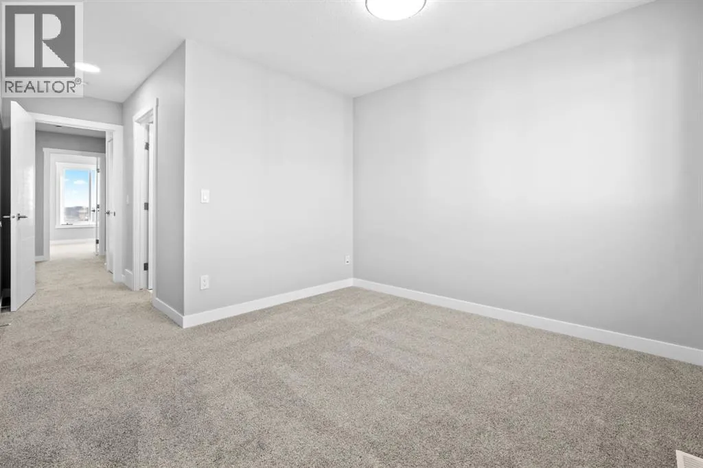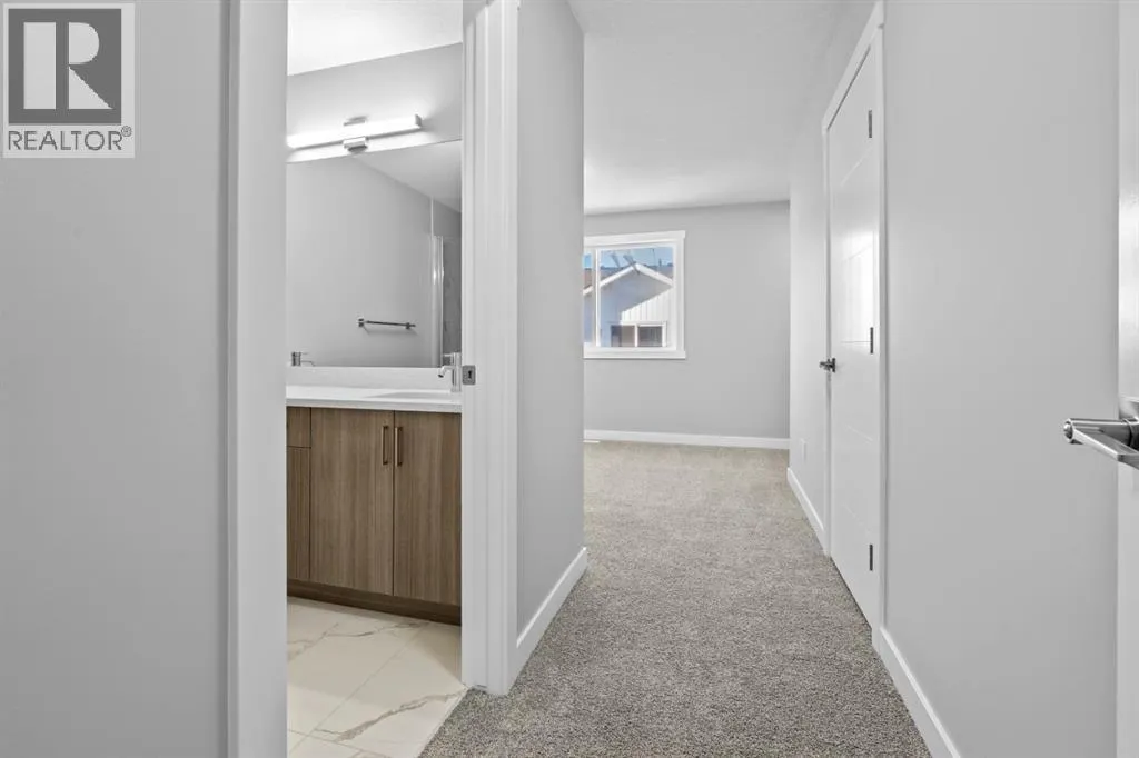This elegant modern 3-storey townhouse stands out with a thoughtful balance of privacy, smart use of space, featuring three generously sized bedroomsâeach with its own ensuite bathroom, making it an excellent fit for families, working professionals, or shared and multigenerational living.The ground level offers a welcoming foyer and a versatile bedroom complete with a private ensuite, ideal as a guest suite, home office, or quiet personal space. The main living level is filled with natural light and designed for everyday comfort and entertaining, showcasing an open-concept layout, oversized windows, and a contemporary kitchen outfitted with stainless steel appliances, modern lighting, and a practical breakfast counter. A convenient powder room and access to a private balcony complete this floor.The upper level features two spacious primary-style bedrooms, both with their own ensuites for added convenience. One of the suites includes a walk-in closet and double vanity, creating a comfortable retreat. A stacked laundry closet on the top floor adds everyday ease.Additional features include a single attached garage, low condo fees, visitor parking, and planned nearby green space. Located with quick access to Stoney Trail, this home offers effortless commuting and easy access to daily amenities. Stylish, functional, and move-in readyâthis townhome delivers comfort and flexibility in a highly accessible location. **Photos with furniture are virtually staged. (id:27476)