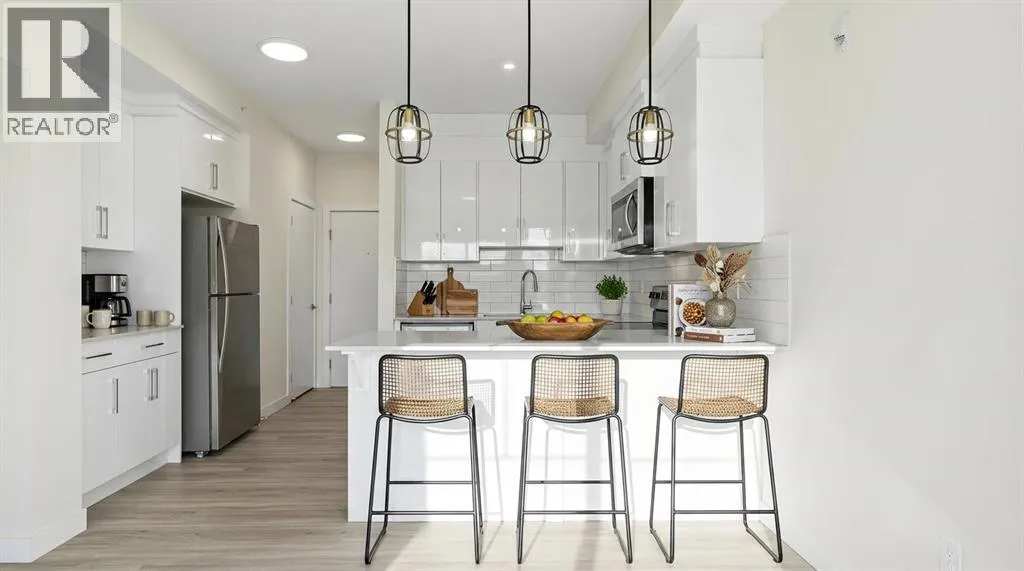 Welcome To This Brand-New, Move-In-Ready 2-Bedroom, 1-Bathroom Condo In The Vibrant And Fast-Growing Skyview Community Of NE Calgary. Thoughtfully Designed For Modern Living, This Bright And Airy Home Features 9-Foot Ceilings And Expansive Windows That Flood The Open-Concept Layout With Natural Light.Wide-Plank Luxury Vinyl Flooring And Quartz Countertops Throughout Create A Sleek, Contemporary Finish. The Fully Upgraded Kitchen Is Both Stylish And Highly Functional, Showcasing Stainless Steel Appliances, An Over-The-Range Microwave, Soft-Close Cabinetry, A Pantry, Quartz Countertops, And A Convenient Breakfast BarâPerfect For Casual Dining, Working From Home, Or Entertaining. The Kitchen Flows Seamlessly Into The Living And Dining Areas, Offering A Warm And Inviting Space To Relax Or Host Guests.This Unit Features Two Generously Sized Bedrooms And A Modern 4-Piece Bathroom With Quartz Countertops And Refined Finishes. Additional Highlights Include In-Suite Laundry, Upgraded Designer Window Treatments, And A Large Private Balcony With A BBQ Gas Line, Ideal For Summer Entertaining Or Enjoying Fresh Air And Open Views.The Home Is Complete With Titled Surface Parking, A Titled Storage Locker, And Secure Bike Racks, Providing Exceptional Convenience And Value. Located In A Newly Constructed Building, Residents Enjoy Low-Maintenance Living With Easy Access To Shopping, Schools, Public Transit, Major Amenities, Calgary International Airport, And Quick Connections To Stoney Trail For Effortless Commuting Throughout The City.Perfect For First-Time Buyers, Professionals, Or Investors, This Turnkey Condo Offers An Affordable Opportunity To Own In One Of Calgaryâs Most Desirable And Rapidly Growing Communities. Why Rent When You Can Own Your Own Home And Start Building Equity? Move In, Make It Yours, And Enjoy The Pride Of OwnershipâThis Is A Must-See Opportunity.Please Note: Property Taxes Have Not Yet Been Assessed. ***Vacant Property, Some Photos Are Virtually Sta ged To Show Potential Furniture Arrangement. Original Photos Of Empty Rooms Are Also Included.***Additional Units Are AvailableâContact Listing Agent For Details. (id:27476)