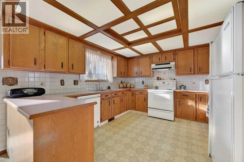 Unequivocally unlike anything in the area. Offering over 2,000 sq ft above grade plus an additional 1,500+ sq ft of developed basement space, this home was clearly designed and built ahead of its time. A south facing backyard features a large oversized double car garage and direct access to the walkout basement. Built to stand the test of time with a clay tile roof and brick exterior. Inside, every room is oversized and thoughtfully designed for large families and gatherings. Meticulously maintained and pristine, this is truly a turn key purchase.The bright main floor showcases gleaming hardwood floors and warm natural woodwork throughout. The spacious kitchen, offering abundant storage and counter space, anchors the entertainment area and flows seamlessly into the dining and living rooms. Unlike most homes of this era, there are three exceptionally large bedrooms, including the primary with ensuite.The walkout basement features a vast family/rec room with a fireplace feature wall, a large secondary kitchen offering endless possibilities, plus two additional bedrooms and a bathroom. The extra deep lot enhances the backyard oasis and allows for the impressive depth of the triple garage. Truly one of a kind for its vintage, this home offers exceptional flexibility and is ideal for large or multigenerational families. (id:27476)