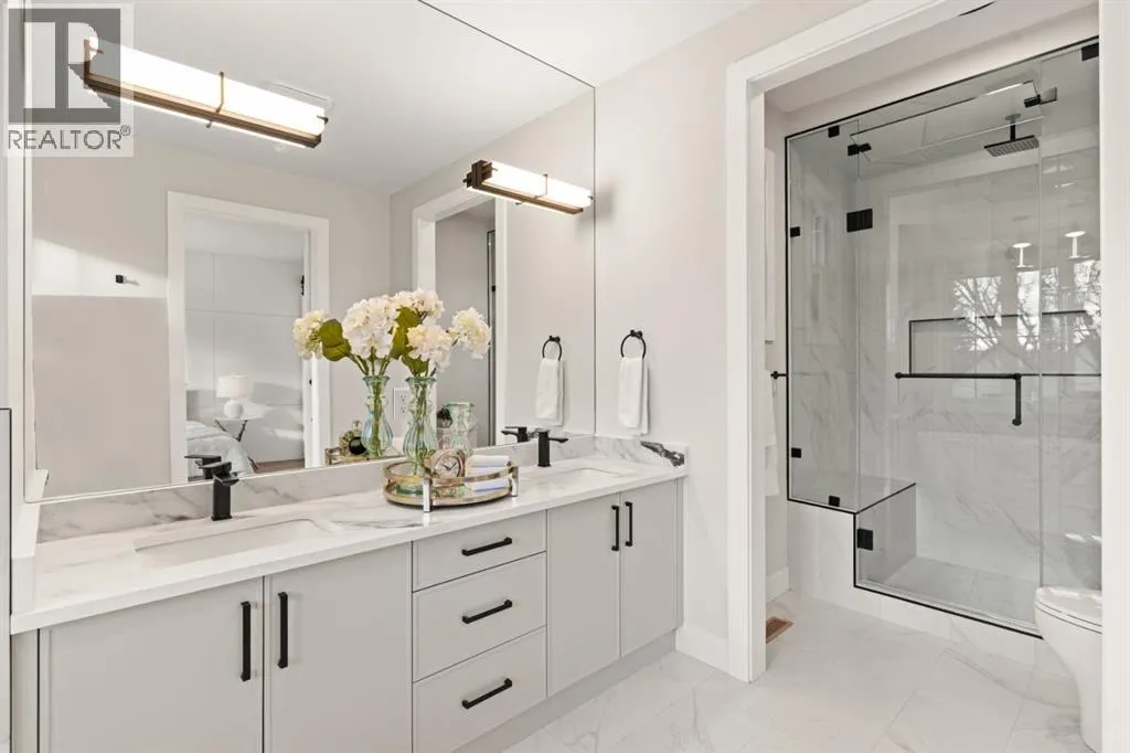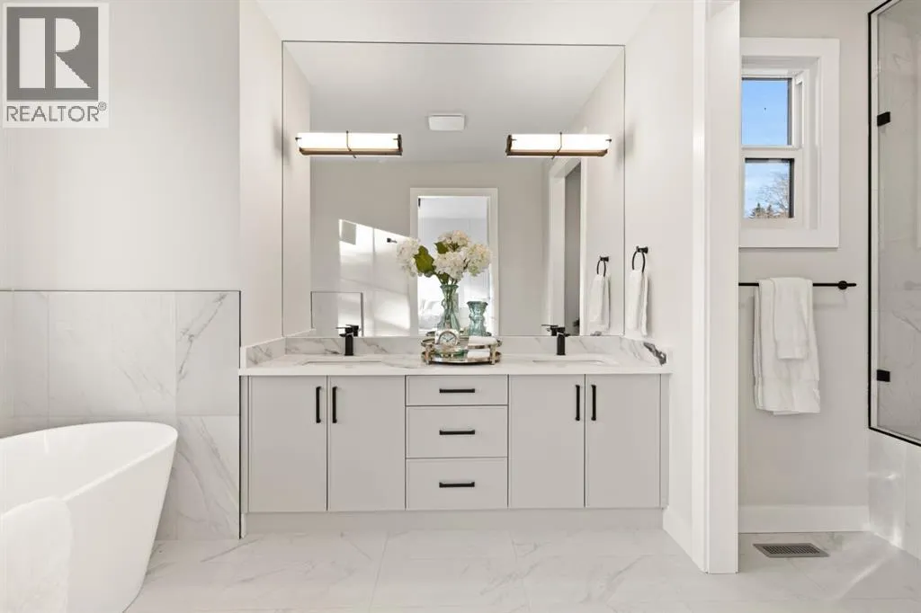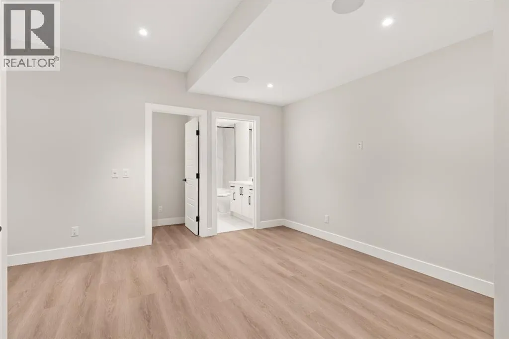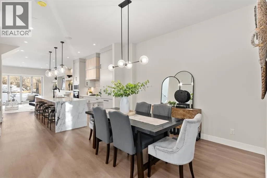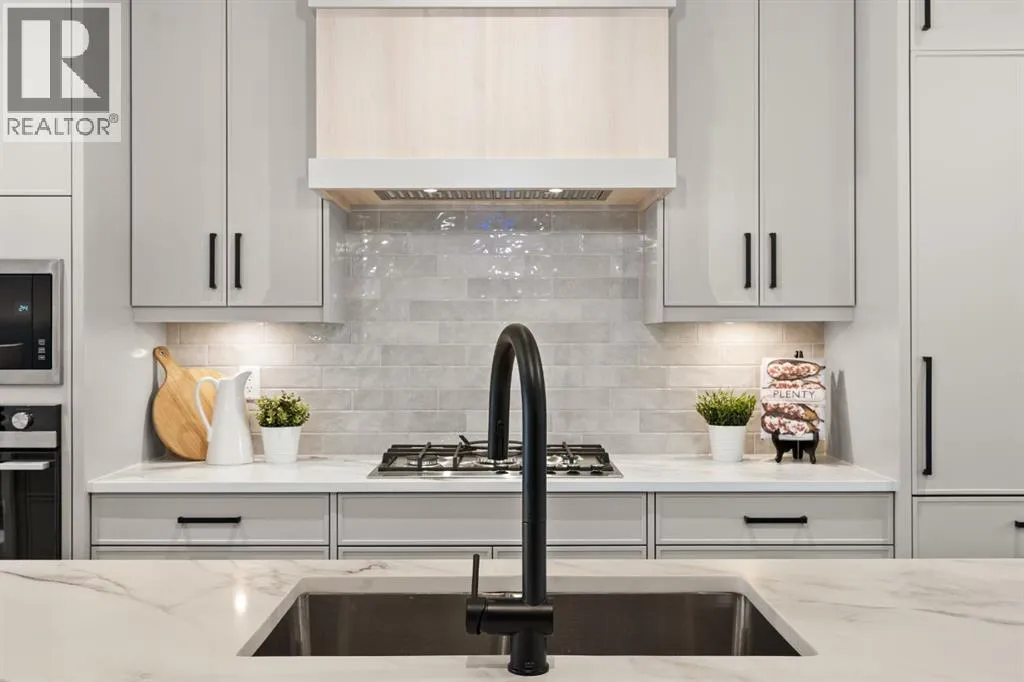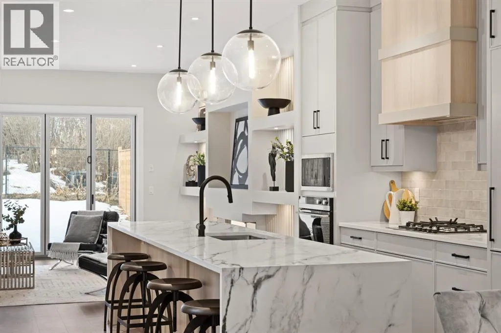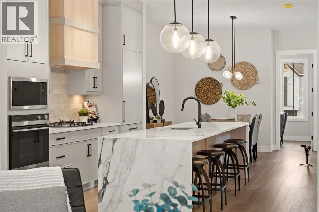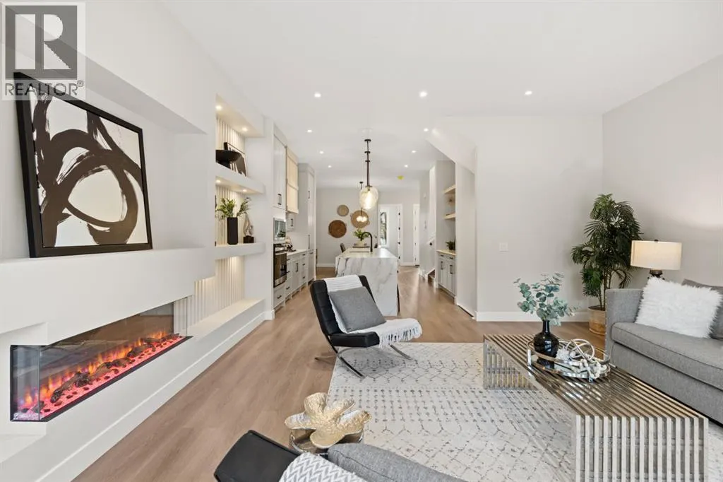 A rare offering in West Hillhurst, this brand-new semi-detached home features a highly sought-after front attached double garage and backs directly onto tranquil greenspace. Spanning over 2,200 square feet, the home offers four bedrooms and three and a half bathrooms with a layout designed for both luxury and functionality. The main floor is bright and thoughtfully designed, highlighted by a front-facing south-exposed office with oversized windows that flood the space with natural light, ideal for working from home. The open living and dining areas are anchored by a chef-inspired kitchen with premium appliances, custom cabinetry, and an oversized island, while folding patio doors off the living room seamlessly open to a large rear deck overlooking the greenspace, creating an exceptional indoor-outdoor living experience. Upstairs, the south-exposed primary retreat is filled with natural light and features a spa-like ensuite, walk-in closet, and a private balcony, while two additional bedrooms, a full bathroom, upper-level laundry, and a versatile loft space complete the second level. The fully developed lower level adds even more living space with a generous recreation room, fourth bedroom, and full bath. Ideally located steps from parks, river pathways, schools, and the vibrant amenities of Kensington, with quick access to downtown, the University of Calgary, SAIT, and Foothills Hospital, this home delivers a rare combination of luxury, light-filled design, and an exceptional inner-city lifestyle. Call today to book your tour! (id:27476)