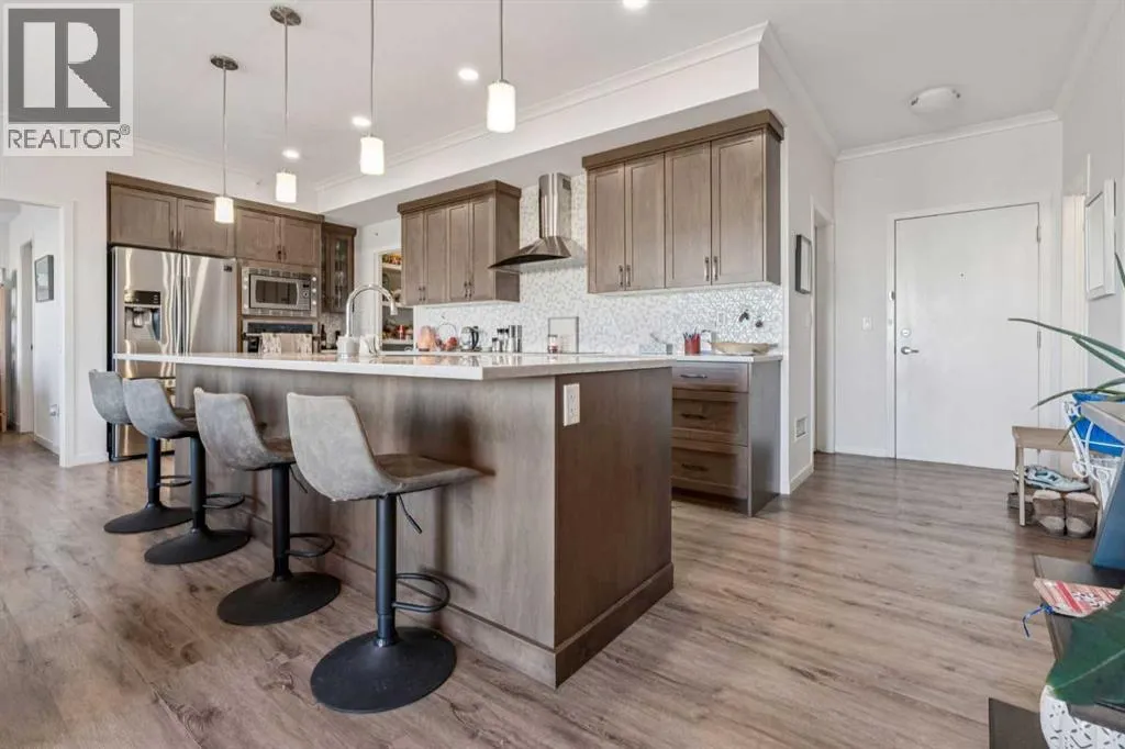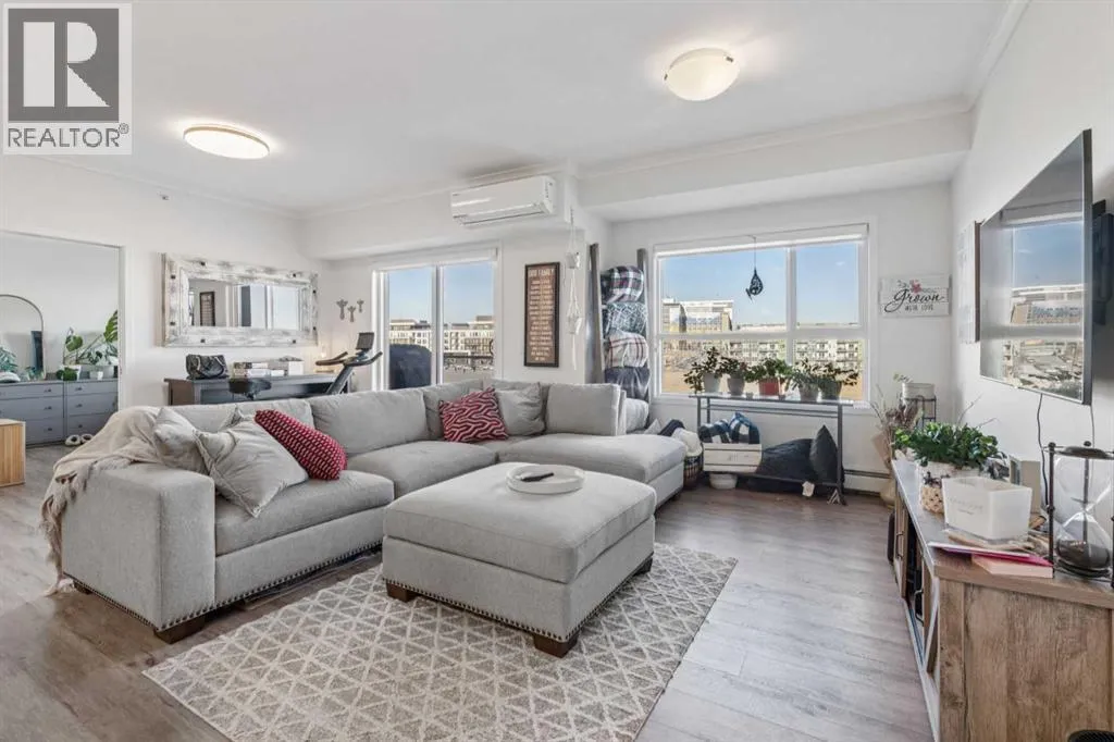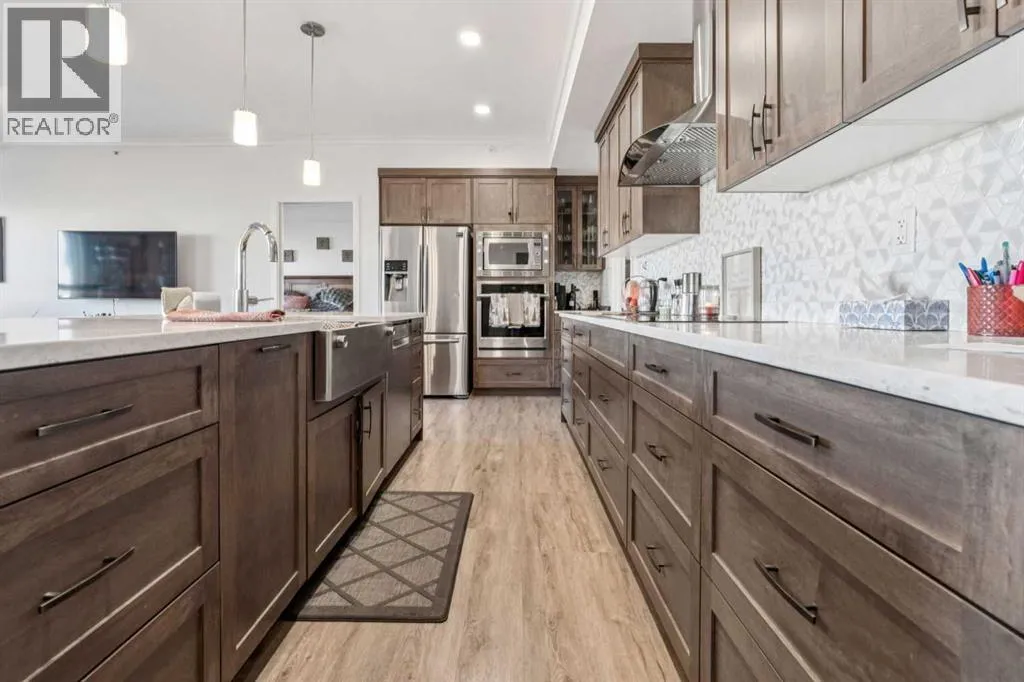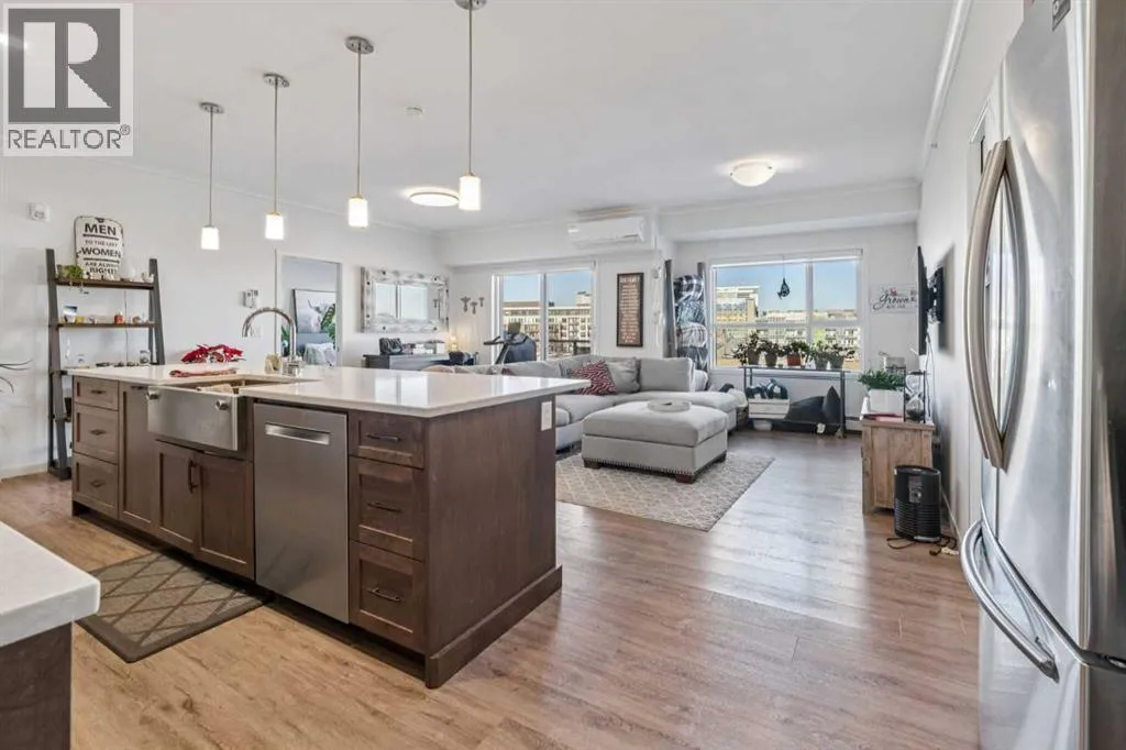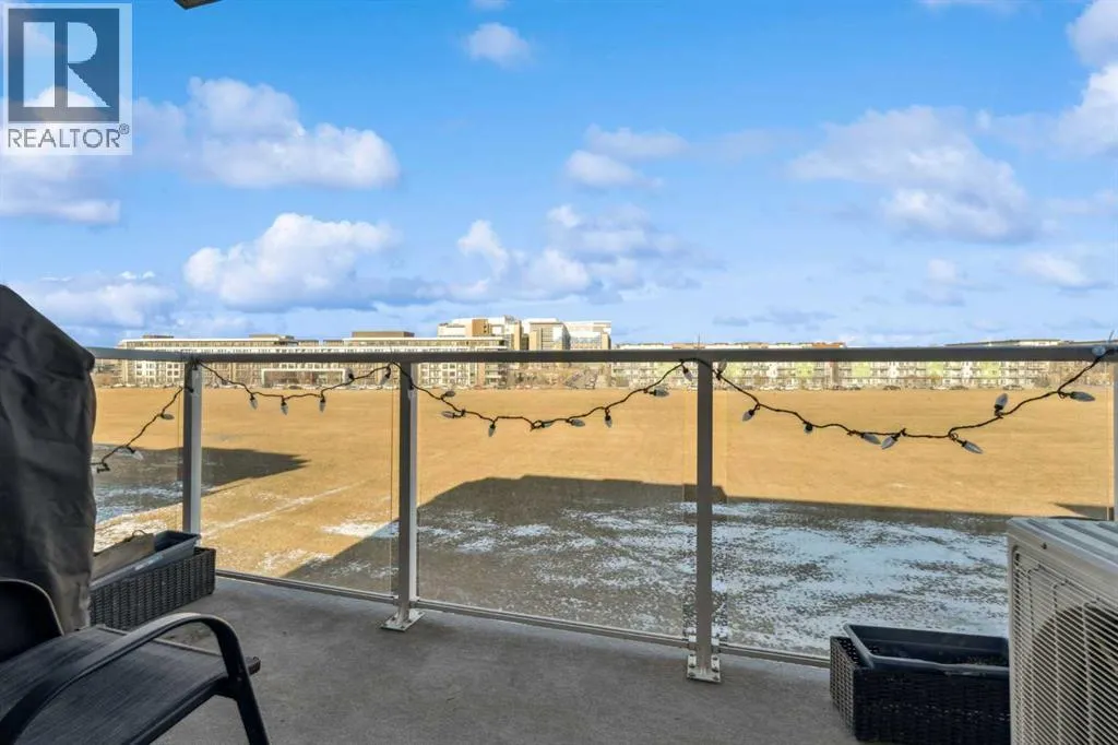 TOP-FLOOR LUXURY WITH BALCONY RETREATSDiscover elevated living in this top-floor CedarGlen Living Seton Park II condo. Nearly 1,200 sq. ft. with 3 bedrooms, 2 full baths, two inviting balconies, and air conditioningâperfect for relaxing and enjoying the surrounding green space.The chef-inspired kitchen features full-height cabinetry, quartz counters, upgraded stainless steel appliances, built-in oven & microwave, apron sink, sit-up island, and spacious pantry. Open-concept dining and living areas are bright and airy, with 9â ceilings, luxury vinyl plank flooring, and roller blinds.The primary retreat includes a walk-in closet, ensuite with dual sinks, quartz counters, walk-in shower, and heated toilet seat, plus private balcony access. Two additional bedrooms share a stylish 4-piece bath, and a large laundry room offers extra storage.Highlights: 2 titled underground parking stalls, leased storage locker, air conditioning, pet-friendly (board approval), low condo fees, no HOA fees. Steps from South Health Campus, YMCA, library, Gateway Retail, and future Seton Regional Park (2028).A rare opportunity to own a luxury top-floor home in Calgaryâs most vibrant urban community. (id:27476)