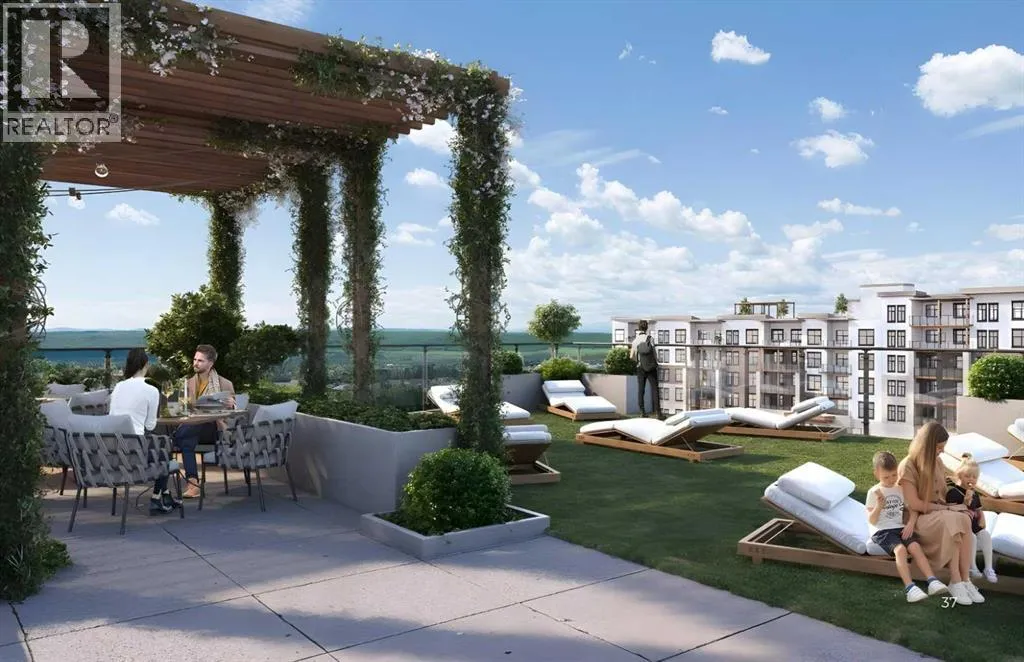 ROOFTOP PATIO ⢠STUNNING MOUNTAIN VIEWS. This pre-construction 2-bedroom, 1-bathroom condo offers a thoughtfully designed layout with approximately 607 sq. ft. of contemporary living space. Featuring 9+ ft. ceilings, sleek quartz countertops, and large windows, the home is bathed in natural light while capturing spectacular mountain views. Scheduled for Summer 2027 possession (or earlier), the unit includes titled underground parking, private storage, and access to a common-area car wash. Residents will enjoy an impressive rooftop patio complete with panoramic mountain views, BBQ stations, and a bonfire loungeâideal for entertaining or unwinding.The community is designed for convenience and lifestyle, offering a dog park, pet wash station, and an array of nearby restaurants and retail shops for everyday needs. Air conditioning is included as a limited-time incentive, and with ownership options starting from just 5% down (flexible payment plans available), this is an outstanding opportunity to secure a modern home or investment at todayâs prices. (id:27476)