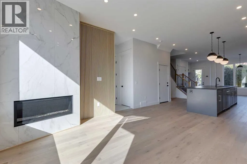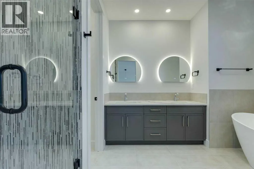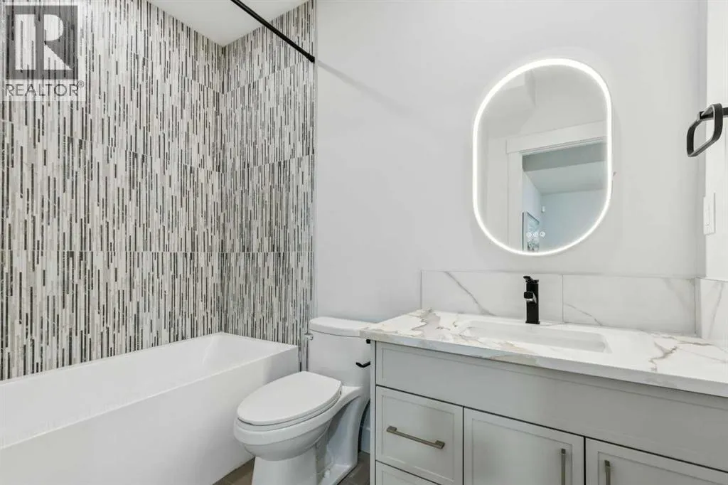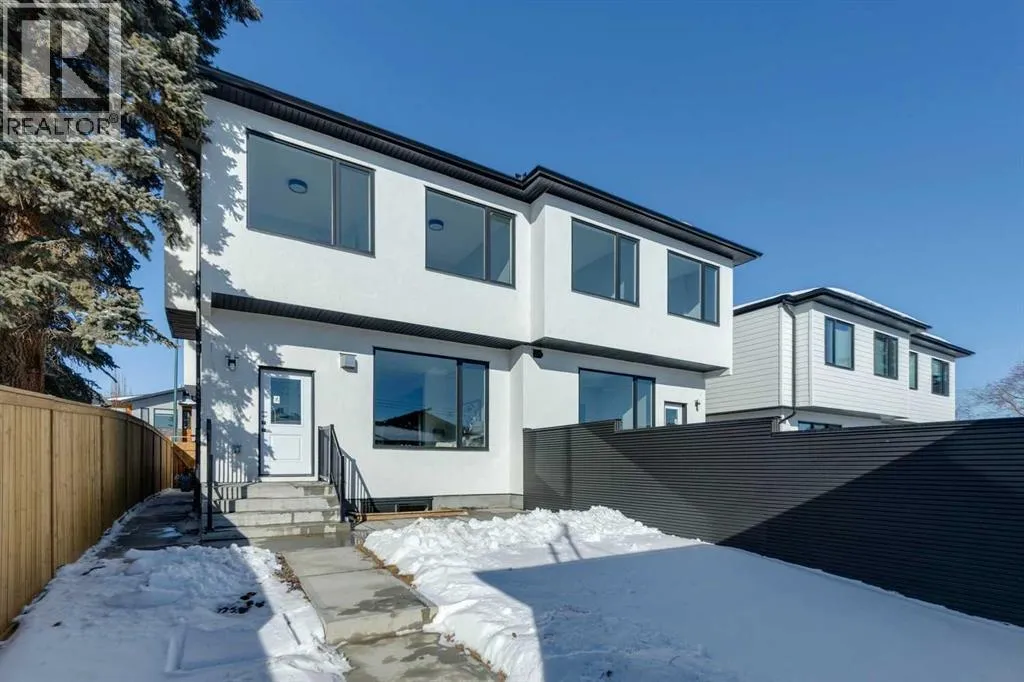 *** SEE THE VIRTUAL TOUR *** Welcome to this stunning brand-new side-by-side duplex located in the desirable community of Banff Trail. With its stylish mixture of Stucco and Hardie board exterior , a concrete walkway leading to the house, along with concrete stairs at both the front and back, a spacious concrete patio in the backyard and composite WPC fence between the two houses. For safe and easy access to the basement through side door, the side of the house is all concrete without any window well on the way. Step inside to find a welcoming foyer that opens into a large dining area. The modern kitchen is equipped with sleek cabinetry, stainless steel Bosch appliances, and a luxurious granite leather island and countertops. The large and spacious living area with a large window overlooking the sunny backyard. The main floor also includes a beautiful powder room and a convenient mudroom leading to the backyard. Upstairs, you'll discover a generously sized master bedroom complete with a walk-in closet and a stunning modern ensuite bathroom featuring a double vanity, standalone tub, tiled floors, quartz countertops, and a beautifully tiled shower. Additionally, the second floor hosts two other spacious bedrooms and a cozy loft, perfect for an office space or a play area for the kids. The laundry room is conveniently located upstairs, alongside the main bathroom, which also boasts a double vanity, tiled floors, and quartz countertops. Hardwood flooring graces the main floor and the hallway of the second floor and the master bedroom. The basement features a separate entrance leading to a legal suite with two bedrooms, a separate furnace, and LVP flooring throughout. This suite includes a full kitchen with quartz countertops and stainless steel appliances, as well as a complete laundry setup, making it an ideal income generator while you enjoy luxurious living upstairs. . In all vanities, LED mirrors are installed with 3 color temperatures selection (3000-4000 and 5000) , all dimmable to 10% of the normal light and anti fog functionality. Some of the ceiling lights such as master bedroom have 3 color temperature option. Additional highlights include a double detached garage, 10-foot ceilings on the main floor and 9-foot ceilings on the second floor and basement, two furnaces, a 75-gallon hot water tank, rough-ins for AC and central vacuum, soundproof insulation, soundbar and fire rated drywall on the basement ceiling and a soundbar in the party wall. (id:27476)