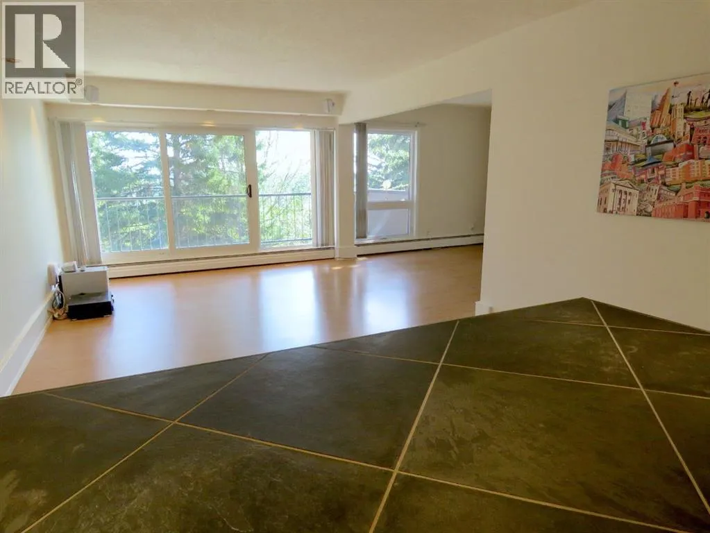 Very large fantastic balcony with a gorgeous view of Douglas fir Walking Trail, River Valley, nature, trees and privacy! CONCRETE BUILDING with CITY VIEWS! Where in Calgary can you buy an upgraded condo surrounded by green space backing onto Douglas Fir Trail with bike paths/walkways leading to the river, Edworthy Park and Shaganappi Golf Course, gorgeous valley, Bow River and downtown VIEWS, seclusion & privacy, and minutes to the LRT? THIS IS IT! Good sized entrance into the unit. The kitchen has been opened up. A wall of windows and patio doors leading out to the balcony and view. Loads of cabinets, granite tile countertops, lots of counter space and eating area with 4 bar stools. Newly installed, portable washing machine in kitchen can be conveniently stored in the storage area when not in use. Downstairs: common area laundry area with new washer and dryers, bathroom, gigantic assigned storage space for this unit! Entertainment area for ownerâs use, bike storage, exit to outdoors and one assigned parking stall with lots of street parking. Right across from the condo building is a very nice park and greenspace. Walk to the Community Centre, Westbrook mall with restaurants, 10 min walk to the Westbrook C-Train, Public Library and much more. The Board is very diligent and has done many upgrades to the building inside and out... Call today, vacant and EASY TO SHOW! (id:27476)