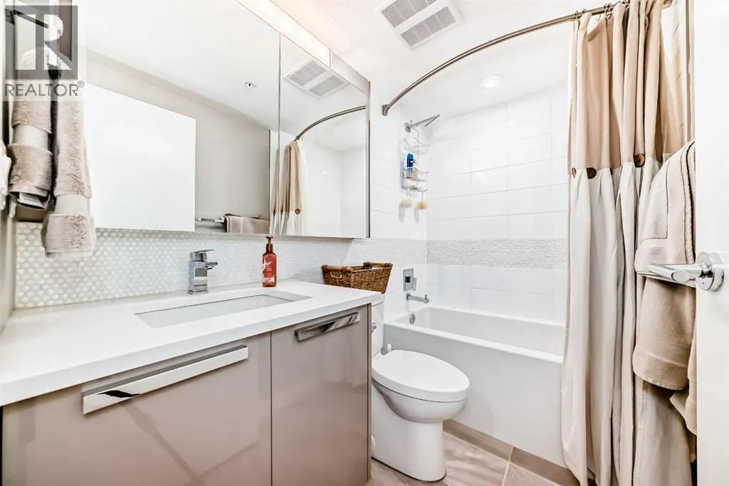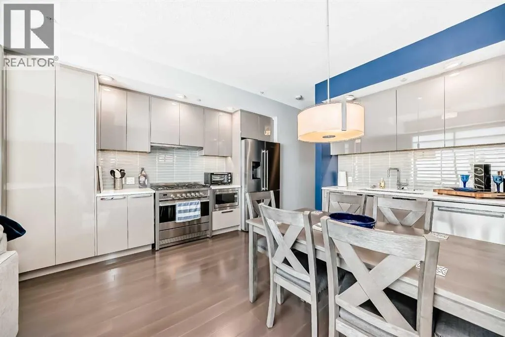 Welcome to a beautifully maintained, barely lived in multi-level townhouse in the heart of Hillhurst. This home is steps from Riley Park and a short walk into 10th street and the Bow River. A wondreful location! The main floor has a large living room with 10ft high ceilings along with large windows facing south. The kitchen is modern with quartz counter tops, SS appliances (gas range), with high end cabinetry. An office/den along with a 2 piece bathroom plus a 2nd door that leads to the lobby entrance. The upper level has stacked laundry, some built in cabinets at the top of the stairs and 2 large bedrooms each with their own bathrooms. The master bedroom is large, bright and faces south. The ensuite is a 5 piece with a standalone tub, a walk in shower, and dual sinks. There is a large walk in closet that fits plenty of clothes and shoes. The unit comes with an underground titled parking spot and an assigned storage unit. The complex comes with a plethora of amenities that includes a fitness room on the 2nd floor and a large games room/wine room on the 2nd floor as well. Bike storage in the parkade. This well located unit won't last long! (id:27476)