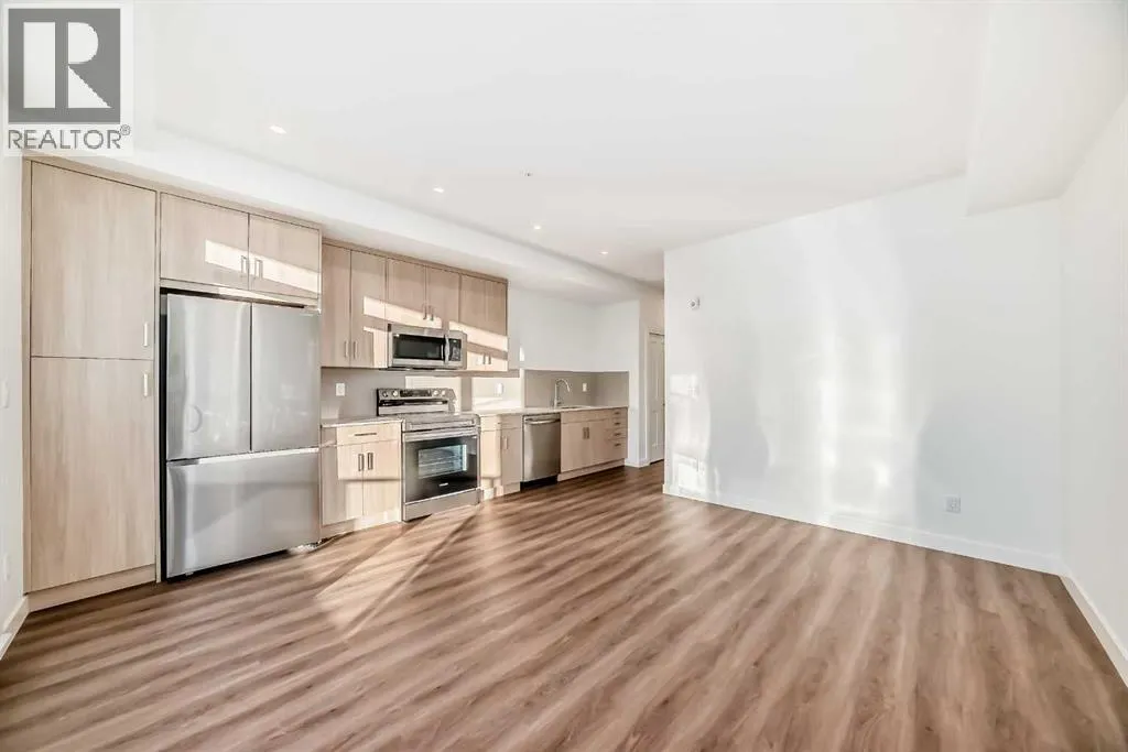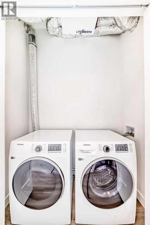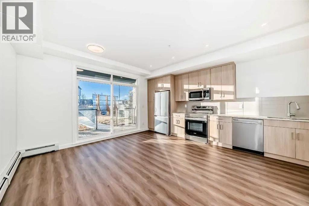 Welcome to the Carr 2 by Logel Homes, one of the builderâs most popular and competitively priced floor plans. This beautifully designed home showcases a modern exterior finished with premium fibre cement siding that is hail-resistant and sound-dampening for added durability and comfort.Inside, enjoy 9â knockdown ceilings, recessed lighting, and luxury vinyl plank flooring throughout the main living areas, complemented by plush carpeted bedroom. The thoughtfully designed kitchen features maple dovetail cabinetry with soft-close doors and drawers, quartz countertops, a classic subway tile backsplash, and stainless steel appliances, including a refrigerator, smooth-top self-cleaning range, and over-the-range microwave with built-in hood fan.Quartz countertops continue into the bathrooms, and a side-by-side in-suite washer and dryer add everyday convenience. This home also includes a titled surface parking stall and is backed by the Alberta New Home Warranty for peace of mind.Ideally located near South Health Campus Hospital, the YMCA, and a wide array of shopping and dining options, the Carr 2 offers modern style, thoughtful design, and exceptional value. Enjoy outdoor living on the west-facing patio with a natural gas BBQ hookupâperfect for evening sunsets (id:27476)