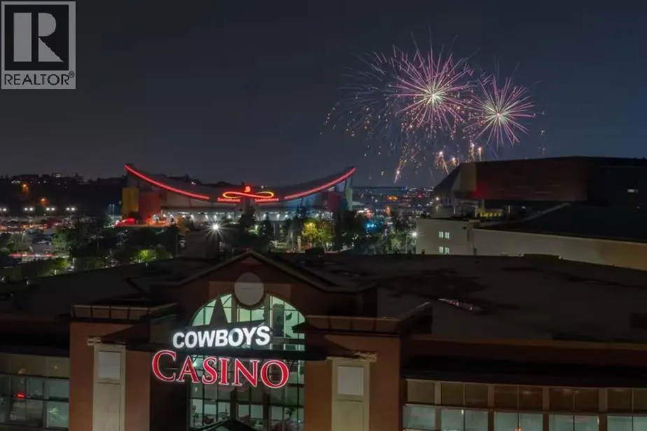 Welcome to the 7th floor of Calgaryâs tallest and most prestigious residential tower, where luxury living meets everyday convenience. This contemporary condo showcases breathtaking, unobstructed views from your expansive private balcony, the perfect vantage point to take in the downtown skyline or enjoy Stampede fireworks lighting up the city. Inside, the open concept layout is sleek, modern, and filled with natural light. This unit comes FULLY FURNISHED!, everything in the unit is included (utensils and cookware too)....just bring your tooth brush! The stylish kitchen is ideal for entertaining, featuring contemporary finishes, quality appliances, crisp white cabinetry, and a striking glass-style backsplash. Floor-to-ceiling windows in the living area create a bright and airy atmosphere and lead seamlessly to the spacious glass-panelled balcony, offering some of the best city views available. The unit also includes in-suite laundry, a well-appointed four-piece bathroom, and a generously sized bedroom complete with built-in closet drawers for added functionality and style. Residents enjoy access to an impressive selection of amenities, including a state-of-the-art fitness centre, a beautifully designed garden terrace with BBQ areas, an elegant social room for private events, a workshop, and the peace of mind provided by a 24/7 concierge service. Underground parking can be rented at a reasonable rate. Ideally located and surrounded by an incredible mix of trendy dining, shopping, entertainment, and recreation options, this home allows you to enjoy a vibrant urban lifestyle without the need to head into the downtown core. With reasonable monthly condo fees, this is an exceptional opportunity to experience upscale city living at its finest. (id:27476)