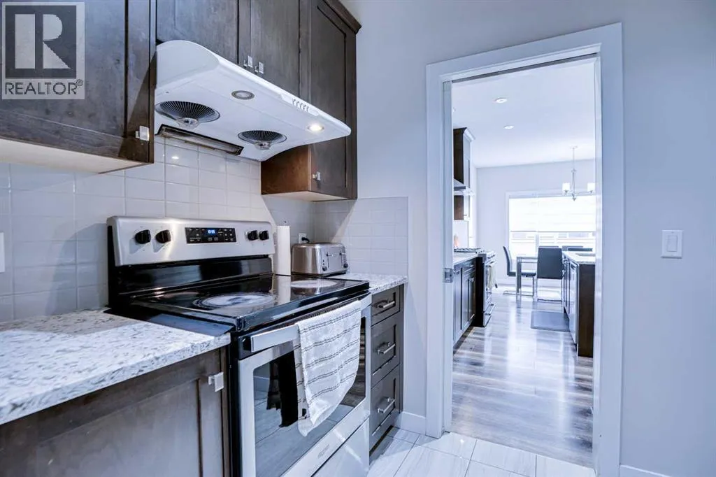 Step into exceptional space and style in this beautiful 3-storey family home featuring a 2-bedroom basement suite (illegal). Inside, youâll find a chefâs kitchen complete with a gas stove, spice kitchen, walk-through pantry, stainless steel appliances, granite countertops, and a striking herringbone backsplash. A formal dining area, high ceilings, recessed lighting, oversized windows, and a cozy gas fireplace come together within a bright open-concept layout thatâs perfect for everyday living and entertaining.The upper level offers four spacious bedrooms, including two primary suites, along with three full bathrooms and a conveniently placed laundry room. On the third floor, enjoy a large loft, an additional 2-piece bathroom, and sliding glass doors that open to a covered balconyâan ideal spot to unwind and enjoy fresh air.Downstairs, the 2-bedroom basement suite (illegal) includes a separate exterior entrance, 9-foot ceilings, an open living area, its own laundry, and extra storage. The basement kitchen features full-height cabinetry, quartz countertops, stainless steel appliances, and a double sink. Two generous bedrooms share a 3-piece bathroom with a walk-in shower, creating a comfortable and independent space.Outside, take advantage of a covered back deck, a fully fenced backyard with lawn, and a front concrete patio. Parking is made easy with a front attached garage and driveway. Located just steps from Saddlestone Park, this home offers an incredible settingâbook your showing today. (id:27476)