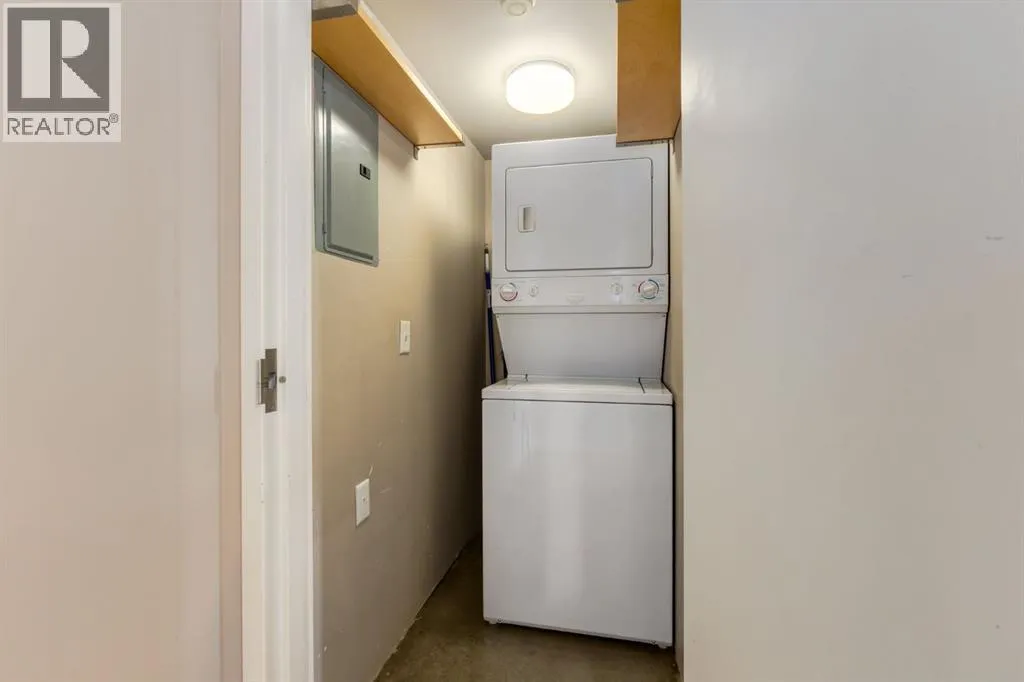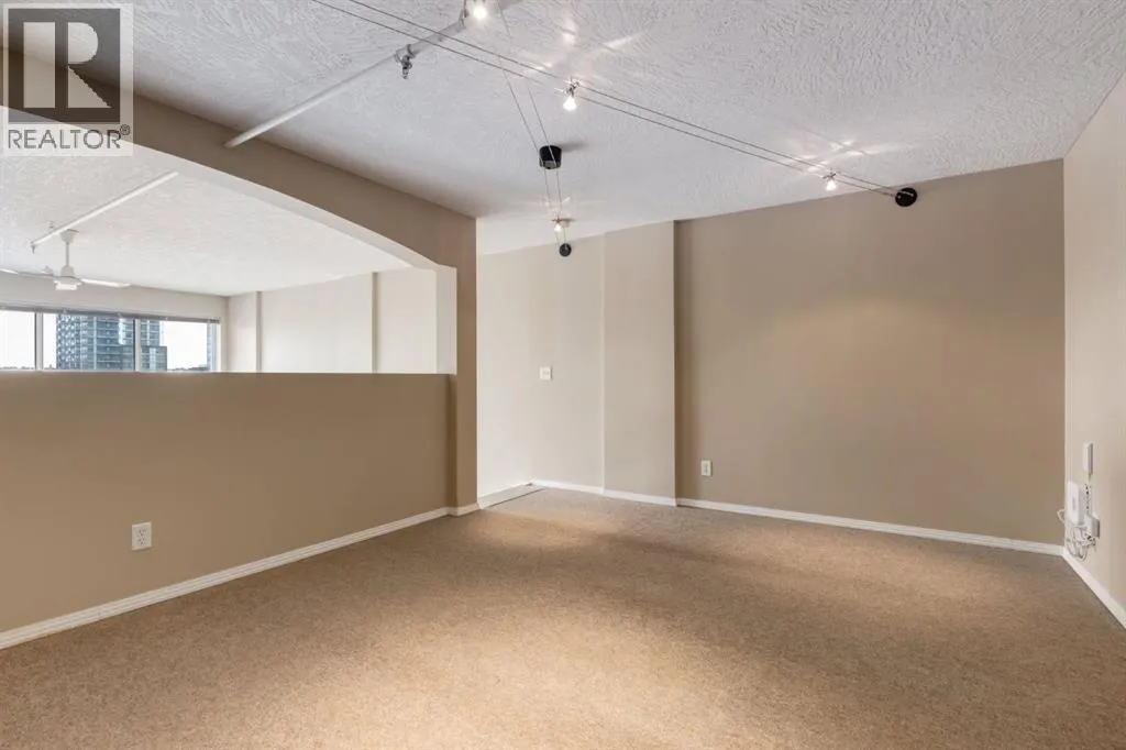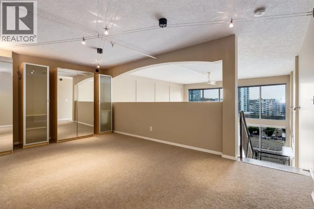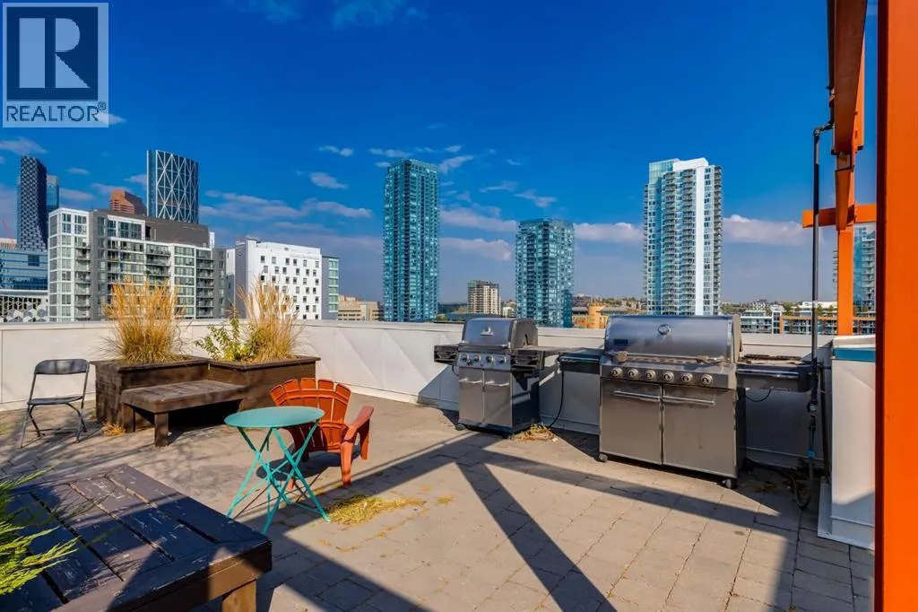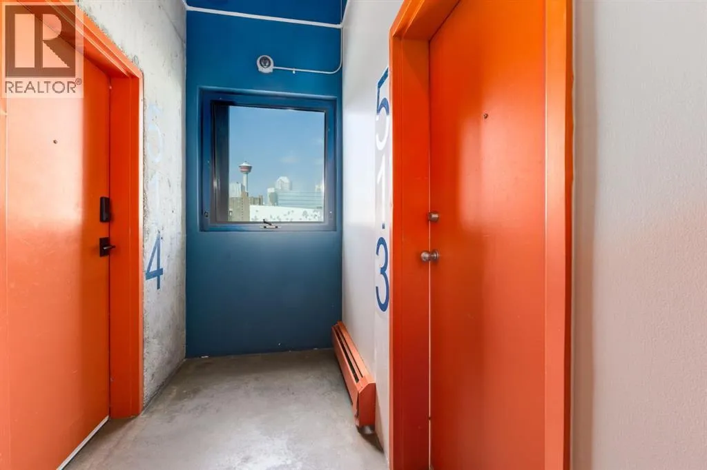 Why live in a typical condo when you can own a top-floor corner loft with 19'3" ceilings and 838 sq ft of wide open, light-filled space?.Welcome to Orange Lofts in the heart of East Village, Calgaryâs most walkable and architecturally distinct inner-city neighborhood. This one-bedroom, one-bath unit is a top-floor corner with no neighbors above and just one shared wall, giving you rare privacy in a buzzing urban setting..The north-facing windows fill the space with soft, ambient natural light all dayâperfect for working from home or relaxingâwithout the heat of direct sun. You'll enjoy panoramic views of East Village, the Bow River, and Calgaryâs skyline..Inside, you'll find polished concrete floors, exposed concrete walls, steel railings, and a lofted bedroom that overlooks the open living space. The layout is flexible, the design is timeless, and the vibe is unmistakably urban..?? Location Highlights (All within Walking Distance):.* RiverWalk Pathways + Bow River access* Studio Bell, Calgary Central Library, Confluence, and Simmons Building* Saddledome + the future event centre and entertainment district* C-Train station for fast downtown access* Local grocery stores, cafes, breweries, and restaurants* Calgary Zoo and St. Patrickâs Island nearby* Blocks from Inglewood and downtown core shopping.Extras include titled underground parking, separate storage, in-suite laundry, and access to a rooftop patio, bike storage, and resident lounge. Condo fees include heat, water, and electricity..This is not your average condo.?.Itâs open. Itâs private. Itâs steps from everything.?.And itâs one of a kind. (id:27476)