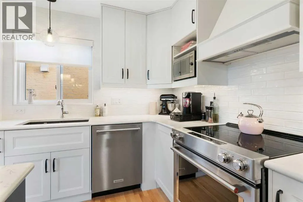 This beautifully updated +55 Walkout Bungalow Villa is a rare find in highly sought-after Strathcona Park, Horizon Village Strathconaâtucked into a quiet, private end-unit location, beautifully renovated, exceptionally bright and backing onto manicured lawns for a serene, low-maintenance lifestyle.The main level features refreshed hardwood, fresh paint, knock down ceilings on main, fixtures, new baseboards and interior doors, plus all new blinds and curtains throughout. The showpiece kitchen has been completely transformed with new cabinetry, a massive quartz island, updated appliances, and a smartly designed laundry closet with new stacking washer/dryer. Enjoy a bright, open, updated living room with dining space, and a cheerful kitchen breakfast nook.Outside, the new deck is impressively sized and offers a wonderful sense of privacy, overlooking the greenspaceâideal for relaxing, entertaining or growing flowers.Downstairs, the walkout level offers a spacious family room, a second bedroom, a 3-piece bath, massive storage, and access to a covered patioâideal for relaxing outdoors in any weather.Key updates include most windows replaced (excluding the primary bedroom), hot water tank (2025), and furnace (2014). Residents also enjoy a welcoming community with fantastic neighbours and an active social calendar, plus access to a two-level clubhouse with kitchen, recreation room, and banquet area.A must-see home in an unbeatable locationâbook your showing quickly. Villas in this complex rarely come available, especially with renovations this extensive. (id:27476)