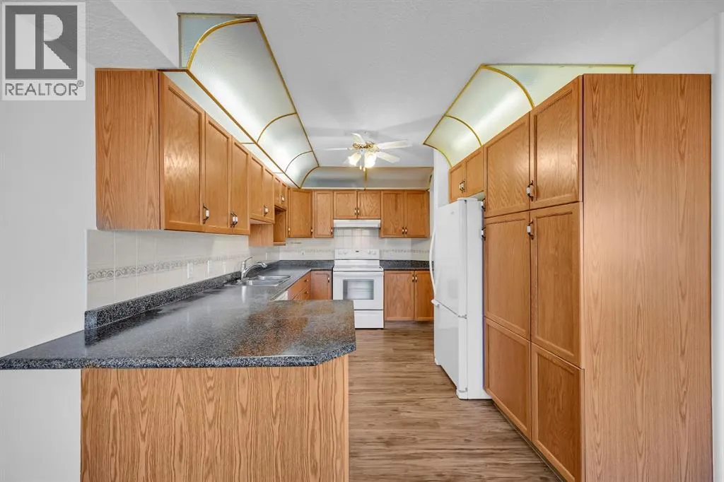 Welcome to Unit 311 at the Sierras of Richmond Hill, a well-maintained 55+ adult living community in Calgaryâs southwest.This spacious 2 bedroom, 2 bathroom condo offers 1,183.73 sq ft of thoughtfully designed living space with hardwood flooring throughout the main living areas. The open living and dining areas are bright and inviting, offering plenty of room for everyday living or entertaining, with access to a private balcony with additional storage.The kitchen connects seamlessly to the main living space, while bedroom one provides excellent flexibility as a bedroom, office, or den. The main bathroom is a 3-piece, and the primary bedroom features a walk-in closet and a 4-piece ensuite. Additional highlights include in-suite laundry, wall-mounted air conditioning, ample in-unit storage, one titled underground parking stall, and a separate storage locker.Condo fees include electricity, heat, water, sewer, recycling, trash removal, and all common area maintenance, offering excellent value and predictable monthly costs.Residents of the Sierras of Richmond Hill enjoy a vibrant, community-focused lifestyle with outstanding amenities, including a fitness centre, large social/party room with kitchen, games room, craft room, workshop, coffee room, library, post office, car wash bay, and four guest suites available for visiting family and friends.Ideally located close to shopping, dining, and services at Westhills Shopping Centre and Signal Hill Centre, with easy access to Stoney Trail and transit.A fantastic opportunity for comfortable, low-maintenance living in a welcoming and well-established adult community. Call to book your private showing today! (id:27476)
