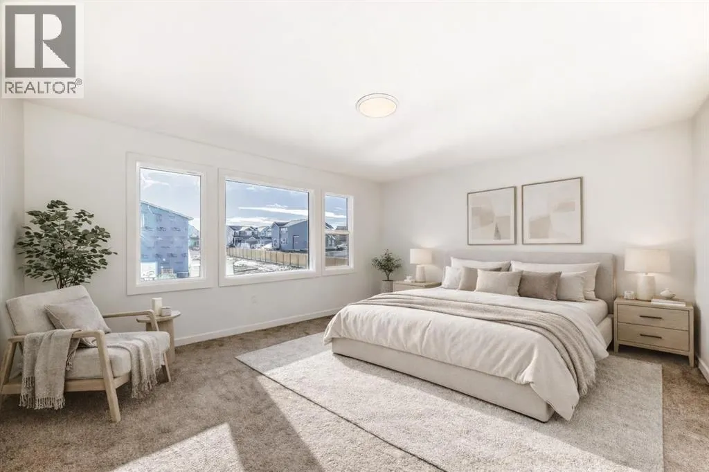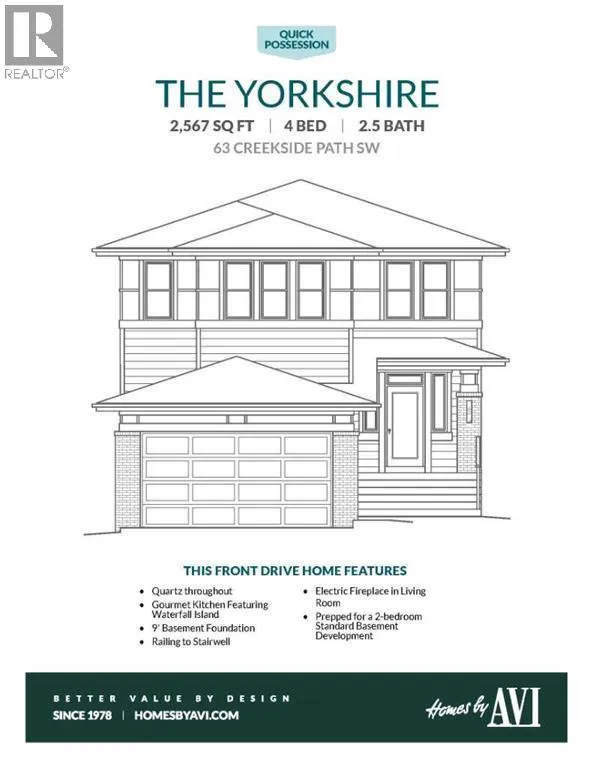 THIS IS THE FLOOR PLAN YOU CHOOSE â The Yorkshire at 63 Creekside Path is wide, deliberate, and refreshingly different. On the main floor, the kitchen is built for use - The WATERFALL QUARTZ ISLAND earns its place as the command centre, backed by FULL-HEIGHT CABINETRY and DUAL PANTRY CABINETS that keep counters clear without trying. A 5-BURNER GAS COOKTOP and CHIMNEY HOOD handle real cooking, while the integrated wall oven and microwave stack keep the space clean and intuitive. The upgraded 3 PANEL PATIO DOOR pulls light across the dining area and makes the deck feel like part of everyday life, not a seasonal accessory. The main floor layout offers that open concept vibe that brings in natural light and ambience, while the configuration still offers plenty of space for each area to have its own unique zone. Function and style become the top priorities with a spacious front entry, a pantry & mudroom walkthrough to the garage, and everything you need in the right place. Upstairs gets the layout right. FOUR BEDROOMS cluster around a CENTRAL BONUS ROOM that works as a true hub. The primary bedroom is positioned as its own zoneâconnected, but clearly protected, with an ensuite that finishes things properly: soaker tub under the window, dual sinks for peaceful mornings, and an upgraded tiled shower with bench that feels intentional. Three well proportioned secondary bedrooms keep the floor flexible for kids, guests, or work from home needs, and the upper laundry with cabinetry and sink - removes one more daily negotiation from the routine.And then thereâs the garageâthe rare win. A 3 CAR TANDEM layout with extra length finally settles the parking versus storage argument. Vehicles, bikes, bins, tools⦠it all fits without creative gymnastics.Set in Sirocco at Pine Creek, with PATHWAYS through the coulees, the GOLF COURSE NEARBY, this is a community thatâs settling inâwhile access to Macleod, Stoney, and 22X keeps the city within easy reach.This isnât about more ho use. Itâs about a house that finally keeps up.Book a showingâyouâll be glad you saw this one in person. (id:27476)