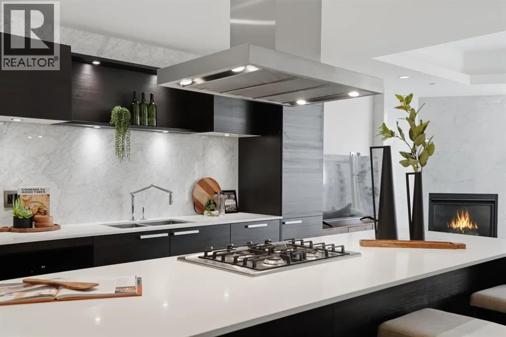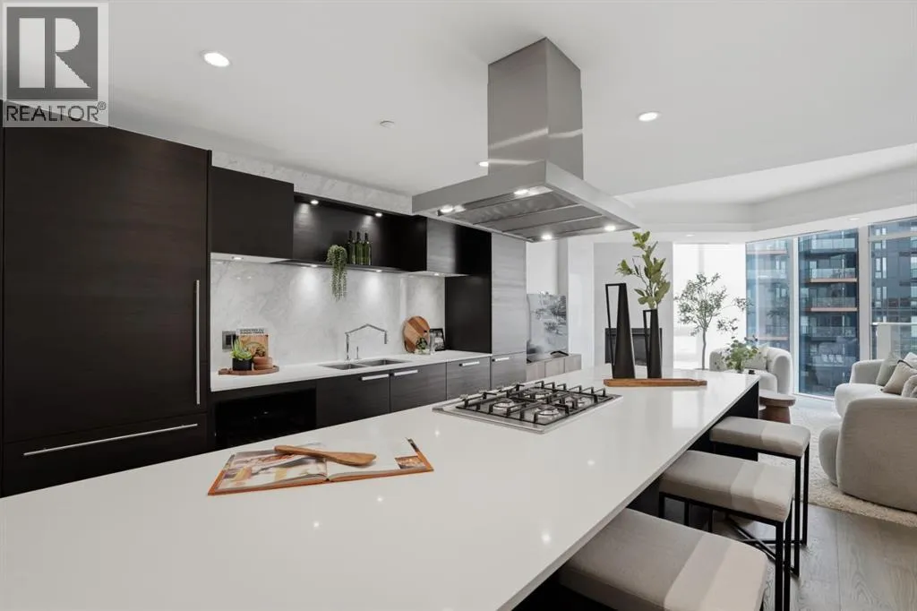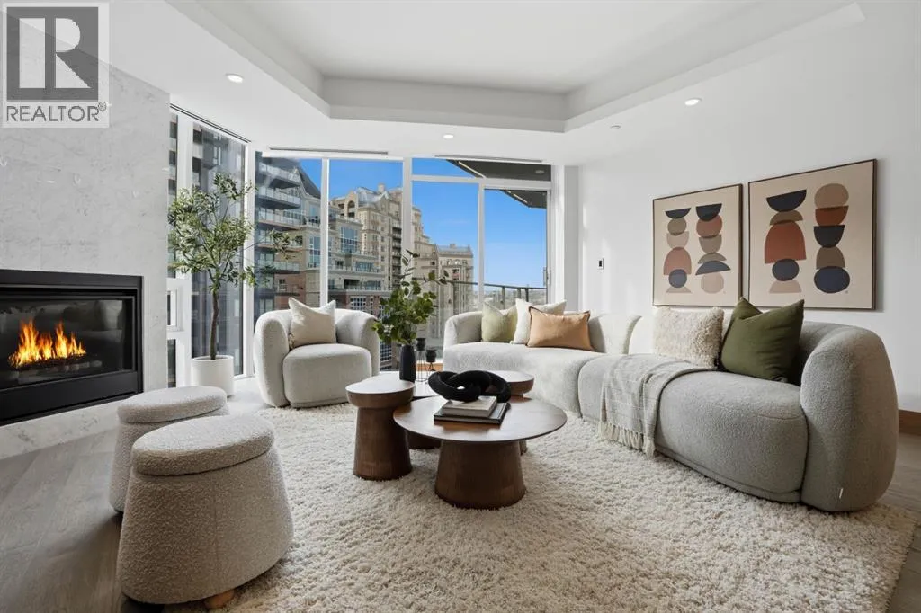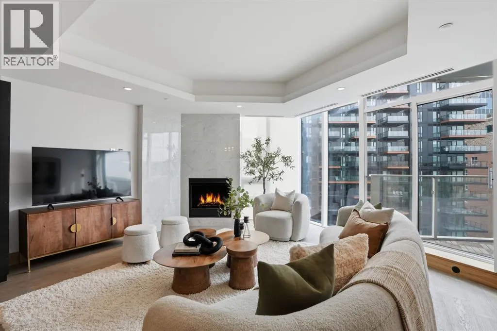 WELCOME TO THE CONCORD - Calgary's most prestigious riverfront residence! Experience unparalleled luxury living in this architectural icon. A private elevator leads you up to your exquisite home, designed with the finest finishes. Enjoy breathtaking Bow River views from floor-to-ceiling windows of Living and each of the Bedrooms. The crafted interior boasts engineered hardwood flooring, a full-height BIANCO STATUARIO marble fireplace, a German POGGENPOHL Kitchen and Miele appliances package. A bright glass door open den is ideal for a home office or a home library. Unwinded in your primary suite boasts a custom walk-in closet, and a 5-piece spa-inspired ensuite, complete with dual sinks, a deep soaker air-jet tub, a separate shower, and heated marble floor. The 2nd bedroom with balcony access has floor-to-ceiling marble 4-piece bath. Additional features include in-suite laundry, 2 titled parking stalls and a titled storage locker. World-Class amenities include: 24-hour Concierge, Fitness Centre, Private Lounge, outdoor water garden, outdoor Kitchen with BBQ, and an automated touch-less car wash! Future amenities include a Resort-style swimming pool and a high-tech golf simulator. CALL TODAY TO SCHEDULE YOUR PRIVATE VIEWING to make this your home! (id:27476)
