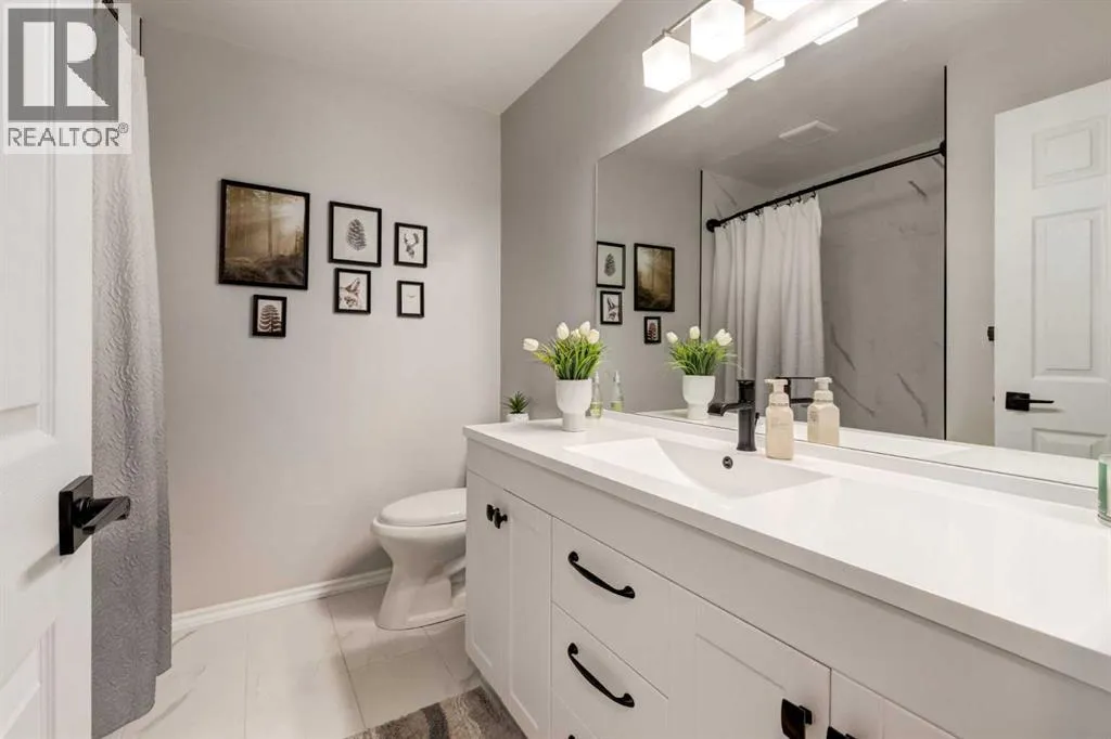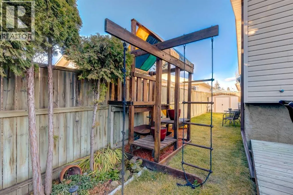 A large portion of this home was renovated in 2023, and itâs a genuinely functional family home in a location thatâs hard to beat. Youâre minutes to Fish Creek Park, Safeway, Costco, and thereâs a daycare just down the street. Add rare RV parking, an EV charger, and an oversized garage, and youâve got everyday practicality covered. The real highlight is the backyard. With two oversized outdoor spaces, a large upper deck and a separate patio, you get multiple zones for entertaining, kids playing, or quiet evenings outside. Thereâs also tons of green space, mature trees, and a fully fenced, south facing yard that stays bright and usable all day. Inside, vaulted living room ceilings and big windows bring in great natural light, with a stone surround fireplace anchoring the space. The kitchen features quartz countertops, stainless steel appliances, ample cabinetry, and an eating nook that opens to the deck for easy indoor outdoor flow. Upstairs youâll find three bedrooms, all a great size for kids and guests. The basement is developed and adds even more flexibility with a fourth bedroom and a large entertainment room, complete with a 110 inch screen and 4K projector (available by separate agreement). The basement also has a roughed in bathroom, offering an opportunity to add a finished bath. (id:27476)