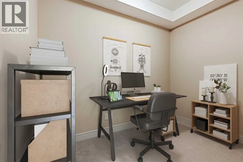 Welcome to a lifestyle upgrade in Sanderson Ridge: a premier 40+ resort-style community in Evergreen. This 1-bedroom plus den condo offers 854 sq ft of bright, open-concept living on the second floor with sunny south exposure and 9' ceilings throughout. Just steps from the front entrance and around the corner from the elevator, the location is as convenient as it gets.The spacious kitchen features granite countertops, a corner pantry, and ample cabinet space. Open to a cozy great room with an electric fireplace and direct access to the covered south-facing balcony, complete with a gas line for BBQs. Enjoy central air conditioning indoors or soak up the sun outside. The large primary bedroom is complemented by a 4-piece bathroom, a spacious flexible den space, in-suite laundry, and extra storage.Your titled heated underground parking stall (P2-66) includes a secure, closed-in storage room. Hosting guests? A rentable guest suite (#1241) is just two doors away.The amenity list here is unmatched: an indoor pool, hot tub, steam room, full gym, two bowling alleys, a movie theatre, games and recreation rooms, a car wash bay, wine-making room, workshop, library, billiards, crafts room, and the spectacular Sanderson Roomâavailable for private events or weekly social hours. The building is professionally managed with a full-time on-site team and four elevators for ease of access. Condo fees include all utilities.Enjoy miles of trails in nearby Fish Creek Park and quick access to everyday needs, including TAZA Exchange, Costco, shopping, and dining. Commuting is easy with direct access to Stoney Trail just minutes away. (id:27476)