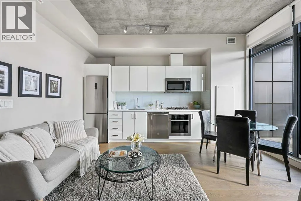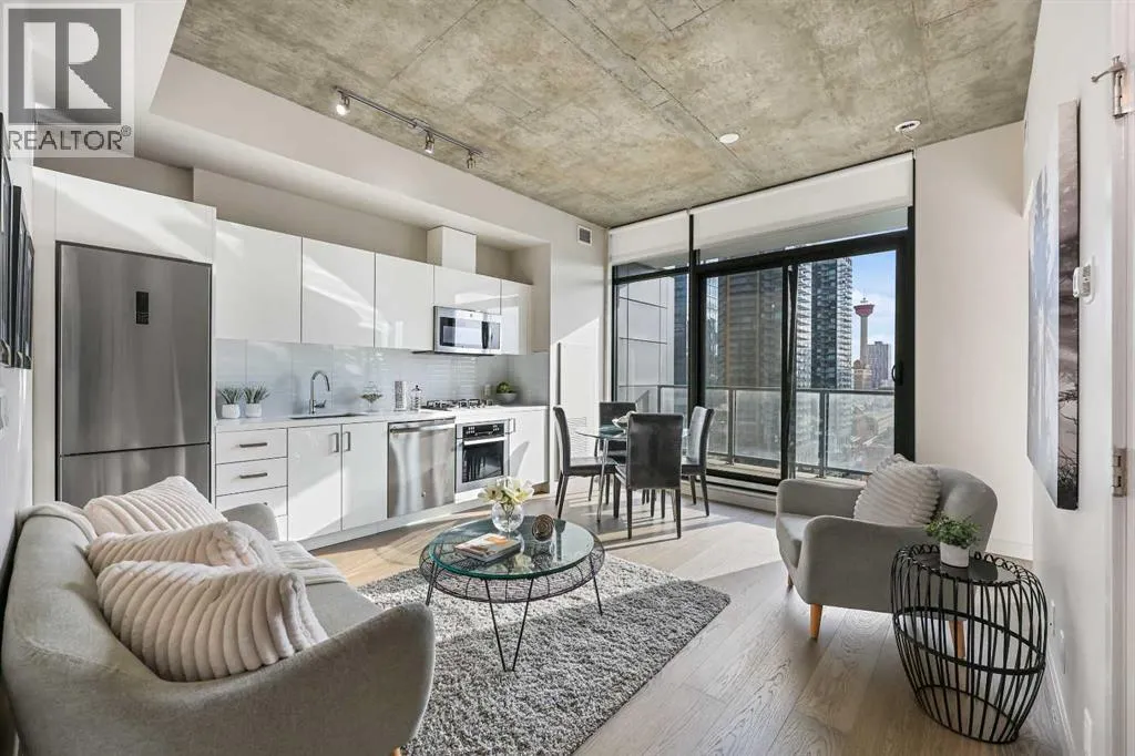 Discover the ultimate in urban living at Calgary's 6th and Tenth, ideally located in the heart of the vibrant Beltline district. This striking high-rise combines sleek, modern design with an unbeatable location, making it an exceptional opportunity for both homeowners and investors. With Calgaryâs condo market experiencing an impressive 18% year-over-year growthâand no land transfer taxâthis property offers a compelling value proposition. Unit 1207 is a thoughtfully designed 415 sq ft one-bedroom, one-bathroom condo situated on the 9th floor. Its east-facing orientation captures breathtaking views of the iconic Calgary Tower and the downtown skyline. Floor-to-ceiling windows fill the space with natural light, creating a warm and inviting atmosphere throughout the home. The interior showcases a modern-industrial aesthetic, featuring exposed 9-foot concrete ceilings and walls that add a distinctive edge to its contemporary style. Despite its compact size, the unit is remarkably functional, with every square foot optimized for comfort and usability. Central air conditioning ensures year-round climate control, adding to the overall sense of ease and livability. Residents of 6th and Tenth enjoy access to a suite of premium amenities, including a state-of-the-art fitness center, an expansive outdoor terrace with a swimming pool, and a stylish shared kitchen and party roomâperfect for entertaining or relaxing with friends. Whether youâre searching for a chic urban residence or a smart investment property, Unit 607 delivers exceptional value in one of Calgaryâs most desirable neighborhoods. Donât miss your chance to own a piece of this dynamic and fast-growing urban landscape. Contact your real estate professional today to learn more about this remarkable opportunity. (id:27476)