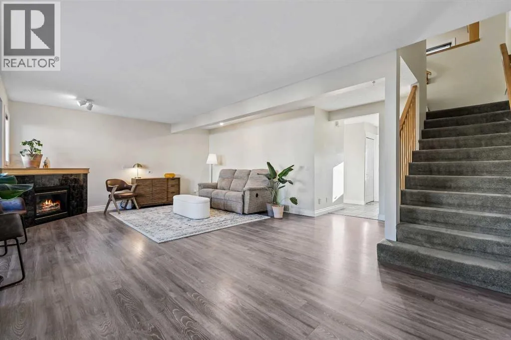 Spacious and great for a young family, young professionals, or someone looking to downsize. Welcome to your bright, contemporary retreat in the heart of highly sought-after Killarney. This 2-storey townhome is designed for the lifestyle of todayâs busy professional, offering a blend of modern elegance and everyday comfort, in a great inner city location. Step inside and youâre welcomed by a nice foyer and closet for your everyday items. Head up to the main level and you are greeted by an airy, light-filled living room. Oversized windows flood the open-concept living and dining area with natural light, while a sleek corner gas fireplace sets the mood for cozy evenings or to kick up some heat. The upgraded kitchen features quality maple cabinetry and stainless-steel appliances, ideal for everything from quick weekday meals to hosting dinner with friends. Your private west-facing 23' x 6' deck extends the living space outdoor - perfect for sunset cocktails or a quiet morning coffee. The convenience of main-floor laundry and a two-piece bath makes day-to-day living easy. Upstairs, the primary bedroom is a nice private retreat with a spa-inspired cheater ensuite, complete with a corner soaker tub and separate steam shower. A massive walk-in closet keeps everything organized. The second bedroom is of good size. A versatile den rounds out the upstairs, outfitted with built-in maple cabinetry, offer the flexibility to create a dedicated home office, guest space, or even a future third bedroom as your needs grow. The fully finished double garage with driveway provides rare inner-city secure 2 indoor garage parking spots, with 2 spots on the driveway, for a total of 4 parking spots! Great for you and your friendâs convenience, no having to walk from the visitor parking! With major shopping, trendy cafes, and downtown Calgary just minutes away, this home puts you right where you want to be - close to work, play, and everything in between. Meticulously maintained and thoughtfu lly designed, this Killarney townhome is the perfect match for someone ready to embrace the quiet inner city urban lifestyle without compromising on space, style, or location. (id:27476)