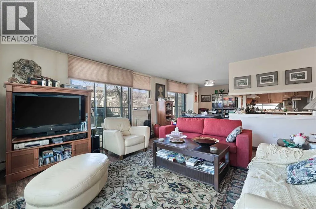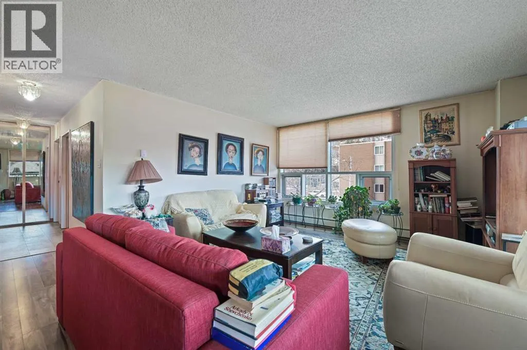 In need of some tender love and care. Bring your vision and make this unbeatable location your own! This spacious 2 bedroom, 2 bathroom condo offers the ultimate urban lifestyle in one of Calgaryâs most vibrant downtown communities. Enjoy two private balconies â including one directly off the primary bedroom â perfect for morning coffee or quiet evenings. The functional layout includes a built-in A/C unit, in-suite washer and dryer, and heated underground parking. Additional highlights include access to 9 visitor parking spots, a stylish social room, common area patio, and a welcoming lobby with updated common spaces. Hampton Court is a well-managed building that has seen numerous recent upgrades, including new boilers, fire alarm and ventilation systems, resealed balconies, and security cameras. Located steps from shops, restaurants, river pathways, and downtown â this is an unbeatable location for walkable inner-city living. (id:27476)