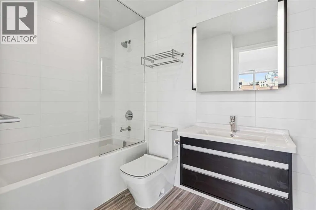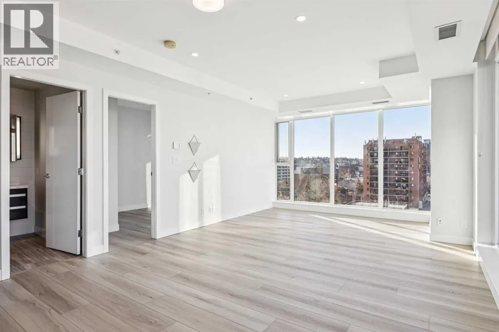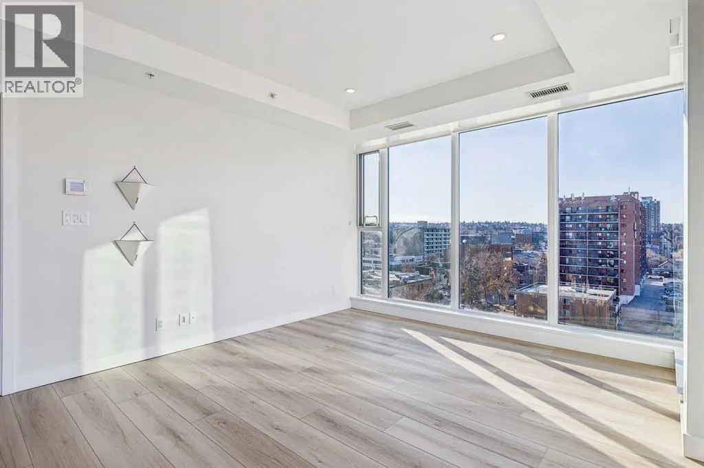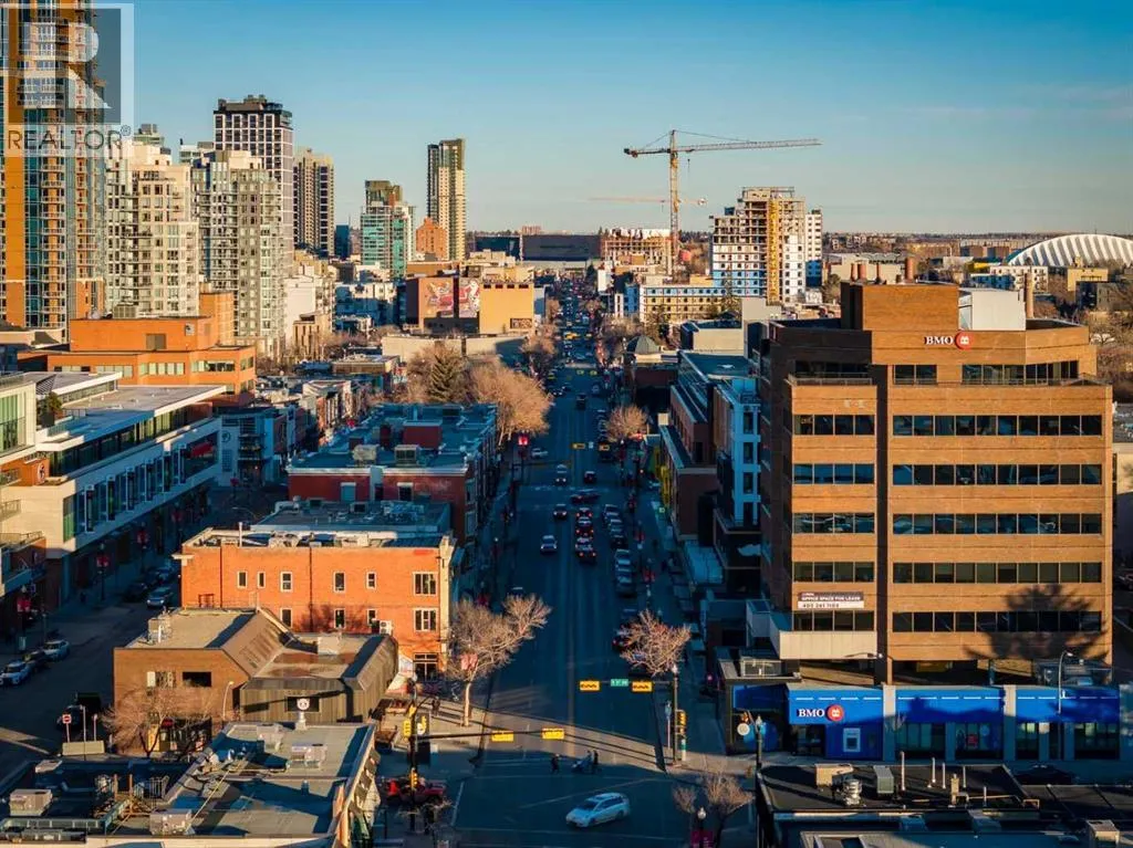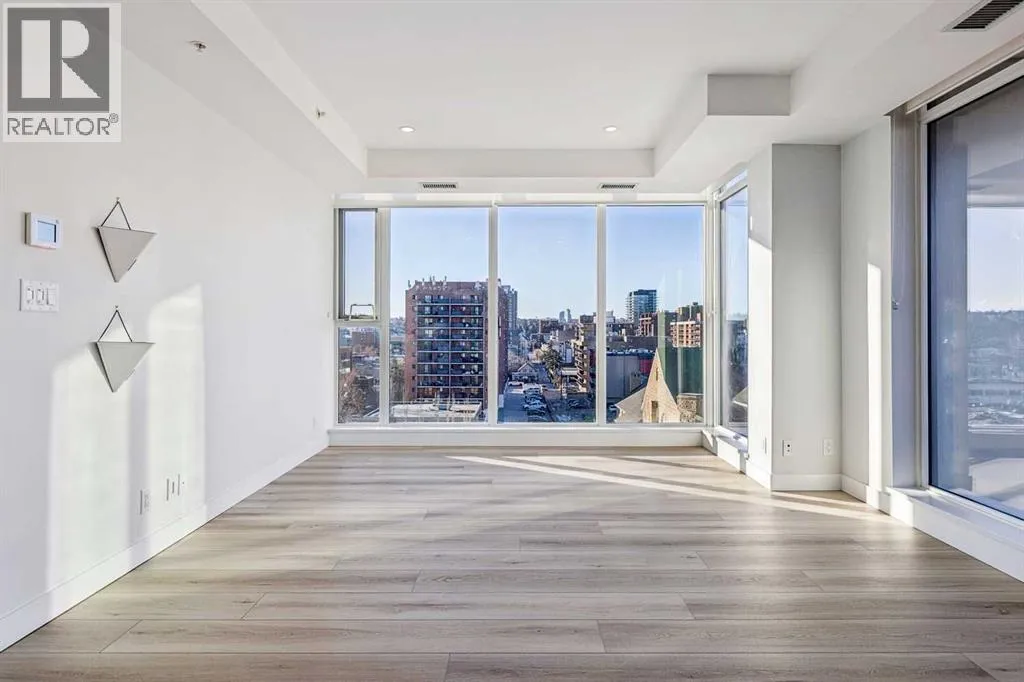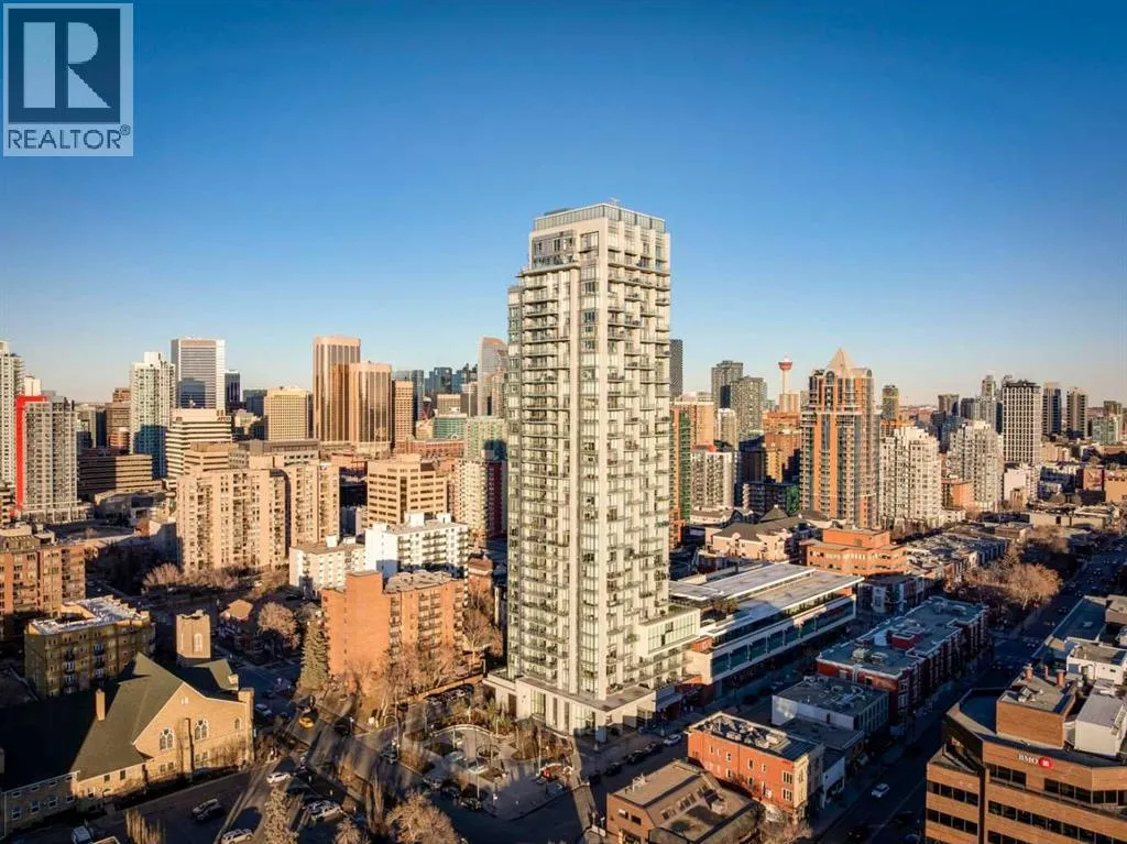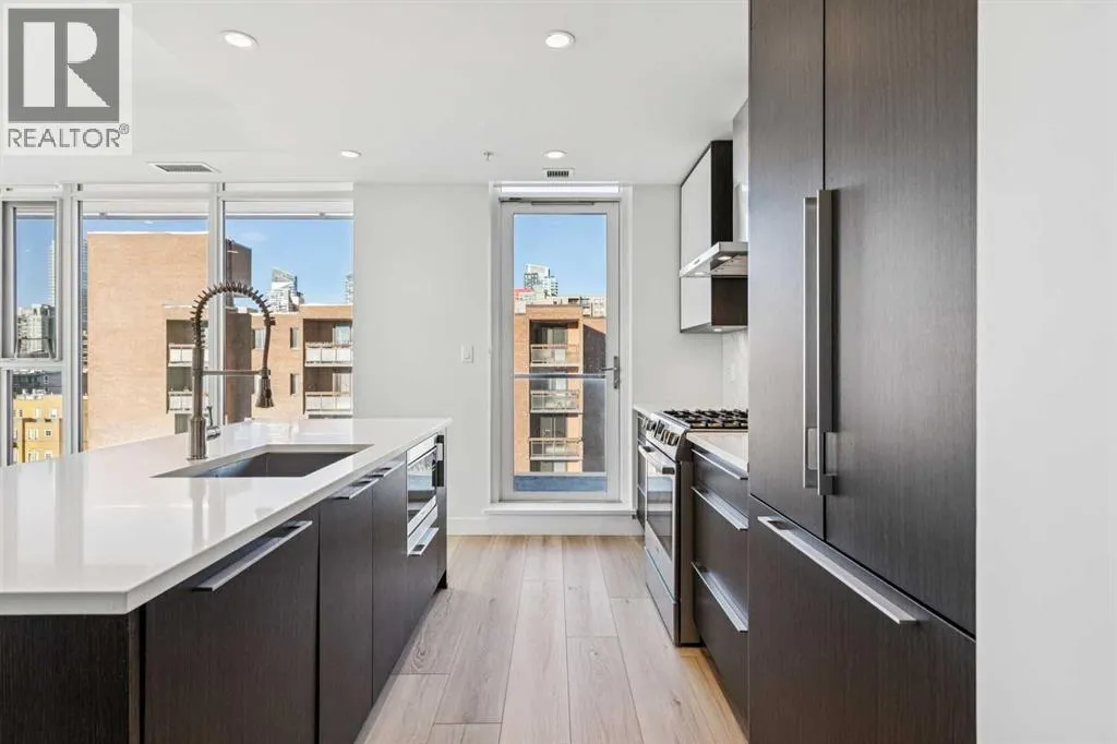 Flooded with natural light, this exceptional corner unit features two walls of floor-to-ceiling windows with beautiful views of the historic Grace Presbyterian Church. Recently updated with brand new flooring in the living areas and bedrooms, the home showcases 9â ceilings in the living room, high-end finishes throughout, and a sleek, contemporary feel. The chef-inspired kitchen offers a sophisticated blend of dark wood and white cabinetry, quartz countertops, gas range, marble backsplash, and a large central island with breakfast bar. Thoughtful details include a pantry, coffee station, and integrated fridge and dishwasher, making the space as functional as it is stylish. The primary bedroom is a serene retreat with a crisp white ensuite featuring dual vanities, ample storage, a spacious shower, and a walk-in closet with built-in organizers. A second bedroom and full bathroom provide flexibility for guests, a home office, or shared living. In-suite laundry adds everyday convenience. Located in The Royal, a highly desirable building, residents enjoy outstanding amenities including a concierge desk, fitness centre, squash courts, sauna and steam room, a rooftop patio and garden, and a party room with fireplace and pool table. One assigned underground parking stall and a storage locker are included with this unit. Pets welcome with board approval. Set in the heart of vibrant 17th Avenue, this is a true walkable lifestyle surrounded by award-winning restaurants, cafés, boutiques, groceries, and everyday conveniences, with easy access to the downtown core. Perfect for a young professional, stylish couple, or empty nester seeking an active, urban lifestyle in one of the areaâs most sought-after buildings. (id:27476)