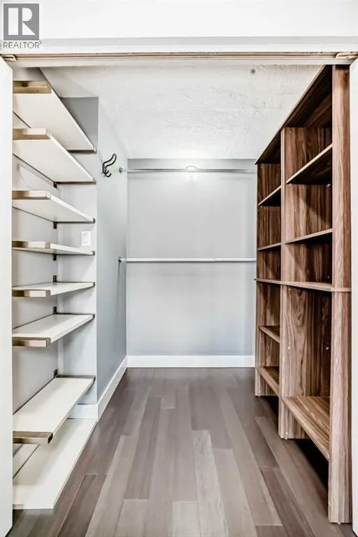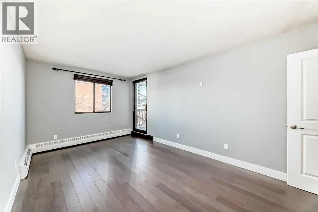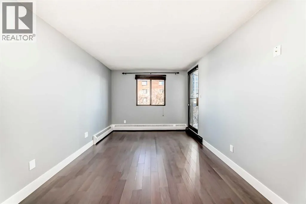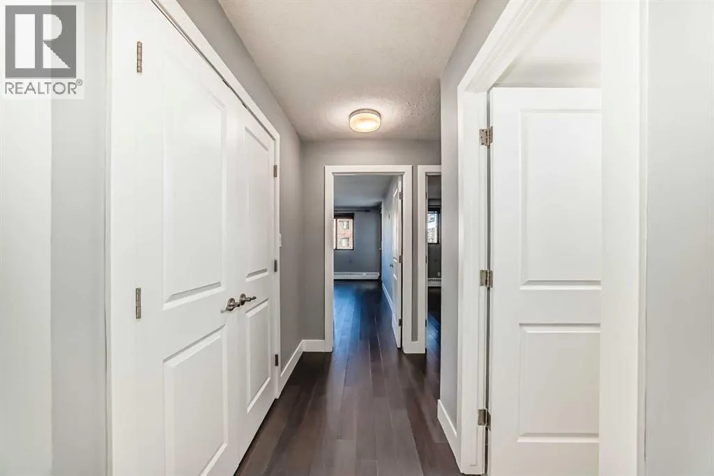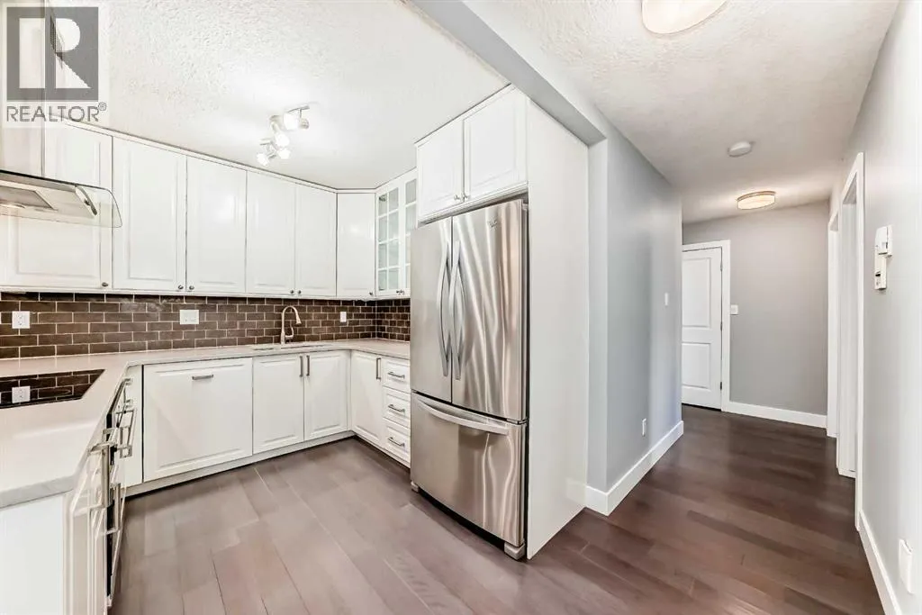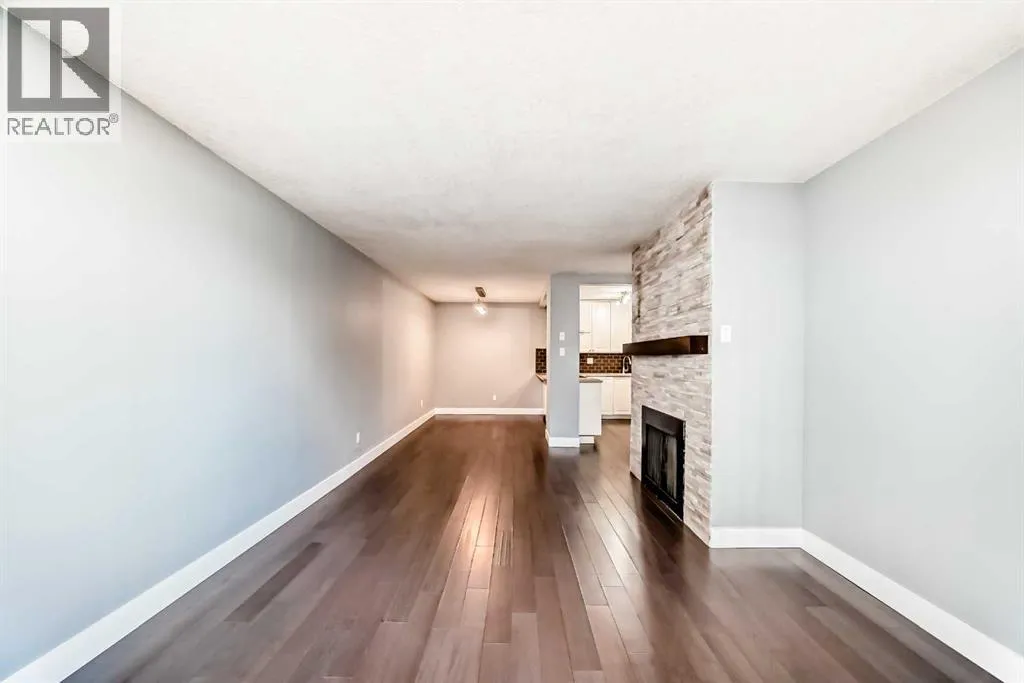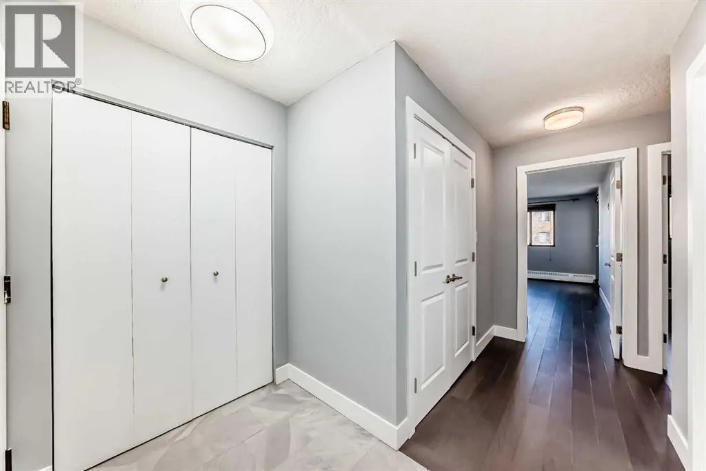 Experience inner-city living at its finest in this beautifully renovated condo offering breathtaking city views. Thoughtfully updated with the urban executive in mind, this residence showcases a sleek, modern design throughout. The kitchen is a standout, featuring quartz countertops, upgraded stainless steel appliances, a stylish upgraded faucet, and newer cabinetry that seamlessly flows into a spacious dining areaâperfect for hosting. The generously sized living room is warm and inviting, highlighted by hardwood flooring, a natural gas fireplace, and patio doors that open to the outdoors, creating an ideal space for both relaxing and entertaining. This home offers two large bedrooms, including a spacious primary retreat complete with a walk-in closet featuring custom built-ins and direct access to the impressive 22-foot oversized balcony. The fully renovated four-piece bathroom is finished with a contemporary vanity and modern touches. Additional conveniences include a large in-suite storage room with washer and dryer, knockdown ceilings, updated lighting, and fresh paint throughout. Residents also enjoy access to a spectacular rooftop patio with panoramic 360-degree city views. The parking stall is exceptionally well-located as an end space, offering ample clearance and accommodating oversized vehicles. Lovingly maintained and move-in ready, this exceptional condo is truly a rare find. Call today to book your private viewing of this inner-city gem. (id:27476)