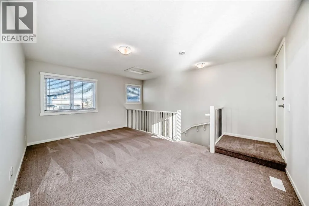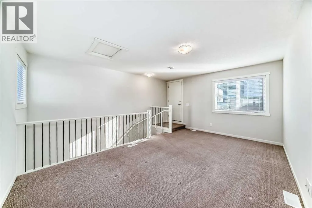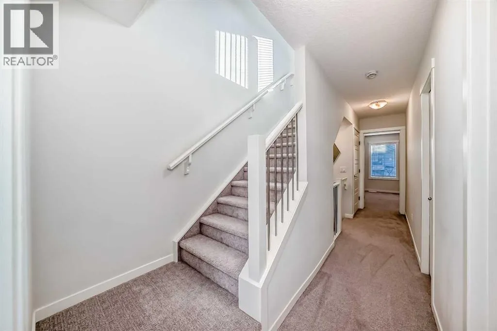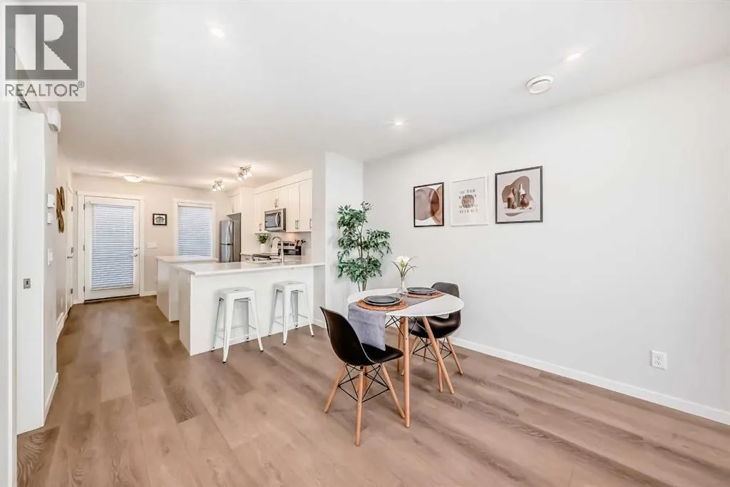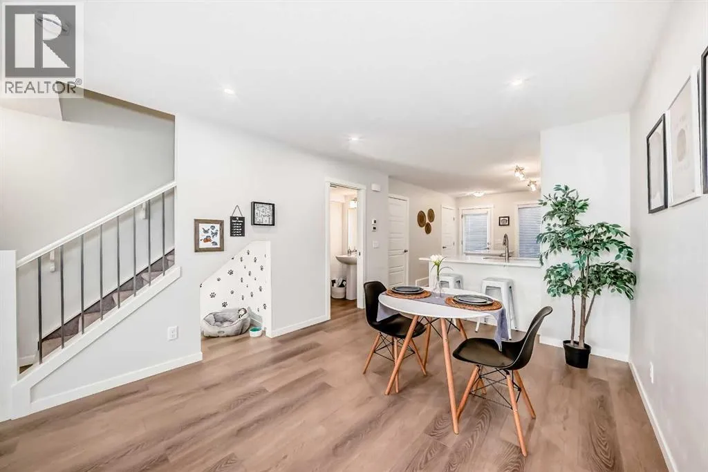 Meet your elevated escape! (Check out the VIDEO TOUR). This like-new, pet-friendly townhome offers chic, low-maintenance living with low condo fees and almost 1400 sq ft of thoughtfully designed space. The home features 2 spacious primary bedrooms, each with its own ensuite, plus a convenient main-floor powder room and a versatile bonus room - perfect for an additional bedroom, home office, kid's play area, etc. The bright, modern interior of this beautiful home showcases white cabinetry and white quartz countertops throughout plus stainless steel appliances, an upgraded kitchen backsplash, and a kitchen island that adds extra storage and workspace. A breakfast bar makes casual meals easy, while a dedicated dining room is perfect for entertaining. Upgraded window coverings and a smart mix of laminate and carpet flooring will make a stylish statement that you can be proud of. The upper-floor laundry adds everyday convenience while central air conditioning keeps things comfortable year-round. Relax and finish the day on your large, private rooftop patio with mountain view - ideal for enjoying summer evenings with family and watching sunsets with that special someone. Located in amenity rich Seton, your new home is walking distance to numerous restaurants, dental clinic, pharmacy, nail salon, gas station, gym, playground and the Seton Homeowner's Association. Immediate possession, Move-in ready, 'Like-New' condition, and packed with an array of lifestyle perks, this home truly lives large! (id:27476)