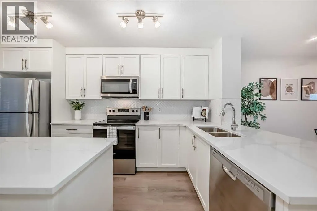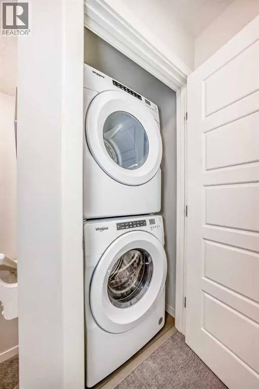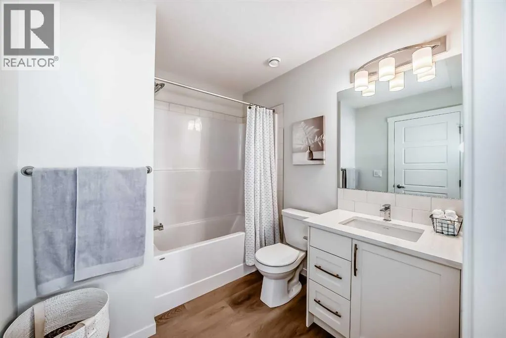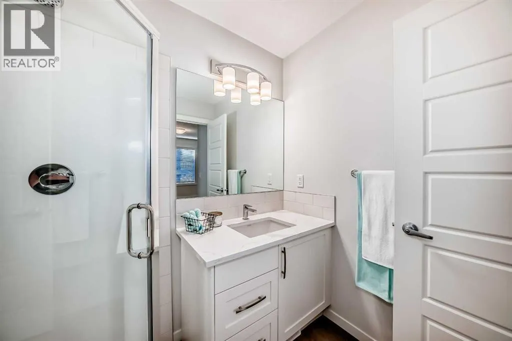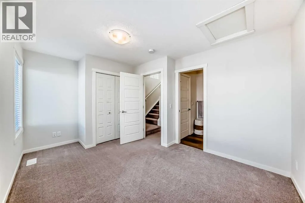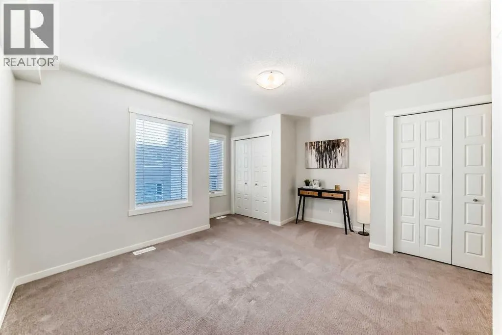 Meet your elevated escape! (Check out the VIDEO TOUR). This like-new, pet-friendly townhome offers chic, low-maintenance living with low condo fees and almost 1400 sq ft of thoughtfully designed space. The home features 2 spacious primary bedrooms, each with its own ensuite, plus a convenient main-floor powder room and a versatile bonus room - perfect for an additional bedroom, home office, kid's play area, etc. The bright, modern interior of this beautiful home showcases white cabinetry and white quartz countertops throughout plus stainless steel appliances, an upgraded kitchen backsplash, and a kitchen island that adds extra storage and workspace. A breakfast bar makes casual meals easy, while a dedicated dining room is perfect for entertaining. Upgraded window coverings and a smart mix of laminate and carpet flooring will make a stylish statement that you can be proud of. The upper-floor laundry adds everyday convenience while central air conditioning keeps things comfortable year-round. Relax and finish the day on your large, private rooftop patio with mountain view - ideal for enjoying summer evenings with family and watching sunsets with that special someone. Located in amenity rich Seton, your new home is walking distance to numerous restaurants, dental clinic, pharmacy, nail salon, gas station, gym, playground and the Seton Homeowner's Association. Immediate possession, Move-in ready, 'Like-New' condition, and packed with an array of lifestyle perks, this home truly lives large! (id:27476)