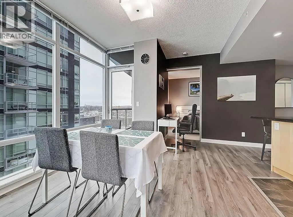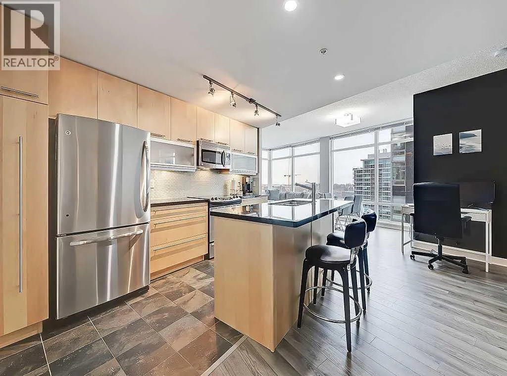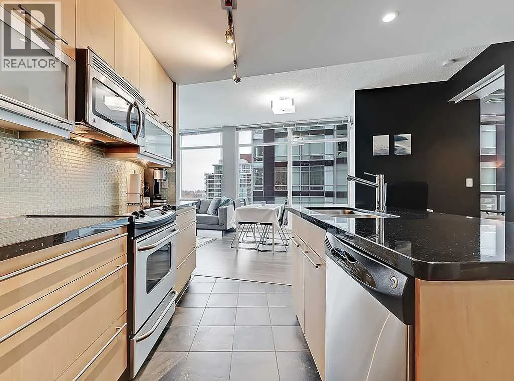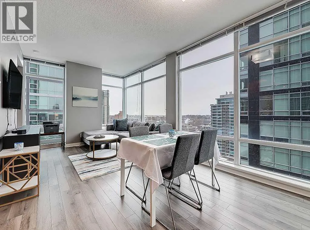 Welcome to Unit #1406 at Union Square â a stylish 2-bedroom, 2-bath SE-facing corner condo on the 14th floor with sweeping city, park, Stampede firework & mountain views from your own balcony. Perfect for downtown professionals, young families, or first-time buyers who want an active, walkable lifestyle with Calgaryâs best at their doorstep. Inside, the open-concept layout with FLOOR-TO-CEILING windows fills the space with natural light and showcases stunning city views that sparkle at night. The chef-inspired kitchen features STAINLESS-STEEL appliances, a granite island, modern cabinetry, and glass tile backsplash â ideal for cooking and entertaining. The living area flows seamlessly to your private balcony, the perfect spot to unwind or take in the views. The primary retreat offers a generous walk-in closet and private ensuite, while the second bedroom is perfect for family, guests, or a home office. Additional highlights include 9â ceilings, air conditioning, titled UNDERGROUND PARKING, extra STORAGE, and condo fees that cover gas, water, heat, insurance and more for hassle-free living. Step outside to a vibrant community with a large park, playground, and tennis courts right across the street, plus First Street Market, trendy restaurants, nightlife, and the Stampede Grounds just a few blocks away. Whether you walk to work downtown, hop on the C-Train, or enjoy Calgaryâs best dining and entertainment, Union Square puts you at the heart of it all. This move-in-ready condo combines modern design, unbeatable location, and an active lifestyle. Book your private showing today! (id:27476)