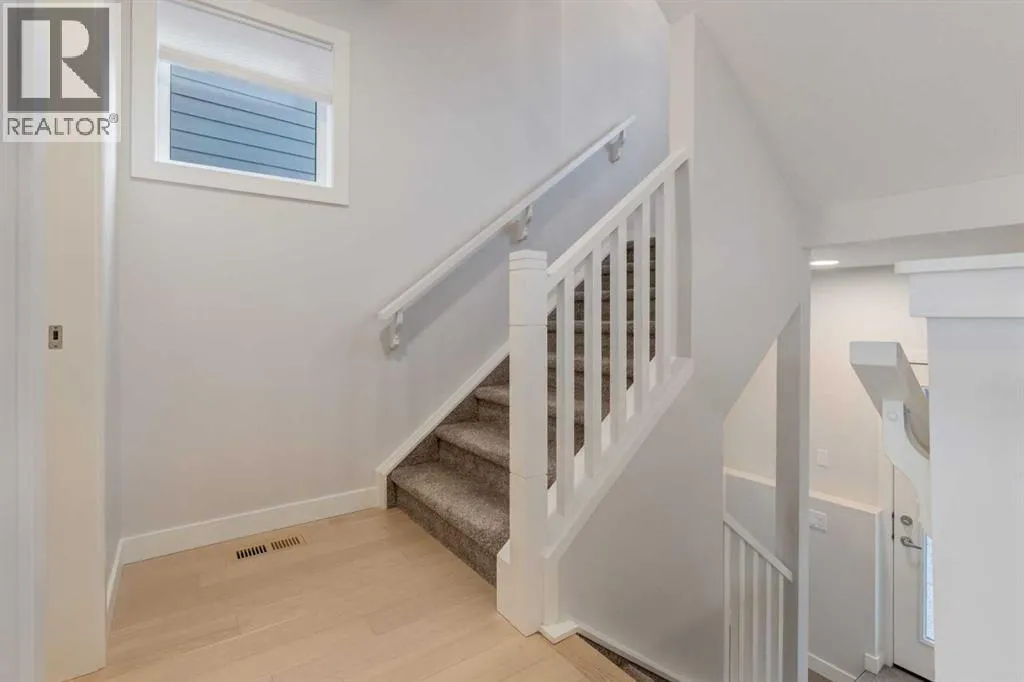 Welcome Home to your like-new double attached garage townhome offering modern design, exceptional functionality, and generous living space in the desirable community of Shawnee Park. The large, open floor plan creates a bright and welcoming atmosphere, perfect for both everyday living and entertaining. A chefâs kitchen anchors the main living area with ample counter space and a seamless flow into the dining and living rooms. The main floor also includes a flexible office space, ideal for working from home or adapting to your lifestyle needs. The entry level features a large utility and storage room that offers incredible versatility and could easily be converted into a home gym, home office, or hobby space. With loads of storage throughout the home, everything has its place. The original builderâs plan shows approximately 1,880 square feet of living space, providing plenty of room to live comfortably. Upstairs, the spacious primary suite is a true retreat, complete with a walk-in closet and a well-appointed ensuite featuring dual vanities. Two additional good-sized bedrooms and a four-piece bathroom provide space for family or guests, while an oversized upper-floor laundry room adds everyday convenience. Set within Shawnee Park, a neighbourhood known for its abundance of greenspace, parks, walking paths, and even a new pickleball court, this home offers a perfect balance of stylish living and an active, outdoor lifestyle. ** all of Shawnee Park is registered as Bareland Condominiums. The low condo fee covers all snow removal and common area landscaping ** (id:27476)