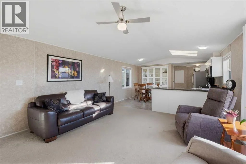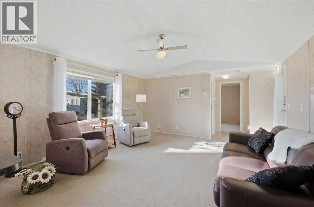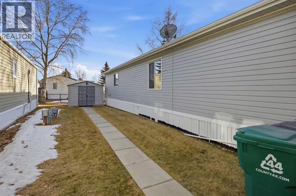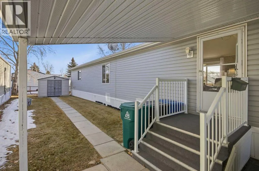 Welcome to this beautifully maintained, move-in-ready 3-bedroom, 2-bathroom home with a covered carport and thoughtfully designed addition. Inside, youâll appreciate the bright, open floor plan centered around a spacious kitchen featuring lots of counter space, dine-in area and an abundance of warm wood cabinetry. The inviting and open layout flows seamlessly into a cozy living roomâideal for both entertaining and everyday comfort.The expansive primary suite includes a walk-in closet and a large ensuite with a walk-in shower. Located on the opposite side of the home, the second bedroom and main bathroom offer privacy and flexible space for guests or hobbies. The addition provides a versatile bonus room/3rd bedroom, with a fireplace and direct access to a patio with a sliding glass door. The well-built storage shed completes the property.The monthly lot fee includes water, sewer, recycling, garbage pickup, and full access to all clubhouse amenities. Ideally located just steps from Crowfoot Crossing, youâll enjoy convenient access to shopping, medical services, restaurants, banks, and a movie theatre, with the Crowfoot LRT station nearby for easy commuting.This is a welcoming and active 45+ community. Pets are allowed with board approval and height restrictions. Residency requires an approved application. Book your private showing today and experience the comfort and convenience this home has to offer. (id:27476)
