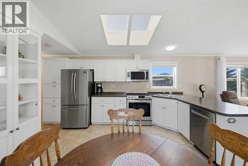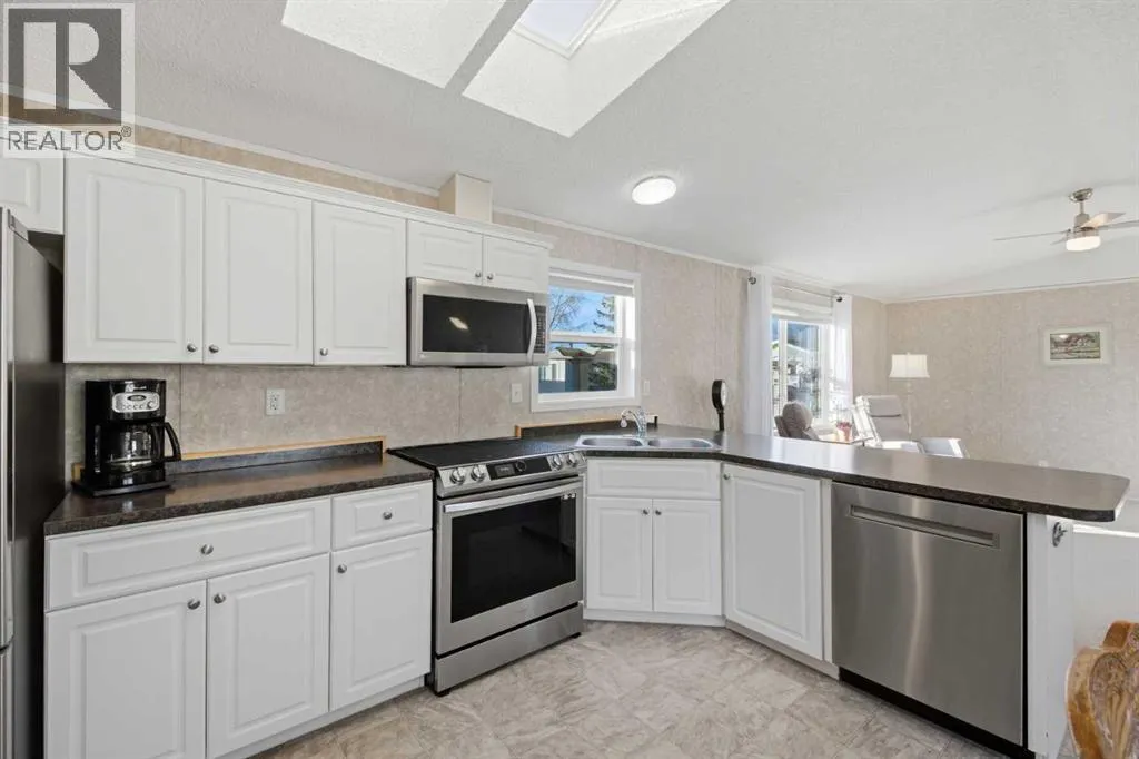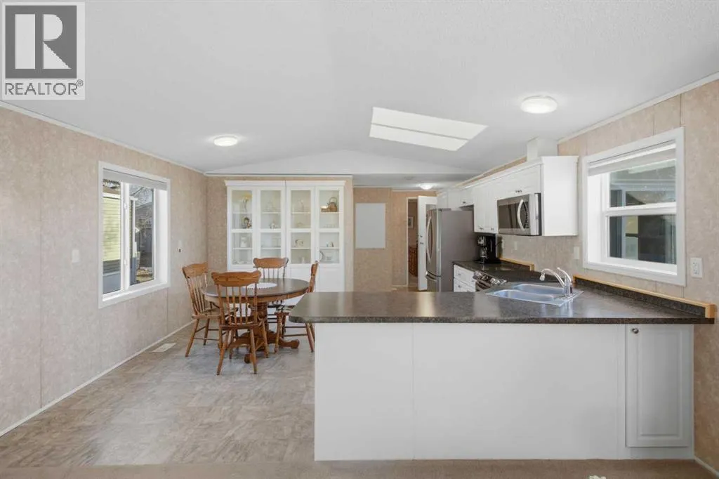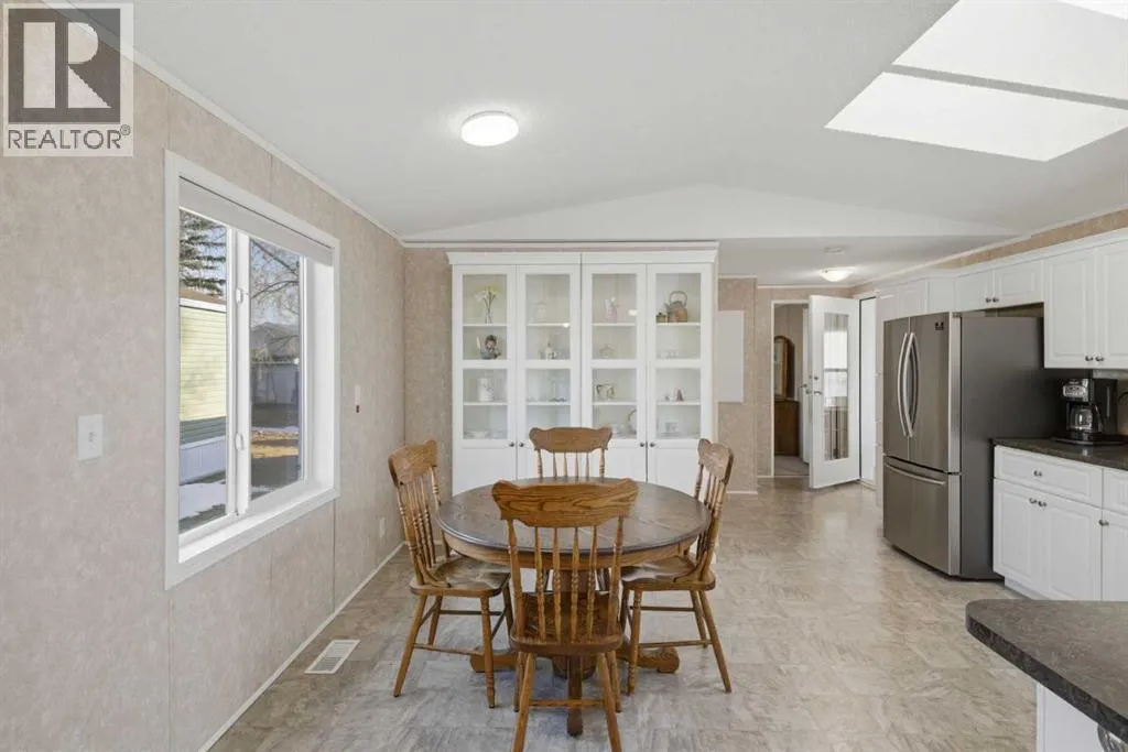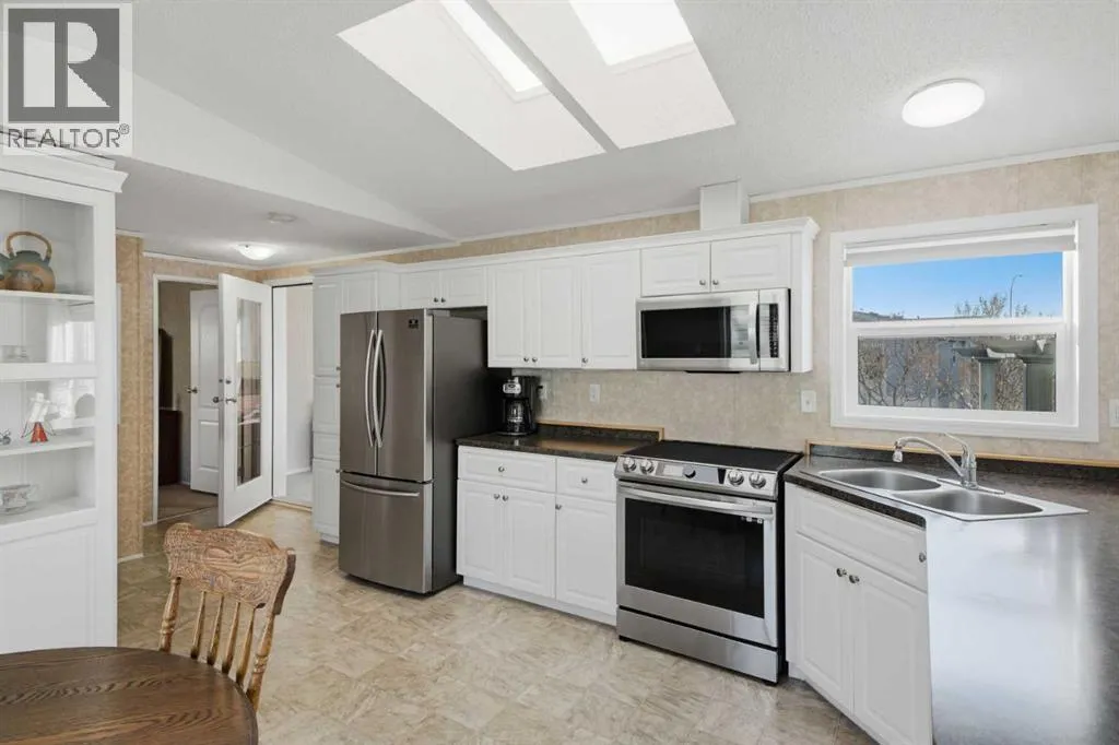Welcome to this beautifully maintained, move-in-ready 3-bedroom, 2-bathroom home with a covered carport and thoughtfully designed addition. Inside, youâll appreciate the bright, open floor plan centered around a spacious kitchen featuring lots of counter space, dine-in area and an abundance of warm wood cabinetry. The inviting and open layout flows seamlessly into a cozy living roomâideal for both entertaining and everyday comfort.The expansive primary suite includes a walk-in closet and a large ensuite with a walk-in shower. Located on the opposite side of the home, the second bedroom and main bathroom offer privacy and flexible space for guests or hobbies. The addition provides a versatile bonus room/3rd bedroom, with a fireplace and direct access to a patio with a sliding glass door. The well-built storage shed completes the property.The monthly lot fee includes water, sewer, recycling, garbage pickup, and full access to all clubhouse amenities. Ideally located just steps from Crowfoot Crossing, youâll enjoy convenient access to shopping, medical services, restaurants, banks, and a movie theatre, with the Crowfoot LRT station nearby for easy commuting.This is a welcoming and active 45+ community. Pets are allowed with board approval and height restrictions. Residency requires an approved application. Book your private showing today and experience the comfort and convenience this home has to offer. (id:27476)
