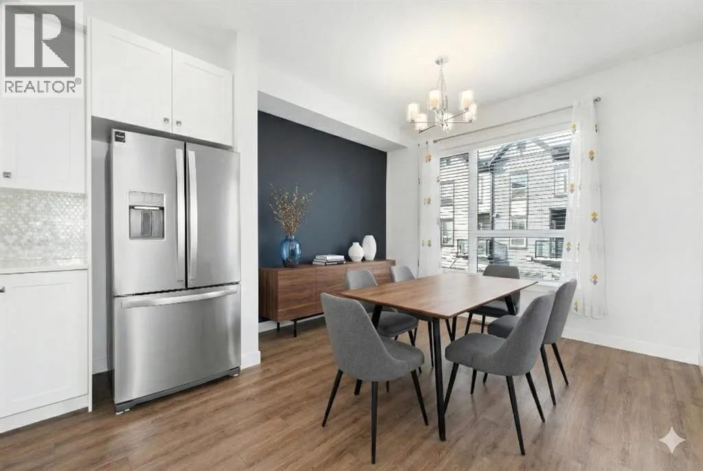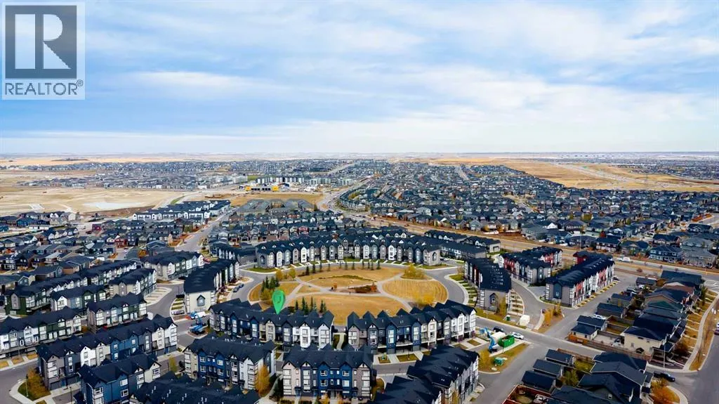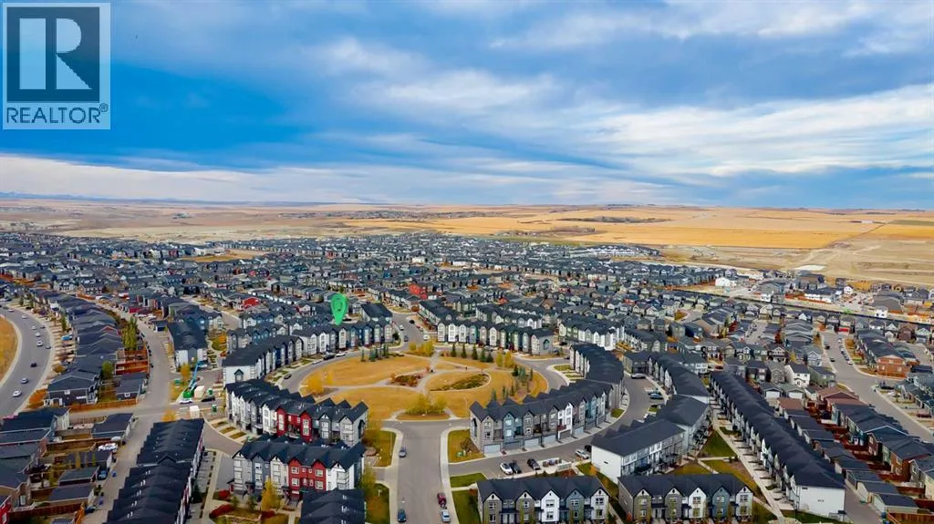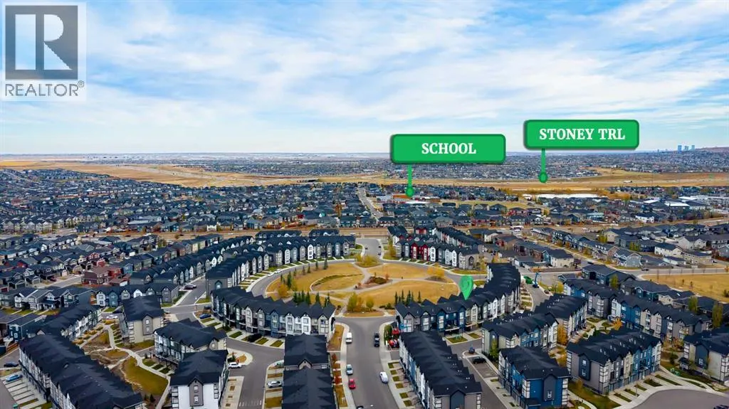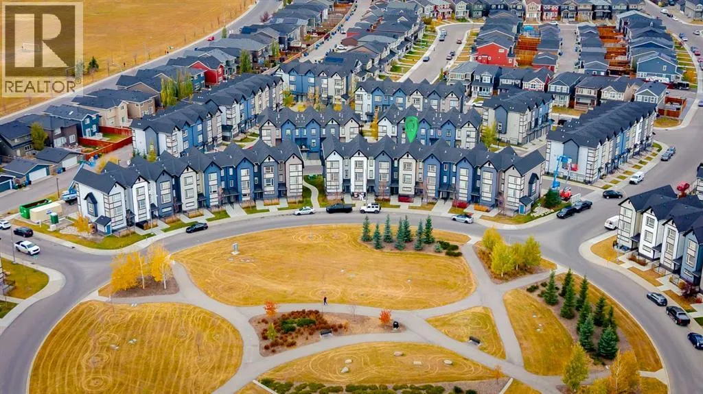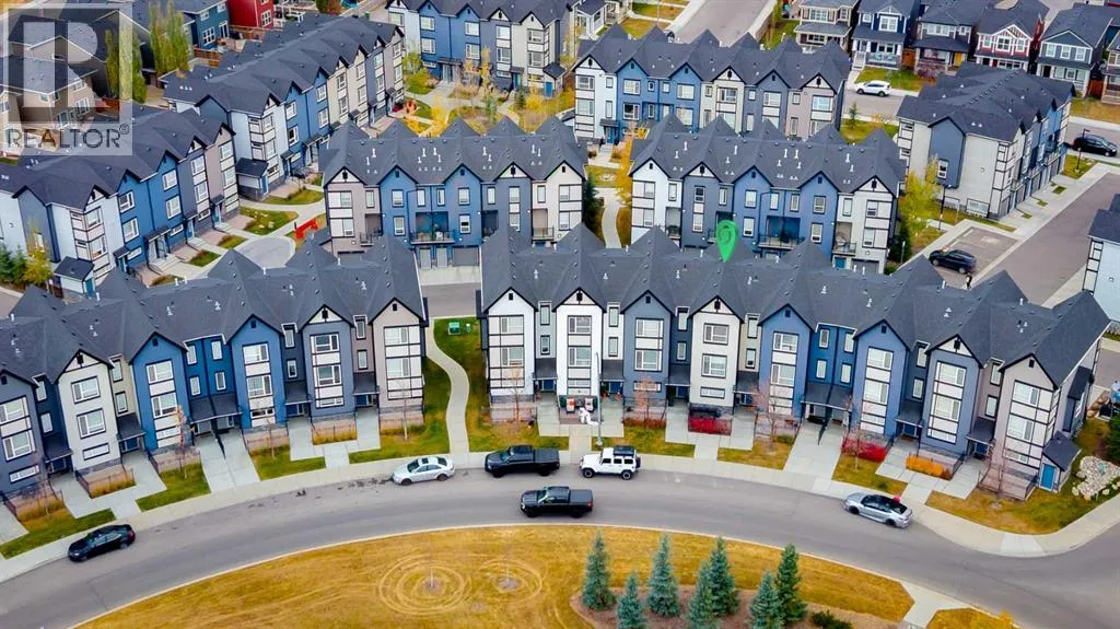 Welcome to this beautifully designed 3 bedroom, 2.5 bathroom townhouse, ideally located in the sought-after community of Evanston in NW Calgary. Perfectly positioned facing a picturesque circular park, this home offers a blend of thoughtful layout, modern finishes, and everyday convenience. The entry level welcomes you with a spacious foyer featuring direct access to the finished double tandem garage, finished with durable epoxy flooring and including dedicated utility and storage areas, providing both function and organization. From here, step outside to enjoy a private ground-level patio, ideal for relaxing, gardening, or entertaining. Additional parking available on the single driveway, ample visitor parking as well as convenient street parking in front of the home. Upstairs, the main living level showcases an open-concept design that seamlessly connects the living room, dining area, and kitchen. The centrally located kitchen is the heart of the home, anchored by a large quartz island and complemented by abundant cabinetry, multiple pantry spaces, and stainless steel appliances. On one side of the kitchen, the bright and inviting living room features large windows that flood the space with natural light and provide access to a balcony, perfect for morning coffee or evening downtime. On the opposite side, the dining area offers plenty of room for hosting family dinners or gatherings with friends. A convenient 2-piece powder room completes this level. The upper floor is thoughtfully arranged to maximize privacy and comfort. The primary suite is situated at one end and features a walk-in closet and a private 3-piece ensuite. On the other end, two additional well-sized bedrooms - one with a walk-in closetâshare a full 4-piece bathroom. A convenient upstairs laundry area adds to the practicality of the layout, making daily routines effortless. Additional features include air conditioning for year-round comfort and a location that truly sets this home apart. Enjoy walk ing-distance access to Evanstonâs shopping, schools, and nearby soccer fields, along with quick and easy connections to Stoney Trail for commuting around the city. This move-in-ready townhouse offers a rare combination of park-facing views, modern finishes, and an unbeatable location - an excellent opportunity to call Evanston home. (id:27476)