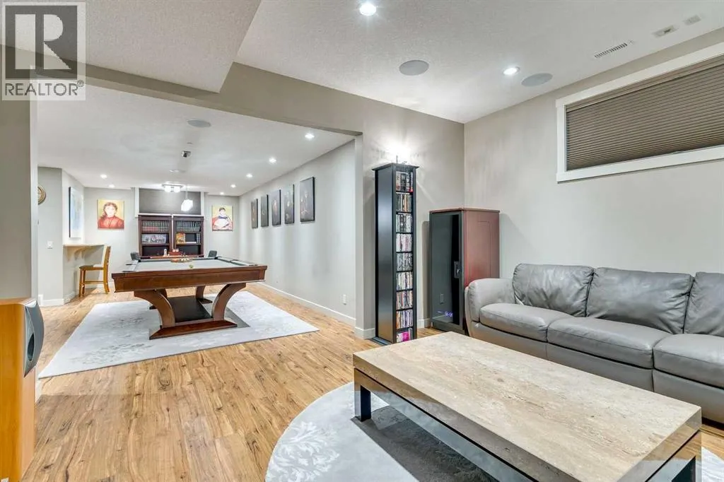 Discreetly positioned at the end of a quiet cul-de-sac in the prestigious enclave of Pump Hill, this remarkable inner-city estate presents an exceptional offering defined by scale, privacy & architectural refinement. Known for its estate sized lots, mature tree canopy & enduring prestige, Pump Hill remains one of Calgaryâs most distinguished residential communities. Set behind elegant wrought-iron gates, the residence unfolds across an expansive 19,580 sq. ft. lot, surrounded by manicured gardens, mature trees & tiered limestone landscaping - creating a serene, resort-like setting rarely found within the inner city. Spanning nearly 5,000 sq. ft of impeccably designed living space, the home is curated for refined daily living & sophisticated entertaining. A Cambridge elevator discreetly connects all levels, while 6 bedrooms, 6 bathrooms, 2 spacious dens & multiple living areas provide exceptional comfort & flexibility. At the heart of the home, the grand living room commands attention with 11-foot ceilings, a striking limestone fireplace & expansive windows that bathe the space in natural light while framing tranquil views of the private grounds. The chefâs kitchen is both elegant & highly functional, featuring a substantial statement island, premium finishes & generous workspace designed to accommodate everything from family meals to large-scale entertaining. Flowing seamlessly from the kitchen, the formal dining area is ideally proportioned to host gatherings with ease, offering a refined setting for dinner parties. The main level is further enhanced by a powder room & laundry area. One wing of the home offers a private family retreat, complete with a generous lounge, 4 well-appointed bedrooms, and 3 beautiful full bathrooms. The opposite wing is devoted to the primary suite, a serene sanctuary featuring walls of windows, a spa-inspired ensuite & a spacious walk-in closet. A nearby den provides the ideal setting for a private office, library, or additional bedroom. A grand staircase descends to the lower level, where custom double wood doors open into an elegant foyer. This level continues the homeâs elevated lifestyle with a spacious home office, a 6 bedroom with full bath & an expansive recreation & entertainment area. The games room offers generous proportions for billiards, while the adjacent media room creates a refined cinematic experience. A large mudroom provides direct access to the heated 4-car garage, equipped with 3 EV charging stations. The estate is further enhanced by an advanced security system, full-property generator, fire suppression system & thoughtfully integrated accessibility features. Outdoors, the secluded backyard backs onto green space & is beautifully landscaped with architectural stonework, an expansive patio for alfresco entertaining & a charming summer house. An estate of this caliber, privacy & distinction is rarely available in Pump Hill - offering timeless luxury in one of Calgaryâs most established & prestigious neighbourhoods. (id:27476)
