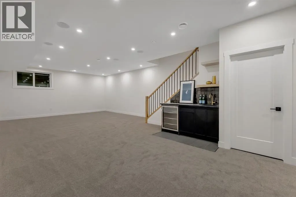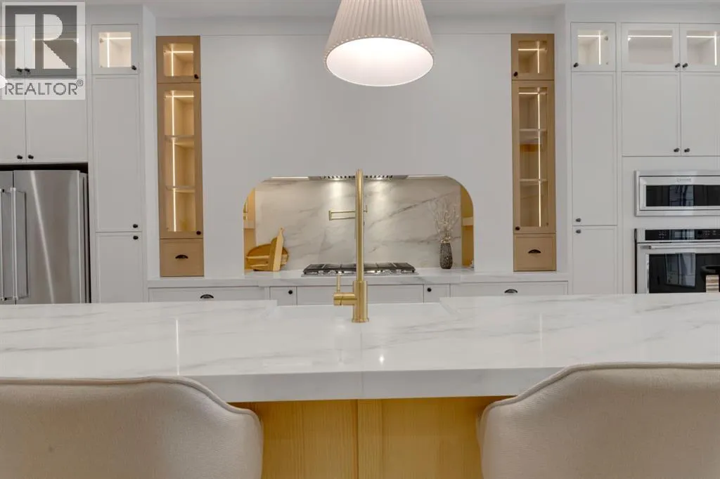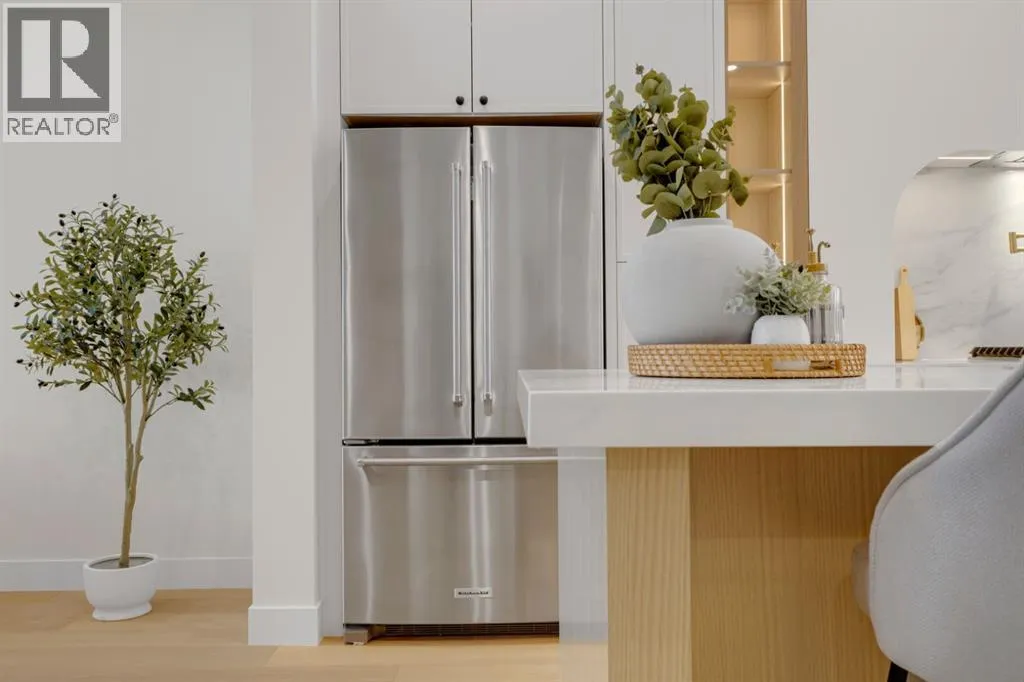 One Unit Remaining! Elegant French Chateau-Style Duplex in Richmond | Over 3,100 Sq Ft | Oversized Garage. Step into timeless sophistication with this beautifully crafted French chateau-inspired duplex, ideally located in the prestigious community of Richmond. Boasting over 3,100 sq ft of luxurious living space, this residence seamlessly blends classic charm with modern comfort. Engineered wood flooring flows throughout the main and upper levels, setting the tone for the refined finishes found throughout the home. Upstairs, you'll find three generously sized bedrooms, each complete with walk-in closets and private ensuites.. The stunning 5-piece primary ensuite is a true retreat, offering heated floors, a steam shower, a free-standing tub, a double vanity with a custom tower, and recessed lighting to create a spa-like atmosphere. The main floor is thoughtfully designed for both work and relaxation, featuring a convenient pocket office, a chef-inspired kitchen with a massive 15-foot island and high-end Kitchen Aid appliances, and an inviting living room centered around a cozy gas fireplace. A stylish mudroom with built-in cabinetry leads to the powder room and out to your private backyard through large patio doors. The fully finished basement offers a wet bar, bedroom with a 3 pc bathroom along with a huge rec area. Situated on a rare 135-foot deep lot, the backyard is generously sizedâperfect for outdoor entertainingâand complemented by a double oversized garage for added convenience. This is a one-of-a-kind home that perfectly balances elegance, comfort, and versatility in one of Calgaryâs most sought-after neighbourhoods. (id:27476)